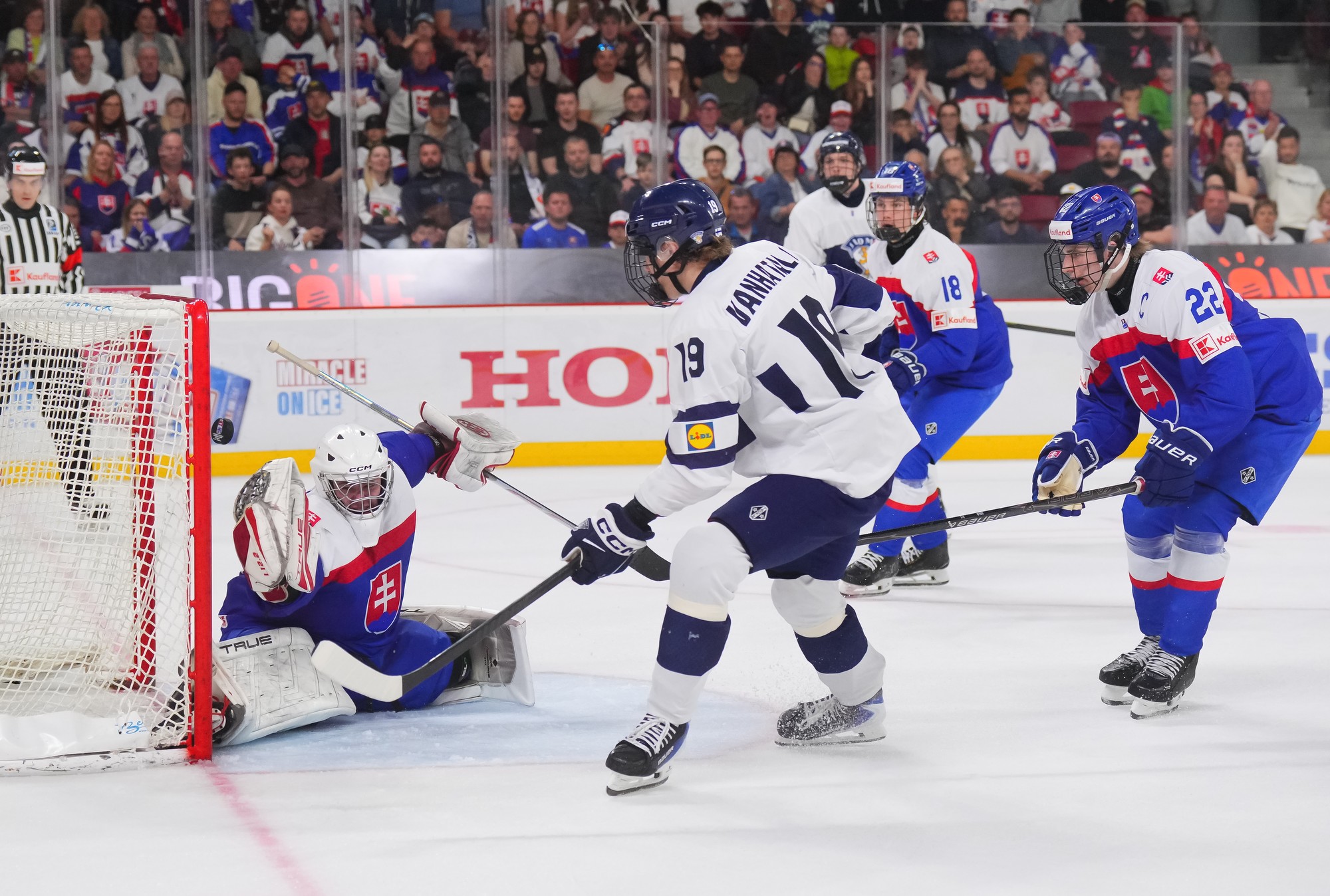 Gradually, though, the cheers for Slovakia clearances grew louder than the roar that greeted incursions into Finnish territory. That told the tale of a game that was tilting Finland’s way, and with five to play defender Samu Alalauri flipped a point shot through traffic to send the game to overtime. And once into the extras, he team was able to finish the job and climb to the top of the Group A standings ahead of a Monday meeting with Canada.