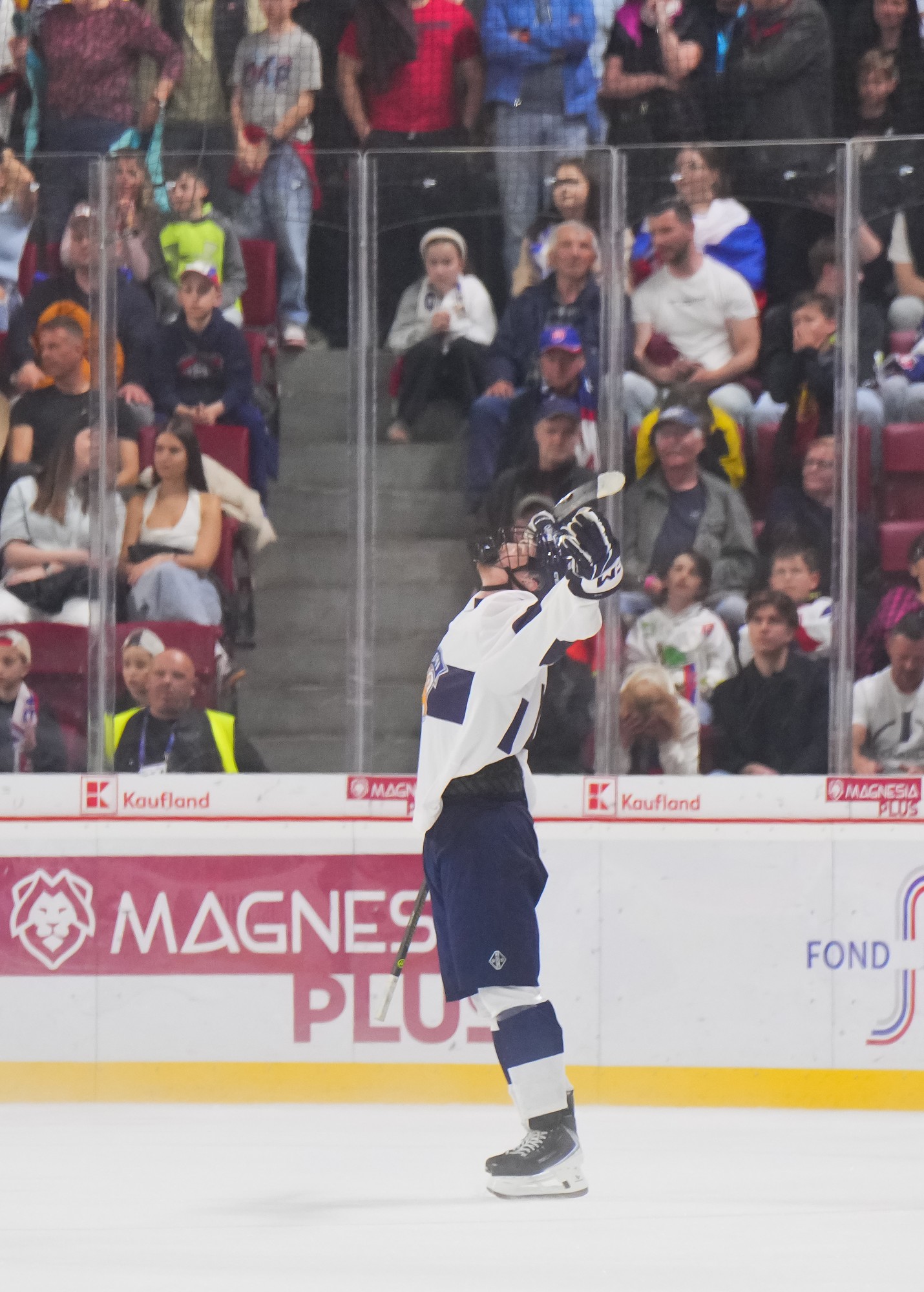 But after 1:50 of the extras – the first overtime we’ve seen in Trencin in this tournament – Suvanto jumped off the bench in a well-timed line change. He skated onto Luca Santala’s feed after the forward had circled behind the Slovak net, and advanced to beat Denis Celko and win the game.