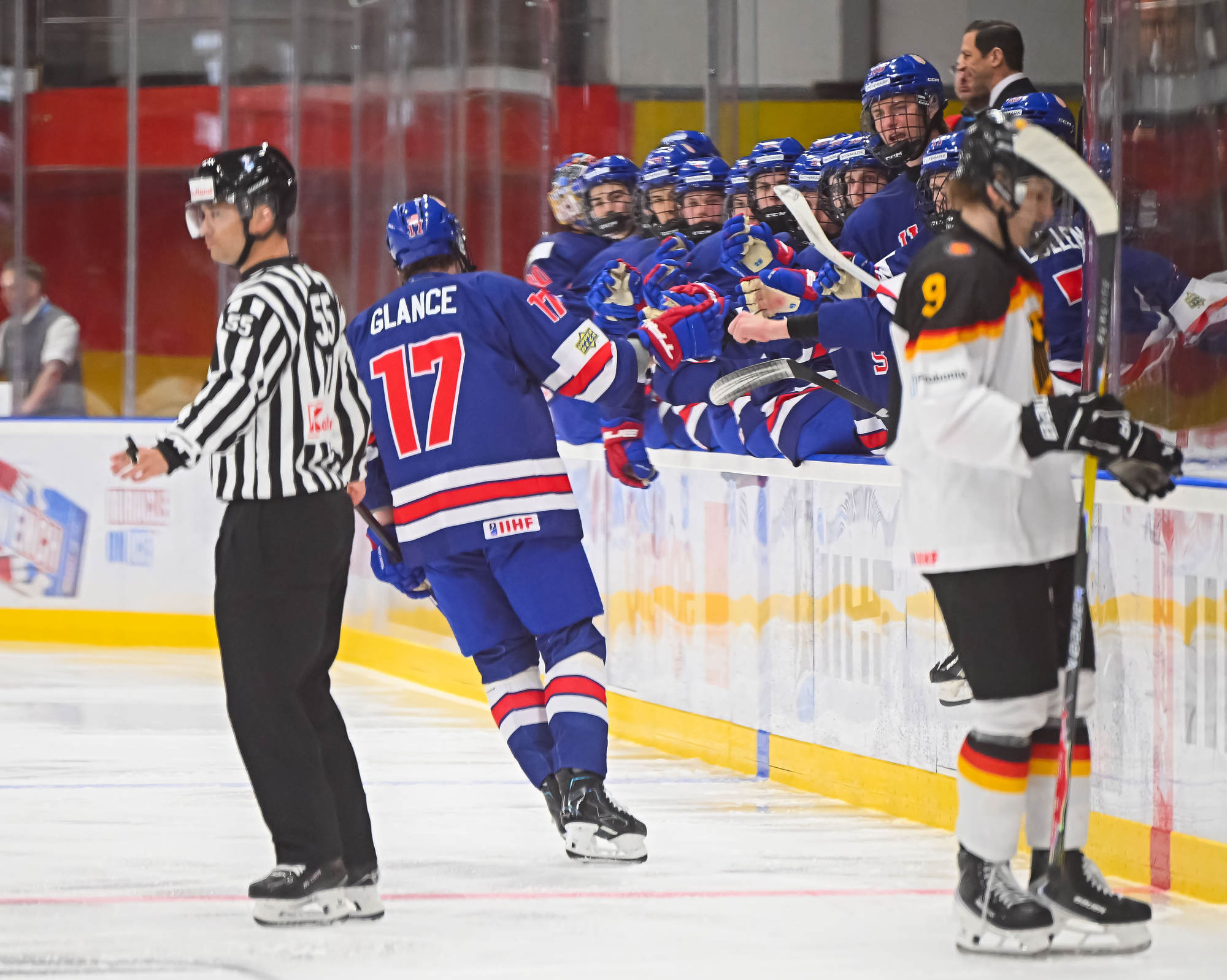 Jamie Glance had a goal and three assists for the Americans, with Wyatt Cullen, Mikey Berchild and Lukas Zajic recording three points each. The USA outshot Germany 53-26 in the game, with Luke Carrithers making 24 stops.