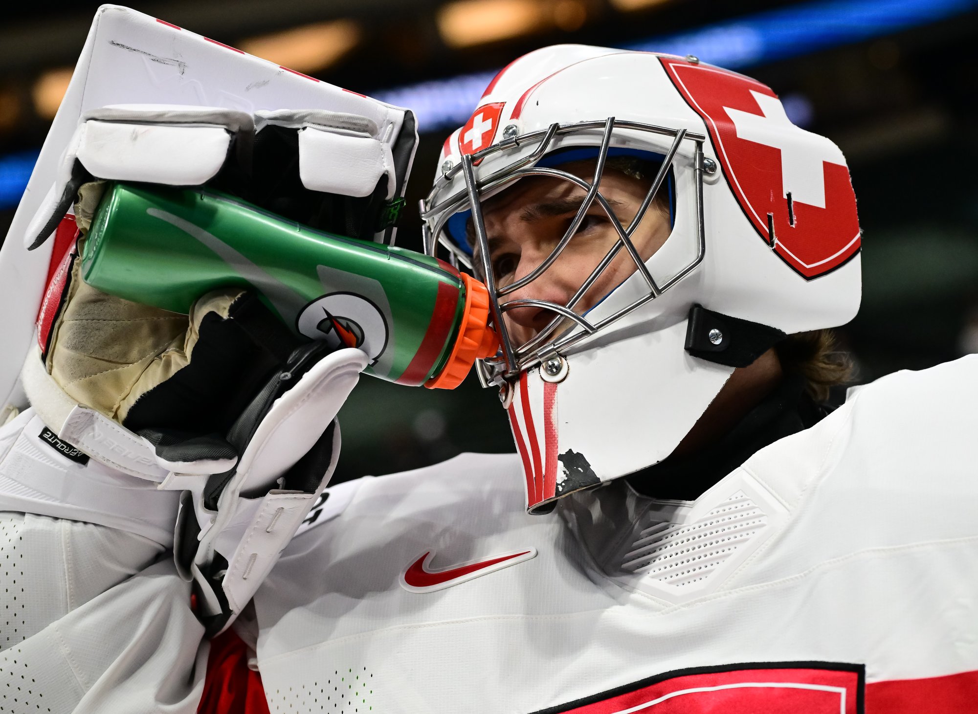 Indeed, the only goal of the period was a late strike from the Swiss. Lars Steiner’s screened shot went in and out of the net so quickly referees initially called no goal on the play. But at the next whistle they reviewed the shot, and within seconds realized the puck went in at 18:22