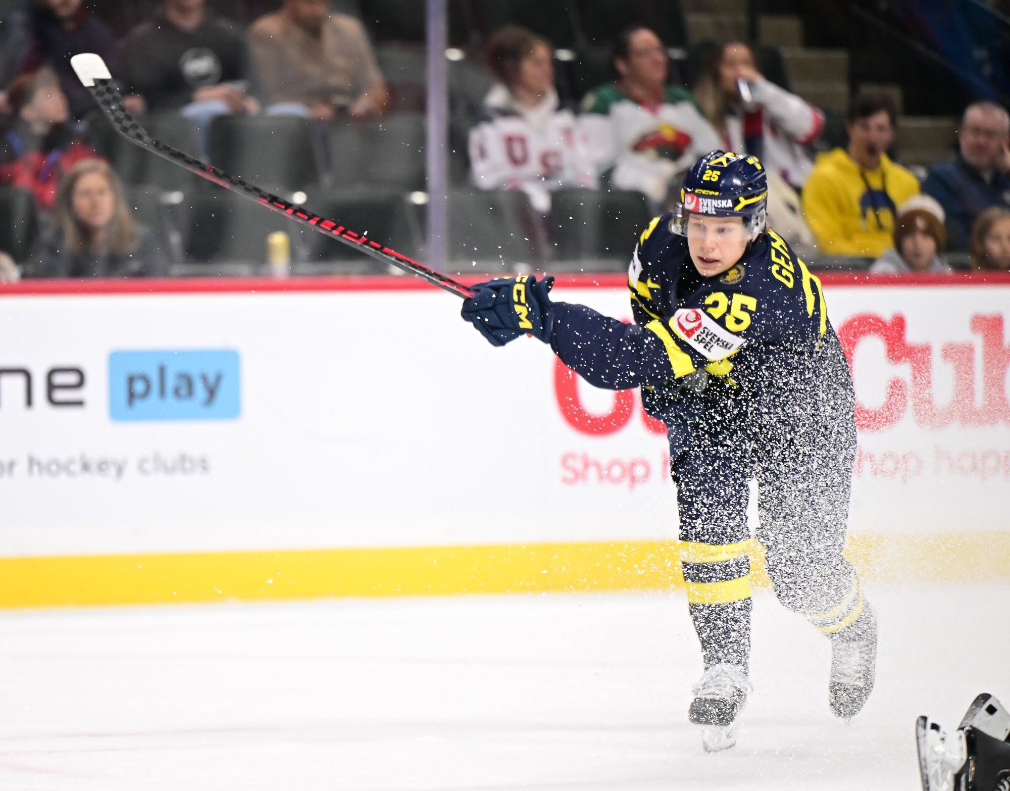Sweden started the third on a power play and didn't waste any time tying the score. Viggo Bjorck's snap shot from the high slot at 57 seconds wasn't a power-play goal exactly, but Jonah Neuenschwander's penalty expired only one second previous, and he wasn't back in the play by the time Bjorck took his shot.