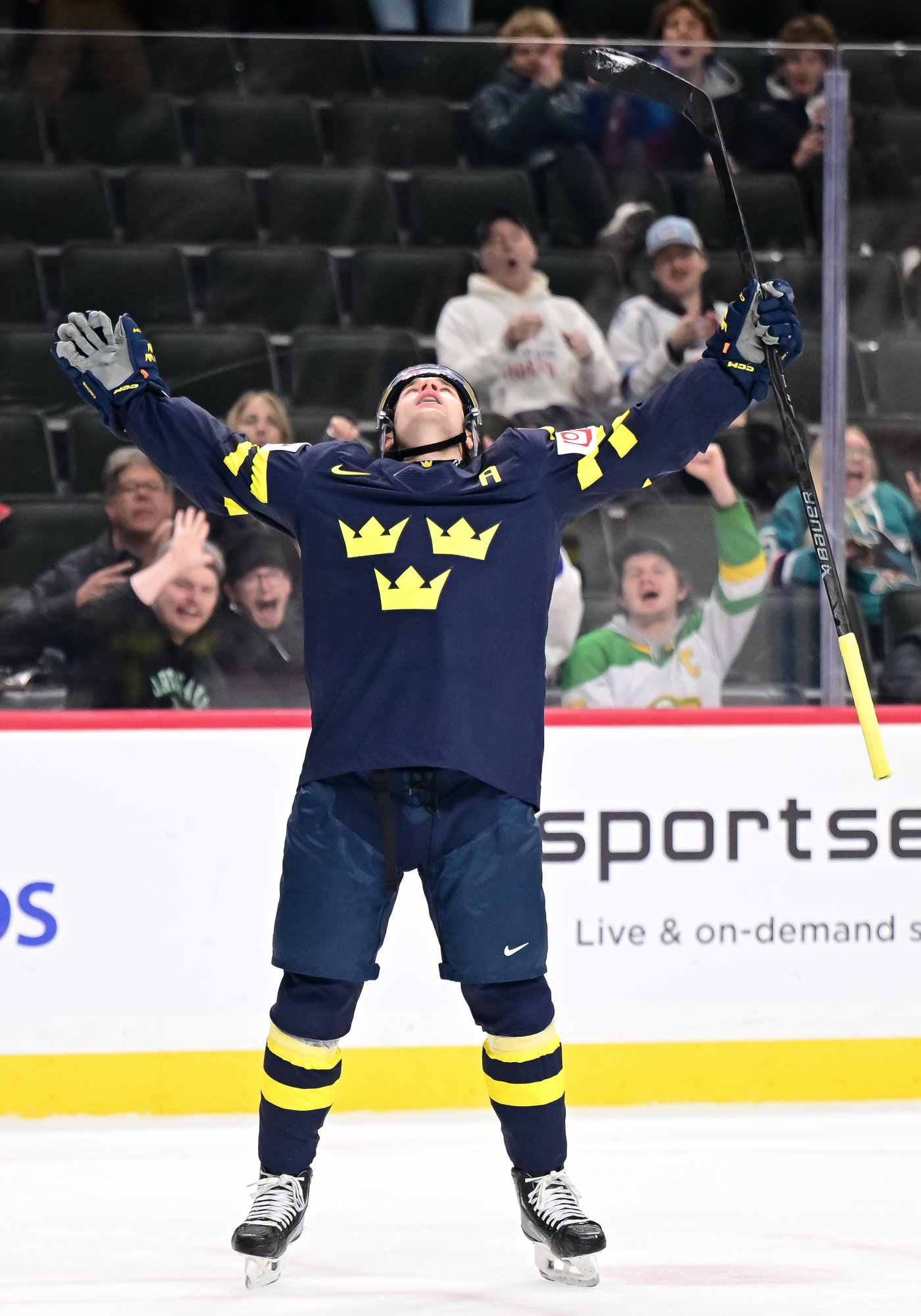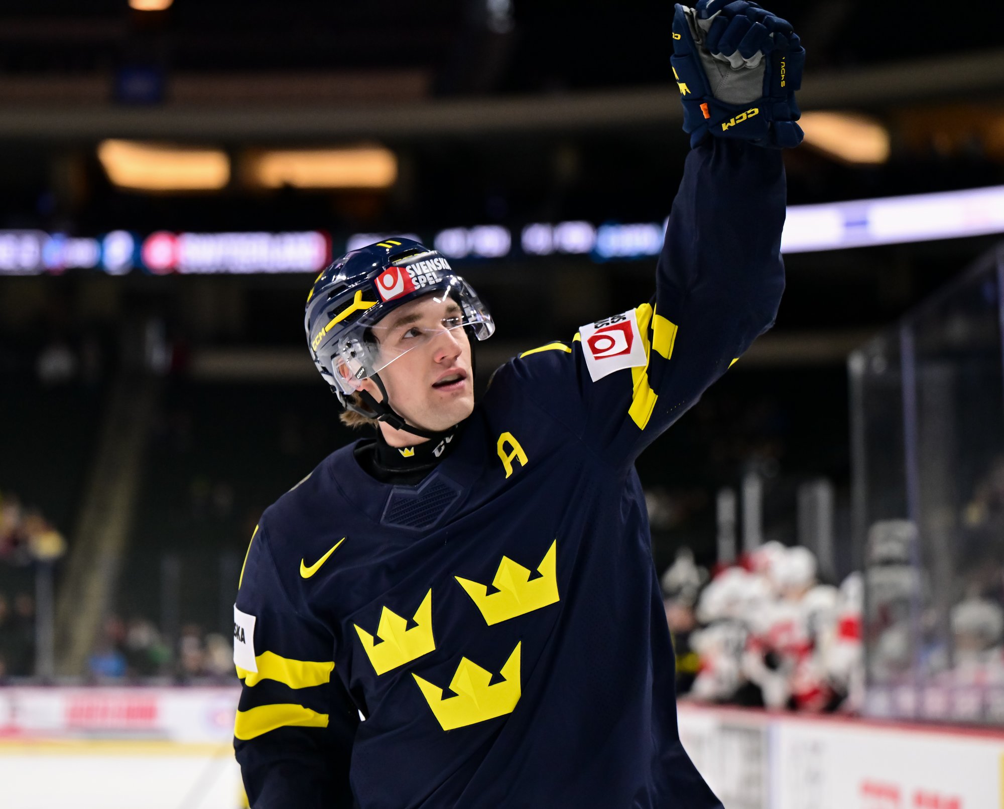 Carrying the puck over the Swiss blue line, defender Leo Sahlin Wallenius criss-crossed with Eric Nilson and then wafted a pass to him in front. Nilson made a quick move and slid the puck in at 53 seconds for the 1-0 Sweden lead.