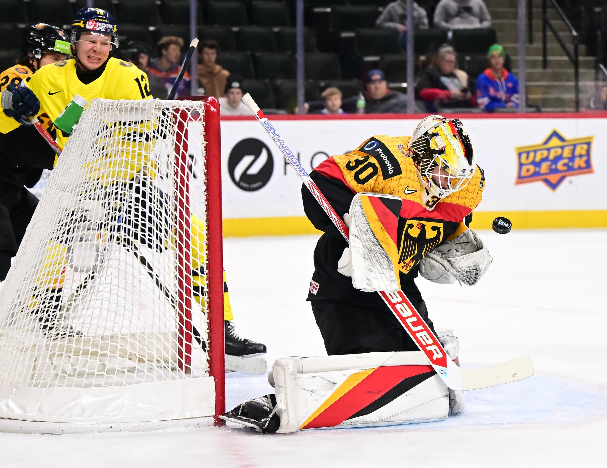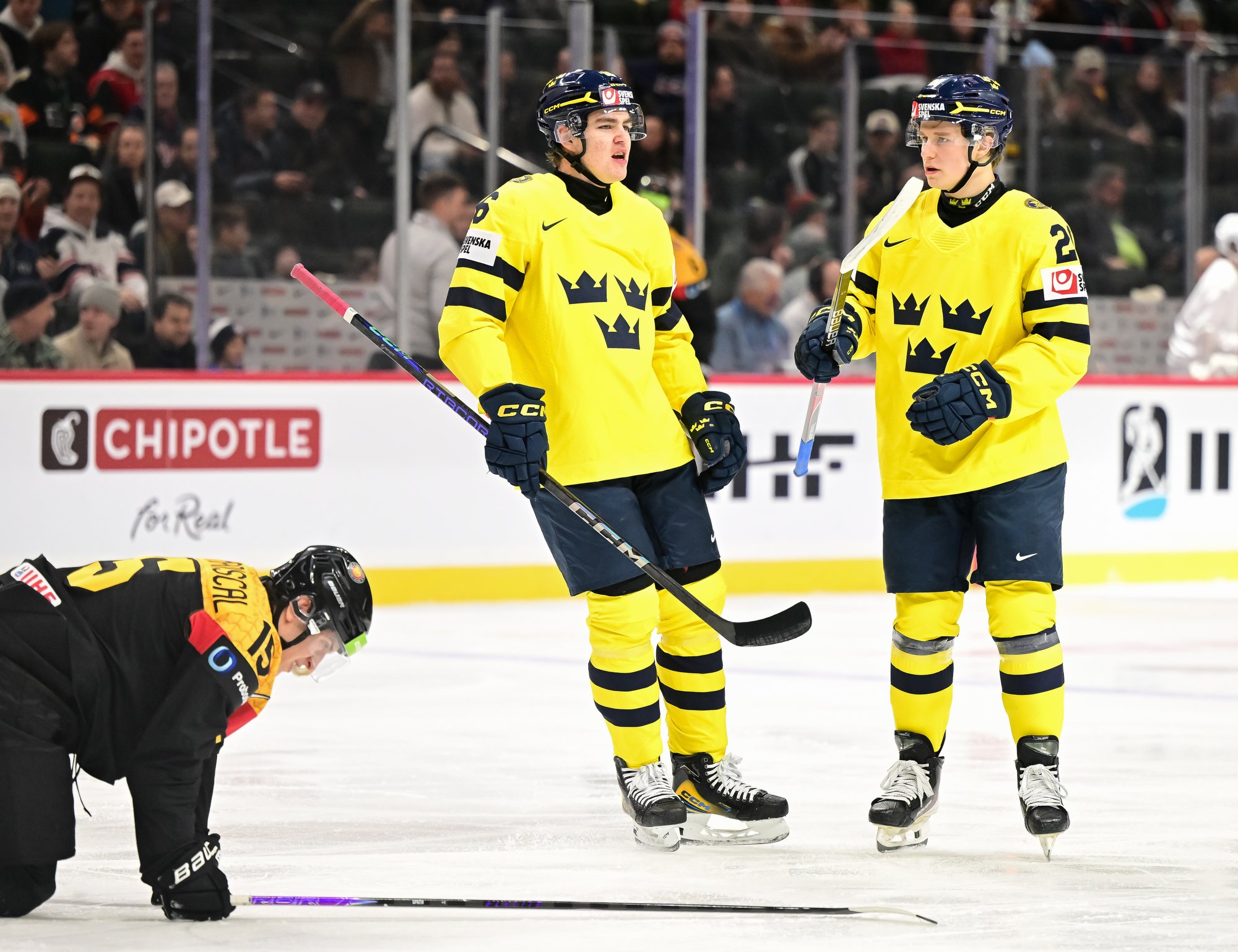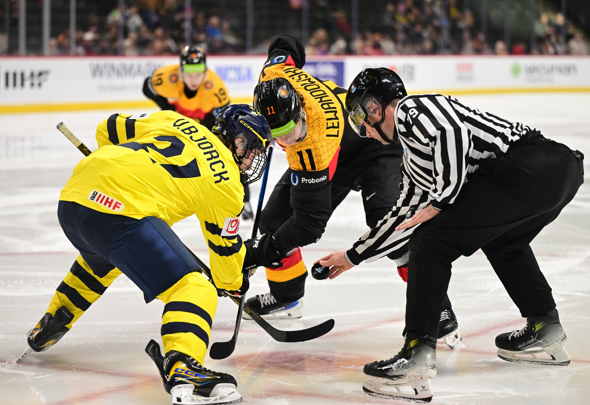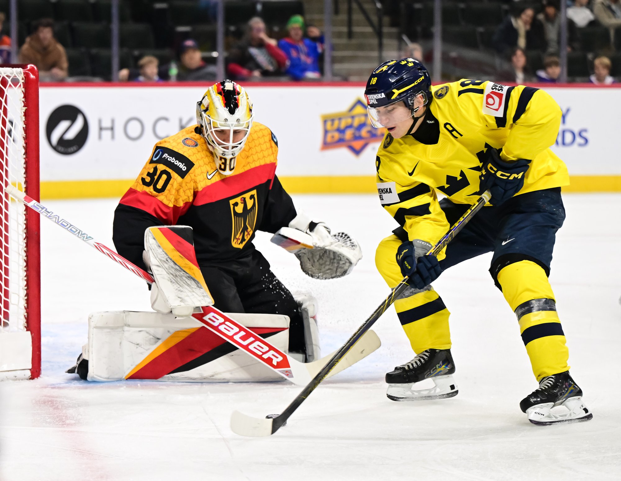 Final shots favoured Sweden 44-17. Swedish goalie Herman Liv made 16 saves for a winning World Junior debut. Germany's Linus Vieillard was replaced by Lukas Stuhrmann after giving up five goals through two periods.