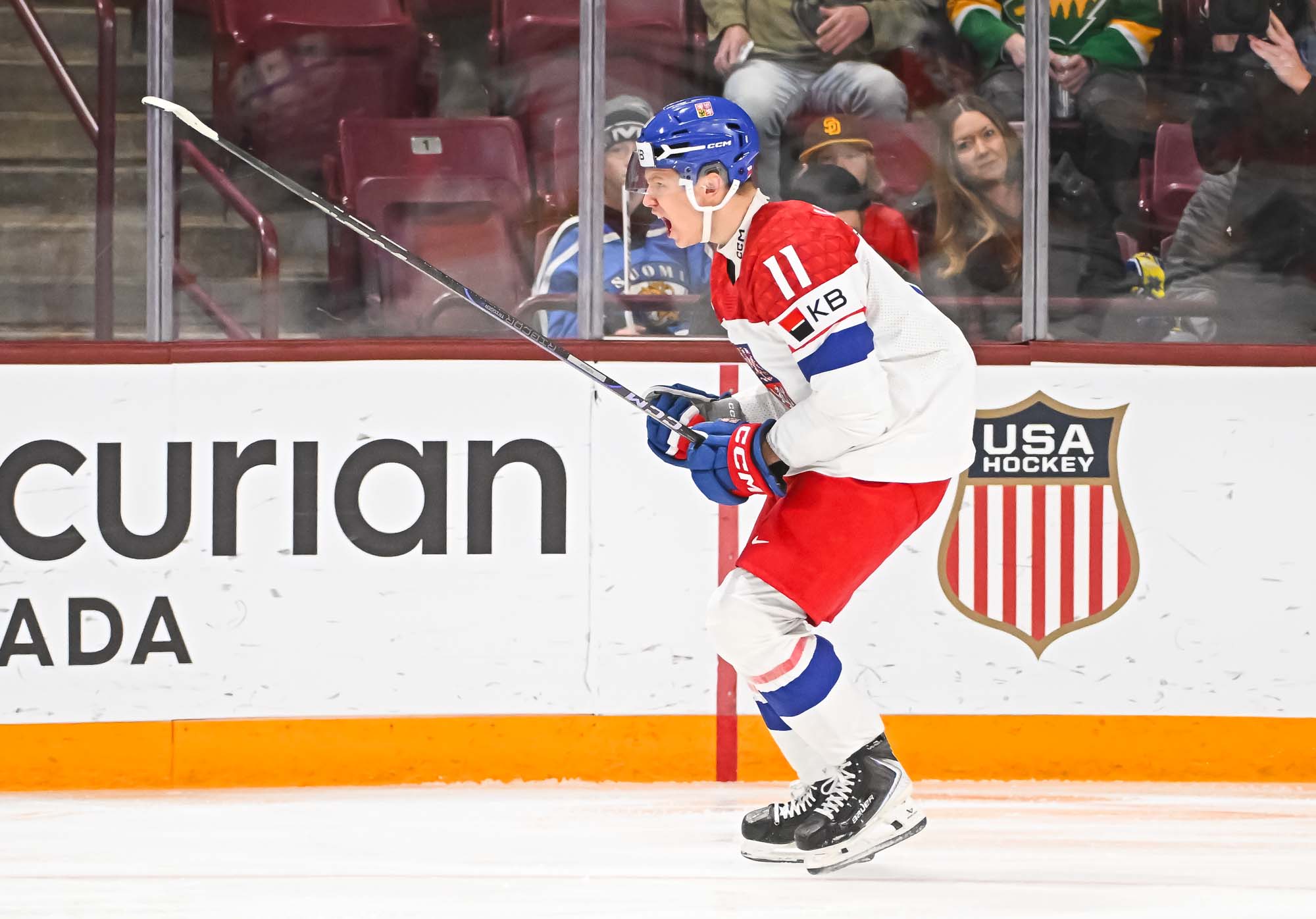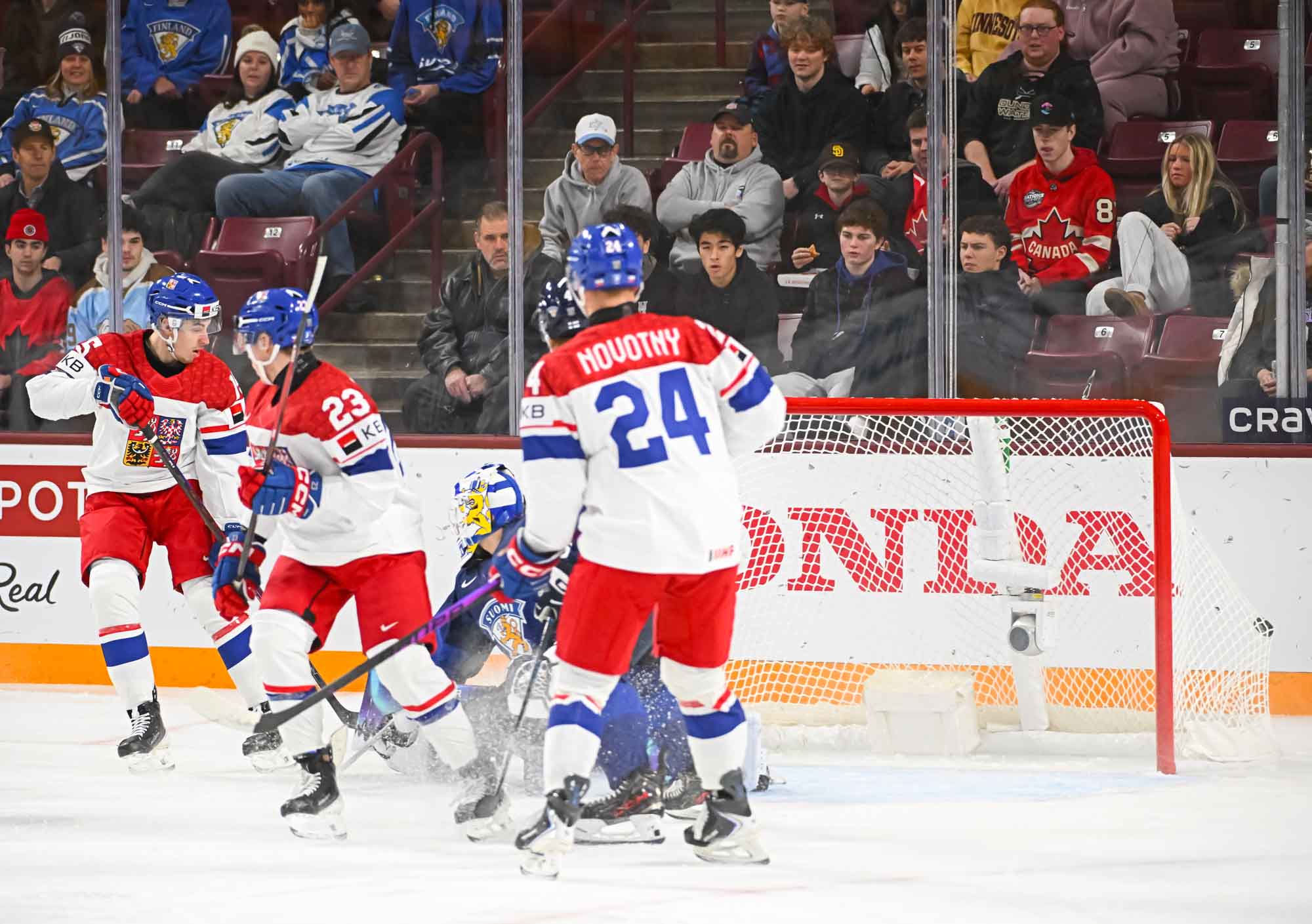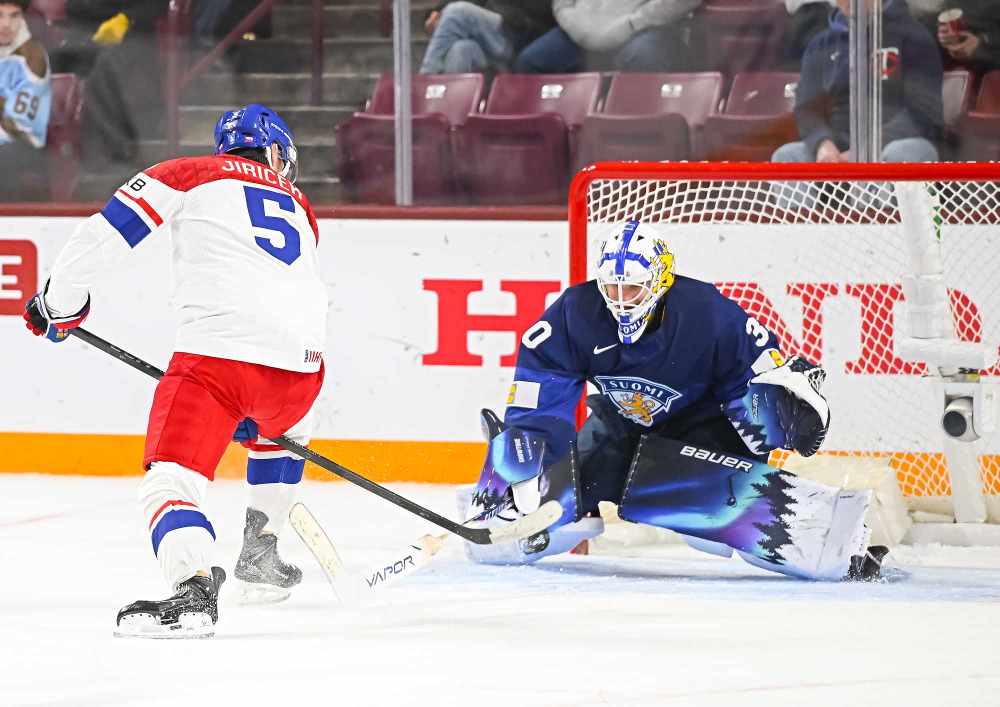 Adam Jiricek scored his second goal of the tournament at 3:39 of overtime to give Czechia a 2-1 win over Finland this afternoon at 3M Arena at Mariucci. It was a senstional, between-the-legs shot from in close that will be hard to beat as goal of the tournament.