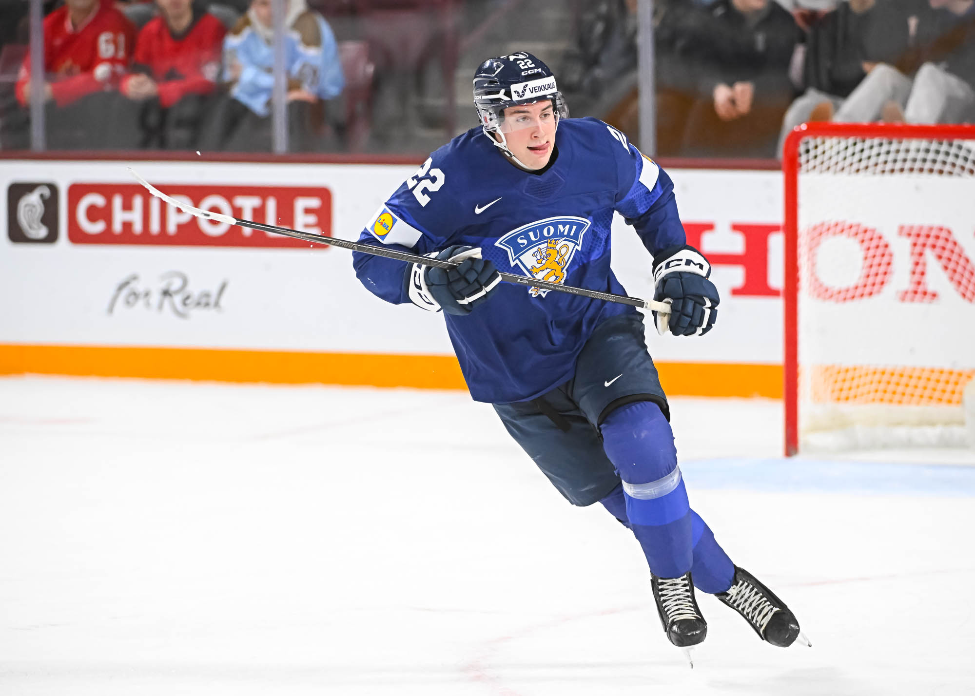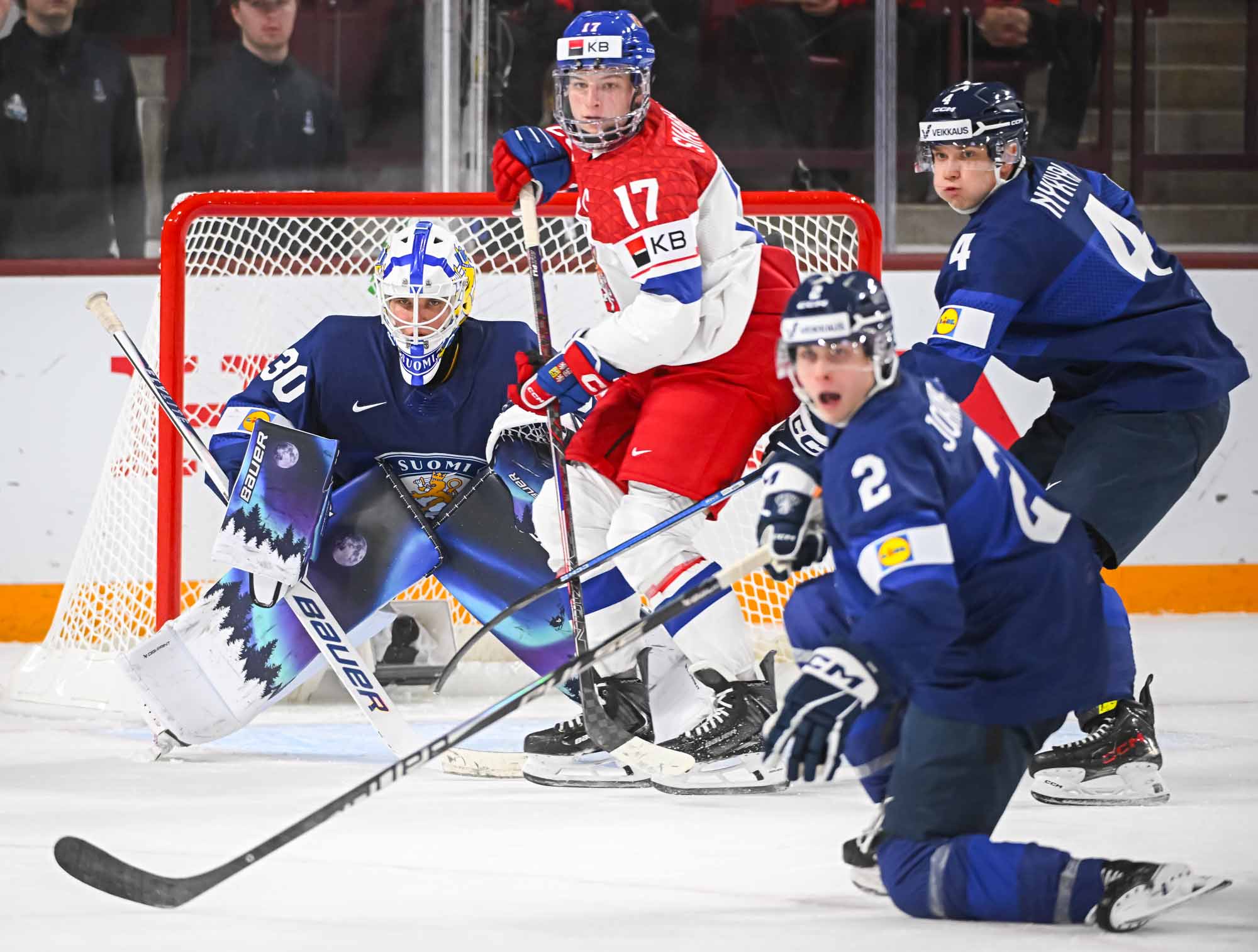 The game got off in a bad way for the Finns. Just 66 seconds after the opening faceoff, Veeti Vaisanen was assessed a major penalty and game misconduct, putting his team in a hole right away.