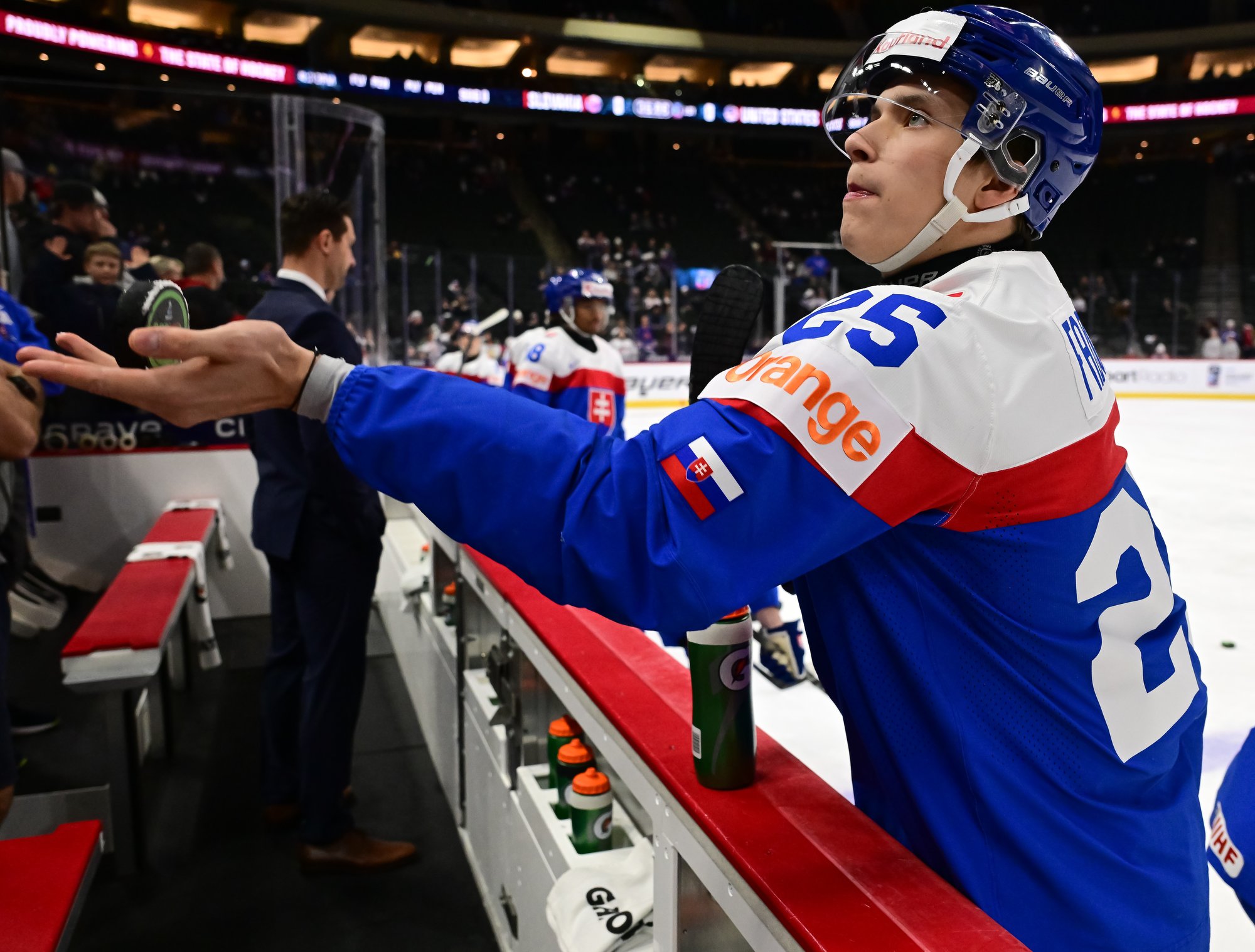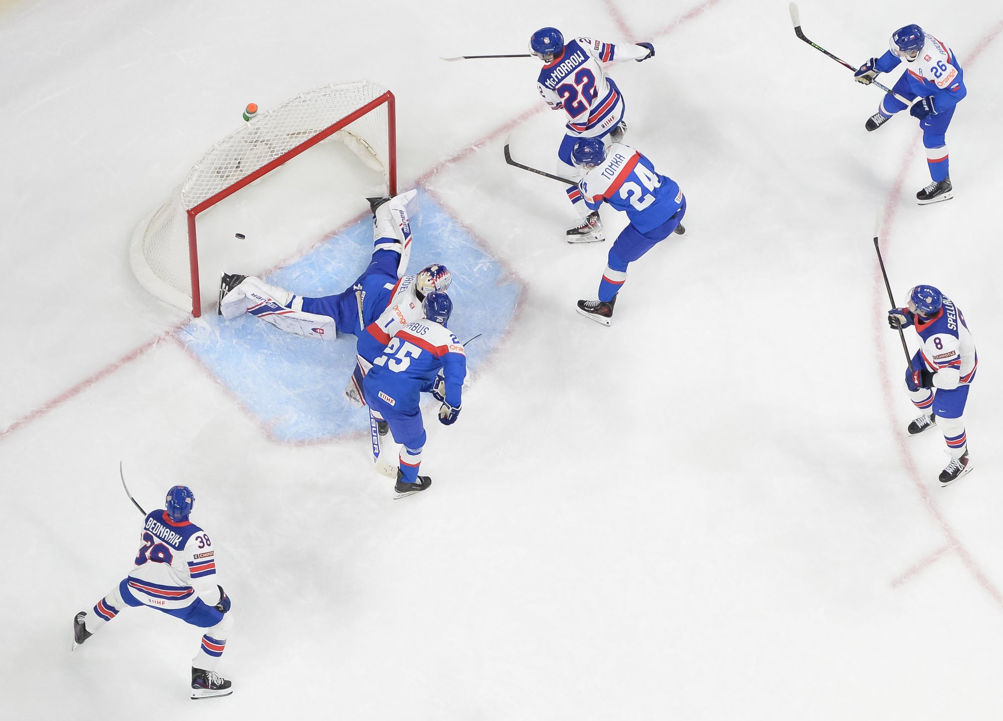 At 6:46, Belusko restored Slovakia's two-goal lead with another shorthanded marker. A neutral-zone turnover spawned a partial 2-on-1 break, and the Muskegon Lumberjacks blueliner fired a top-corner beauty.