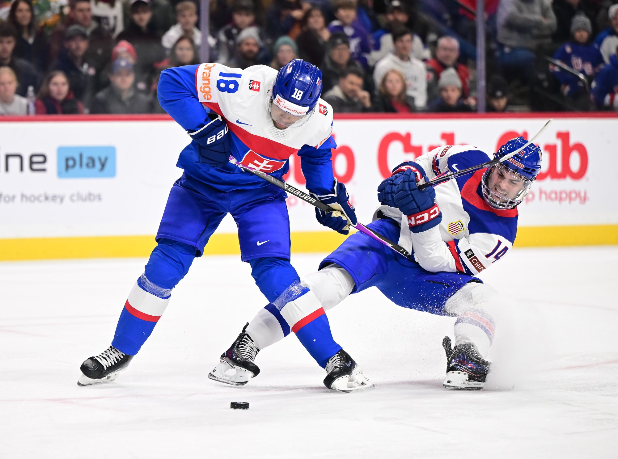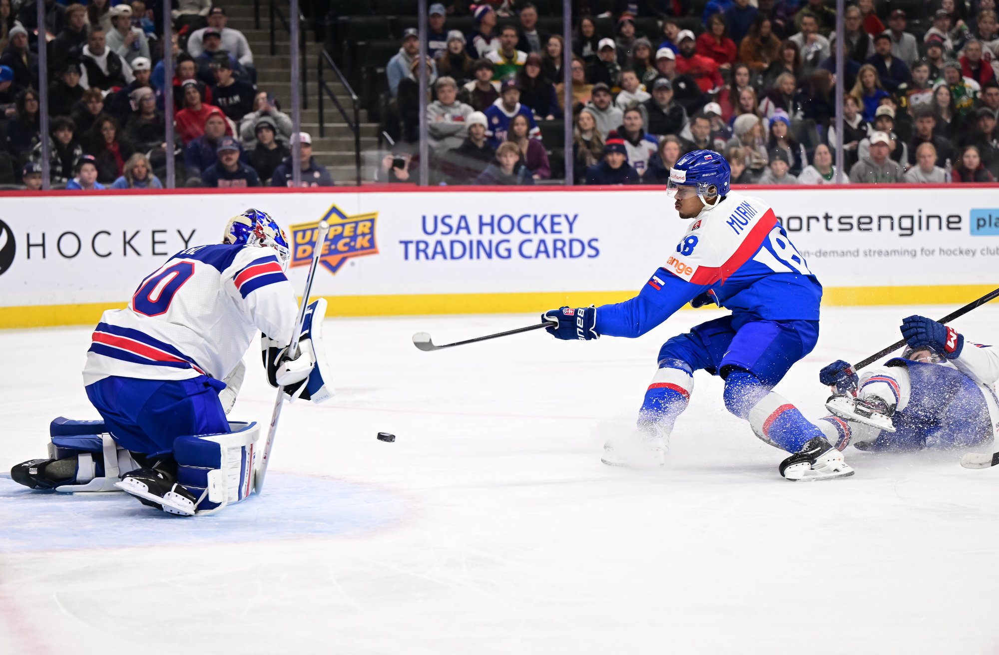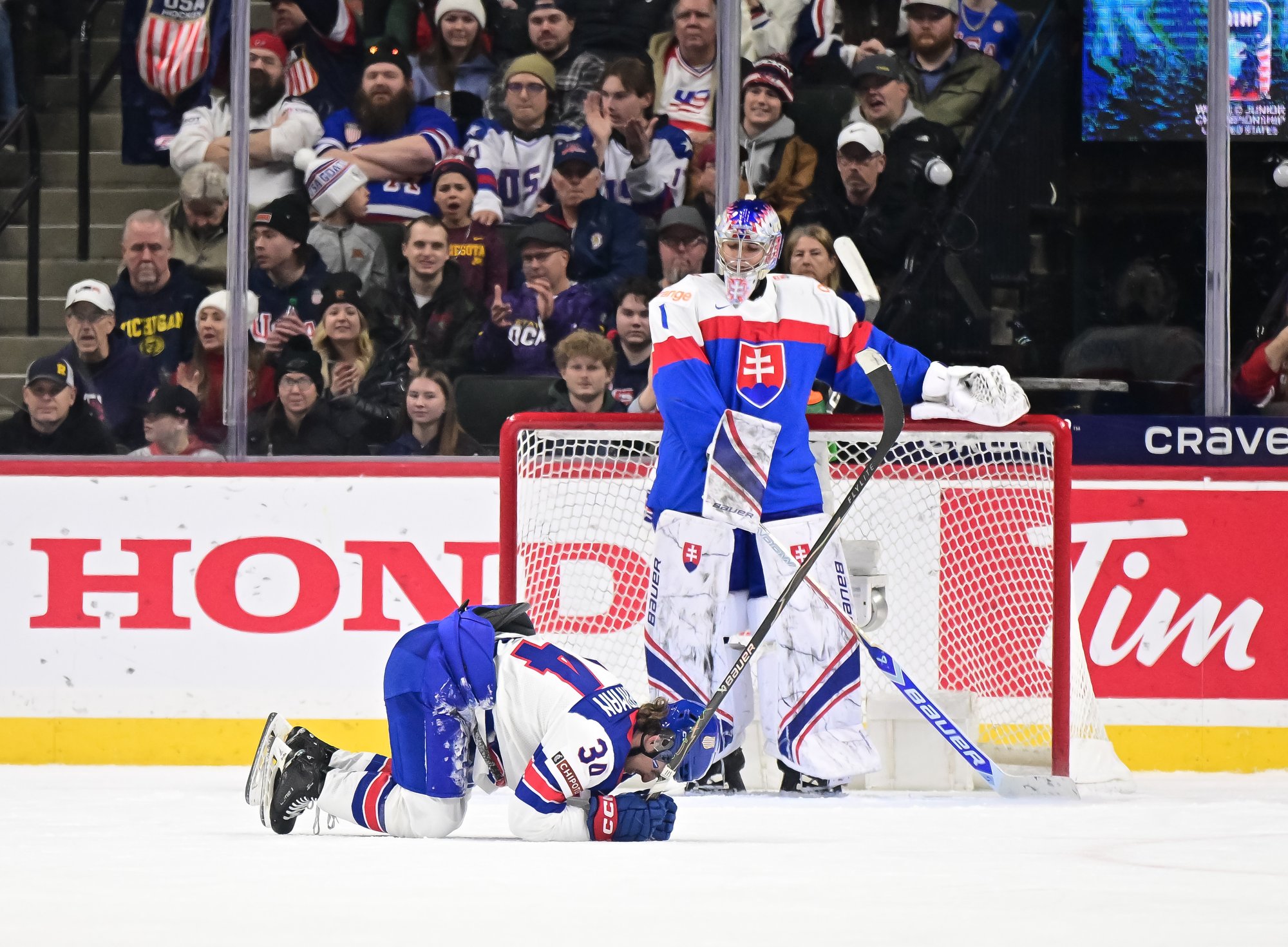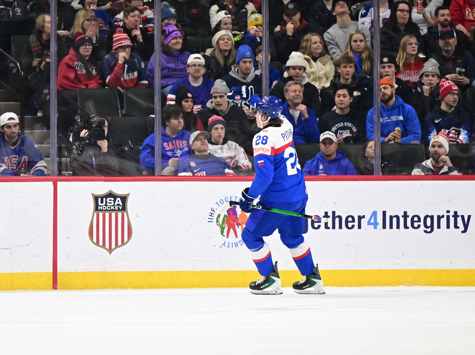 Slovakia came out hard, stunning the partisan crowd at St. Paul’s Grand Casino Arena. Pitka made it 1-0 at 8:53, taking a drop pass from Tobias Tomik on the rush and beating Heil clearnly over the blocker.
