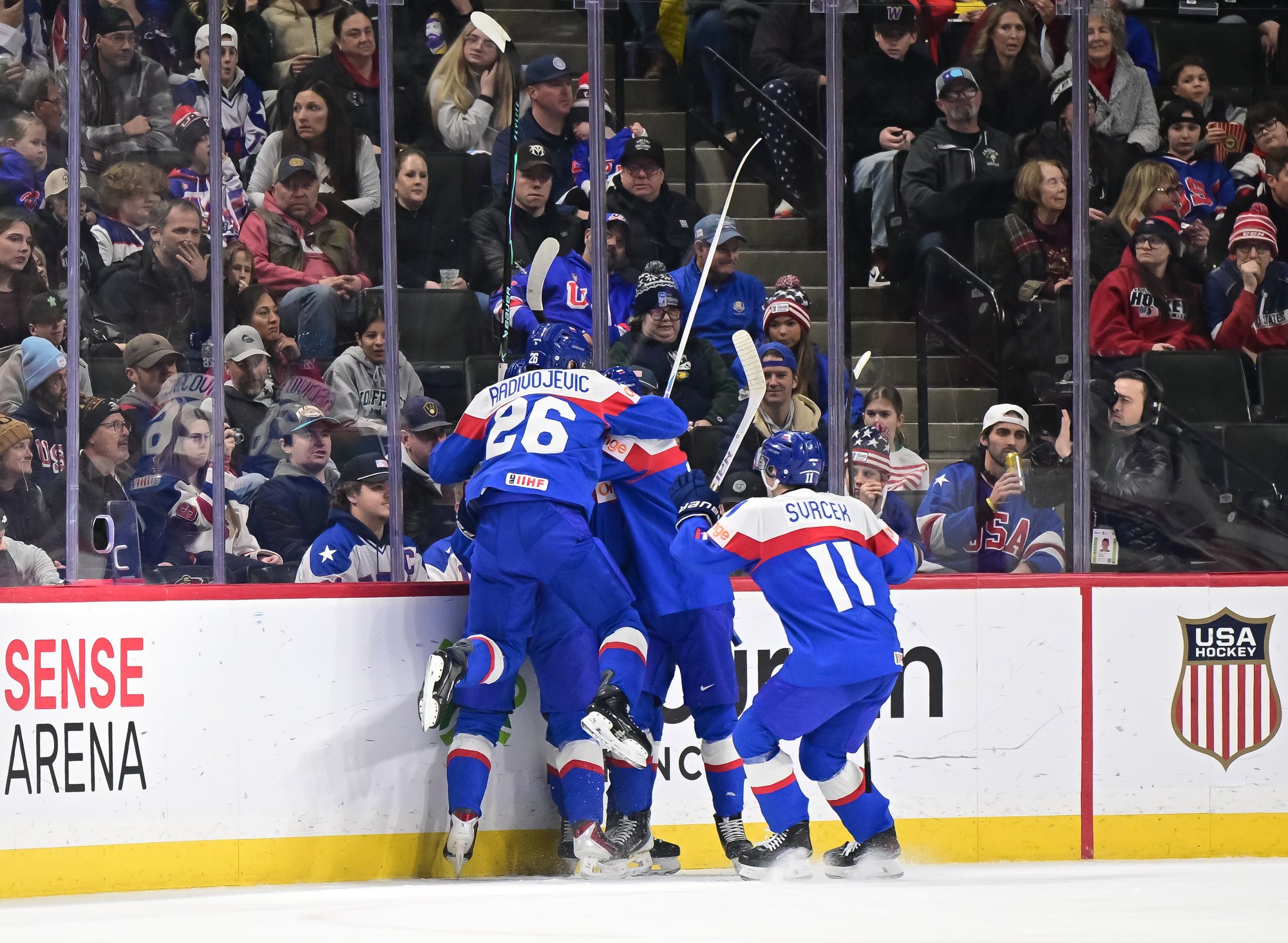 The U.S. finally countered with a shorthanded goal at 1:50 of the second period, sending the arena into a towel-waving frenzy. McMorrow blocked Pitka's point shot, busted out of the U.S. zone, and found a streaking Spellacy in front for a one-handed deflection.
