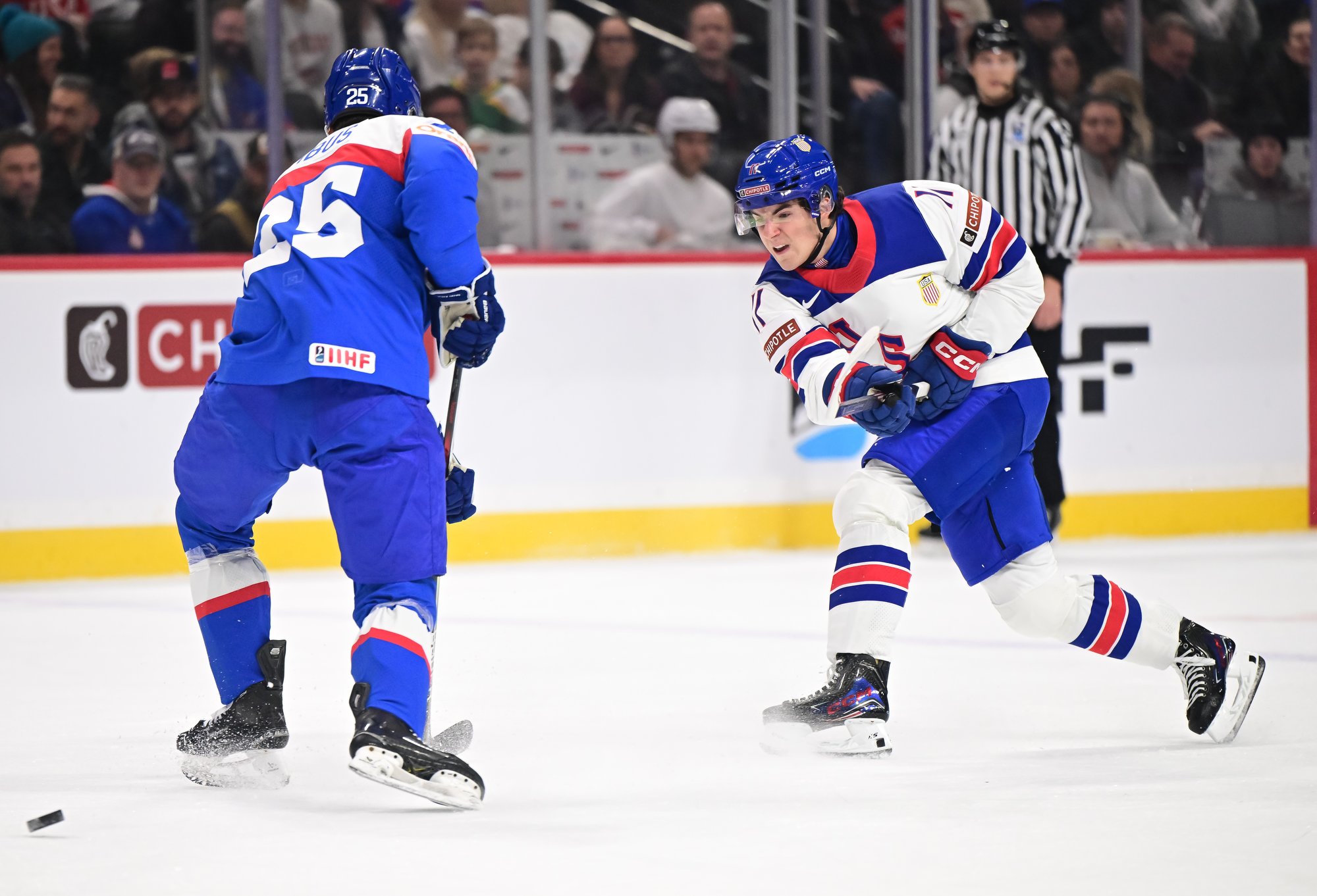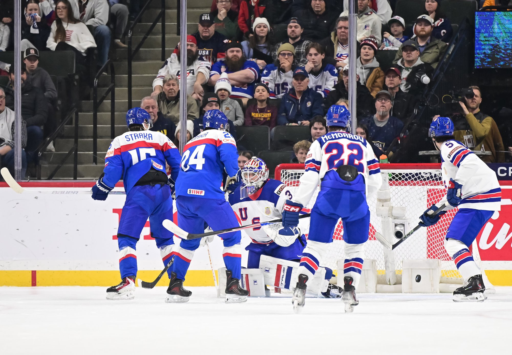 Just past the 12-minute mark, U.S. forward Teddy Stiga got a breakaway, but – unlike his golden goal against Finland in the 2025 final – he put the puck wide.