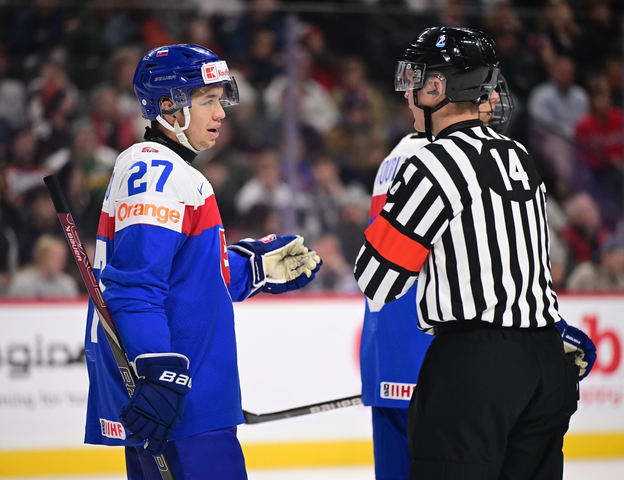 The Slovaks were incensed after Spellacy threw a high hit on Andrej Fabus in the Slovak zone. But they couldn't convert on the ensuing power play. They pulled their goalie and got within one goal courtesy of Chrenko at 18:06, but no closer.