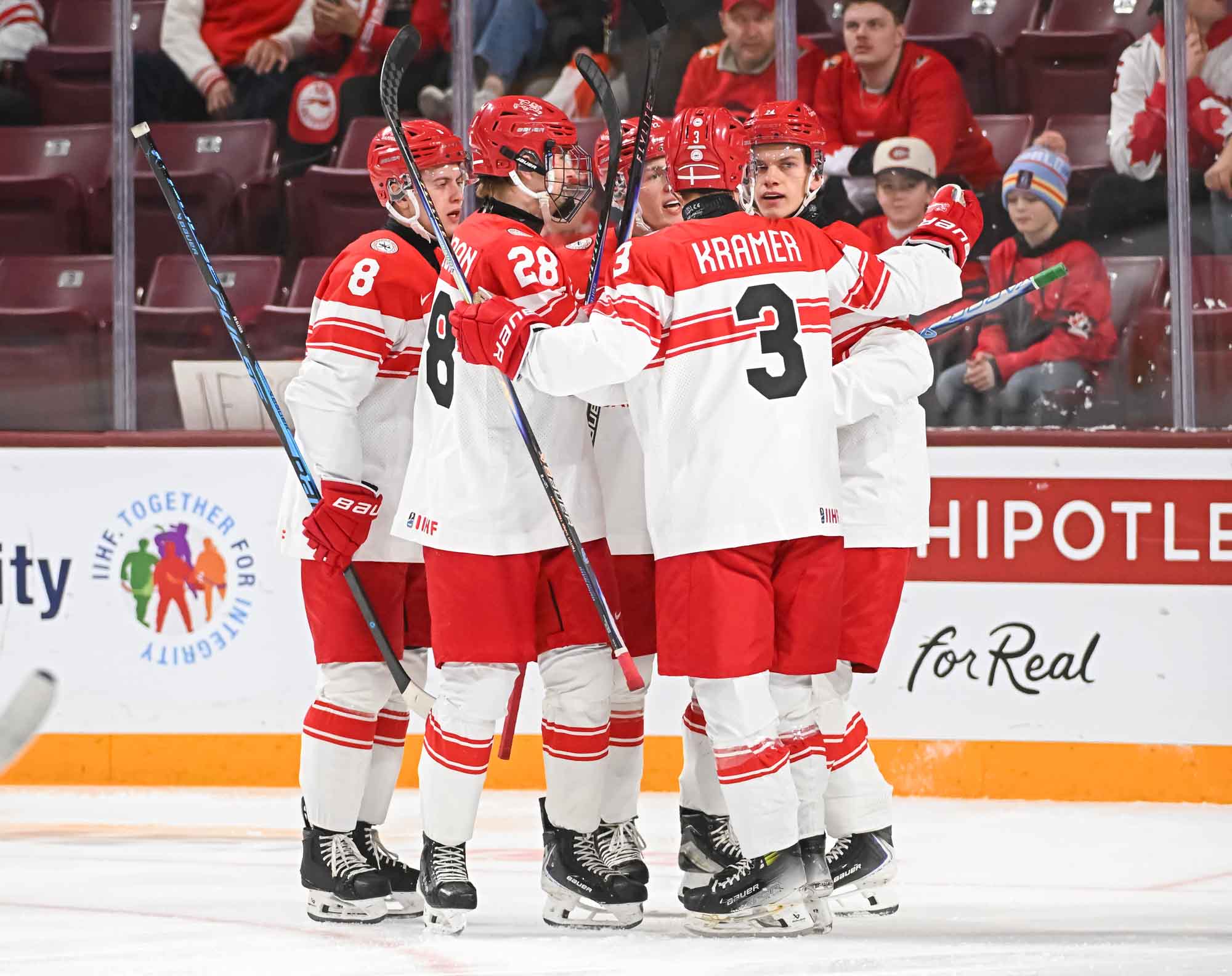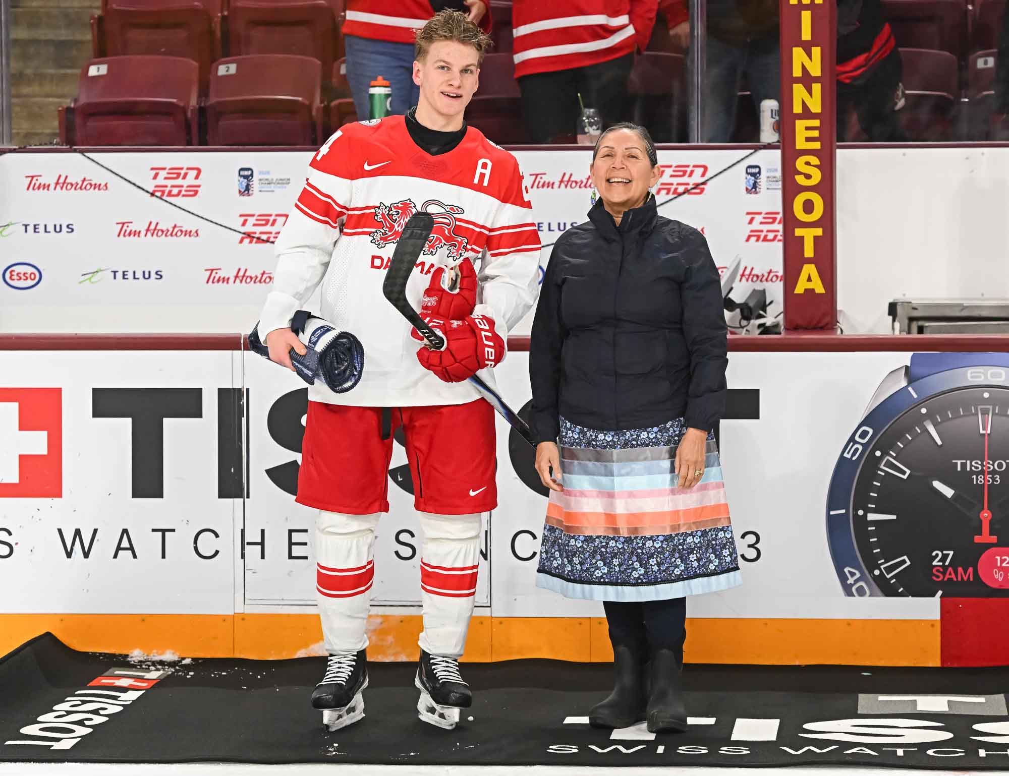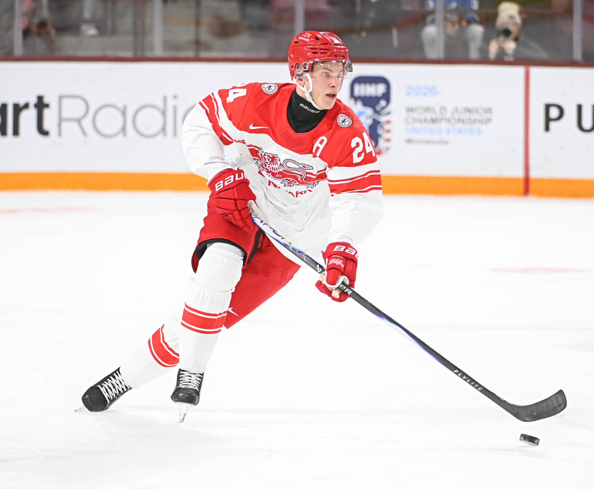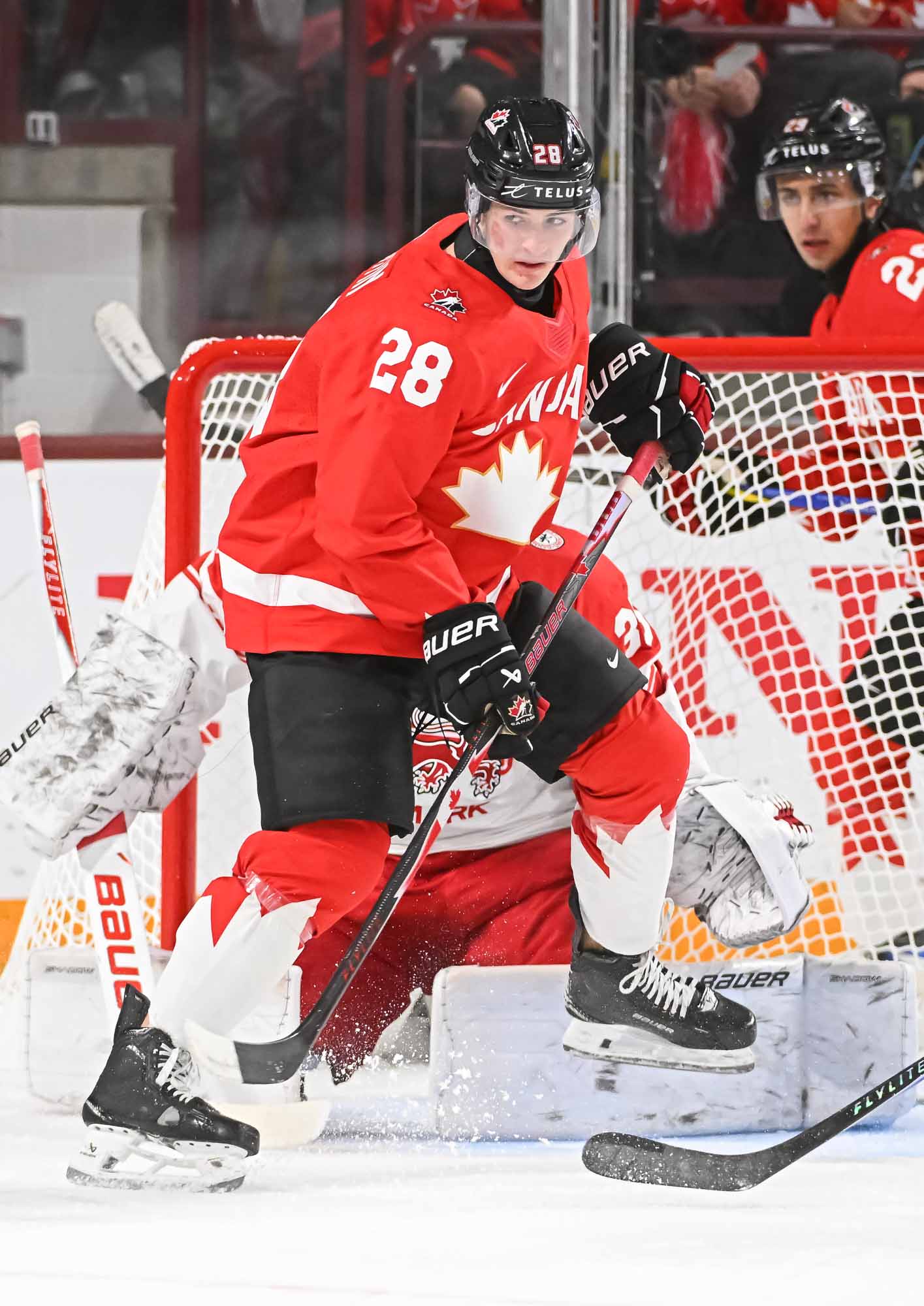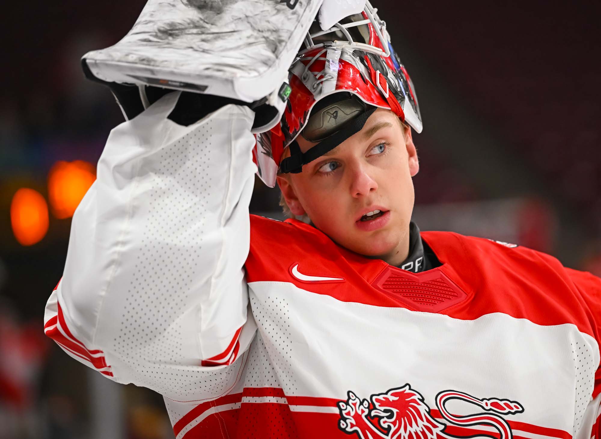 How bad was it for the Danes? Tristan Petersen broke a skate blade deep in the Canada end and struggled mightily to crawl to the bench. He wasn’t halfway there when Canada took advantage of the extra skater. Zayne Parekh finished the play with a high shot that eluded Patrick Tiedjen, who was making his debut with the national team.