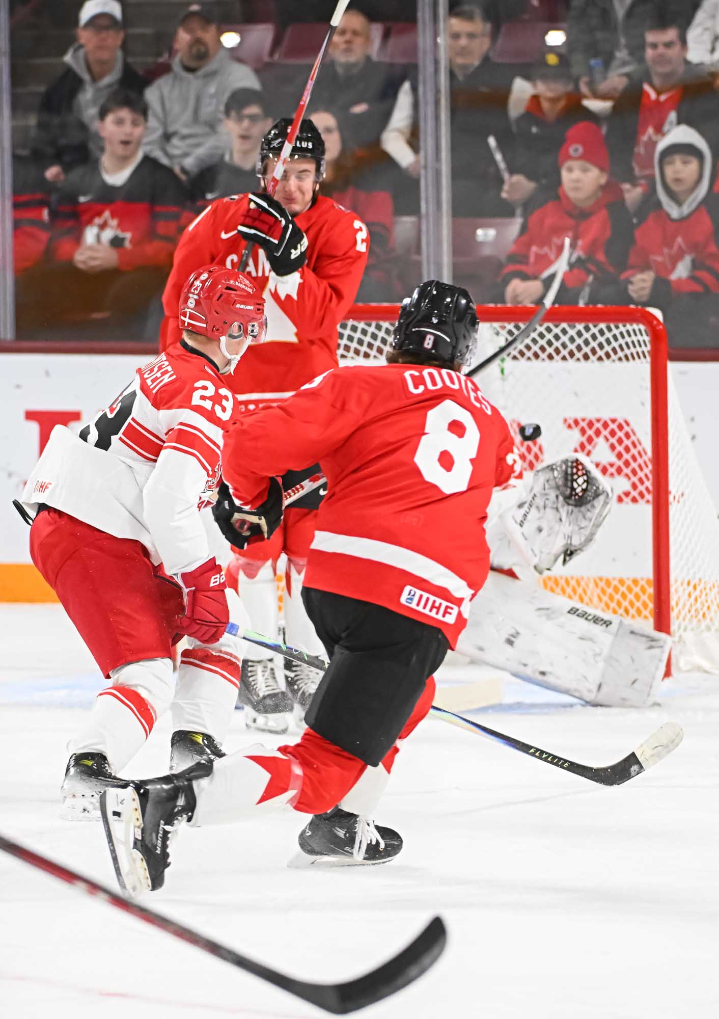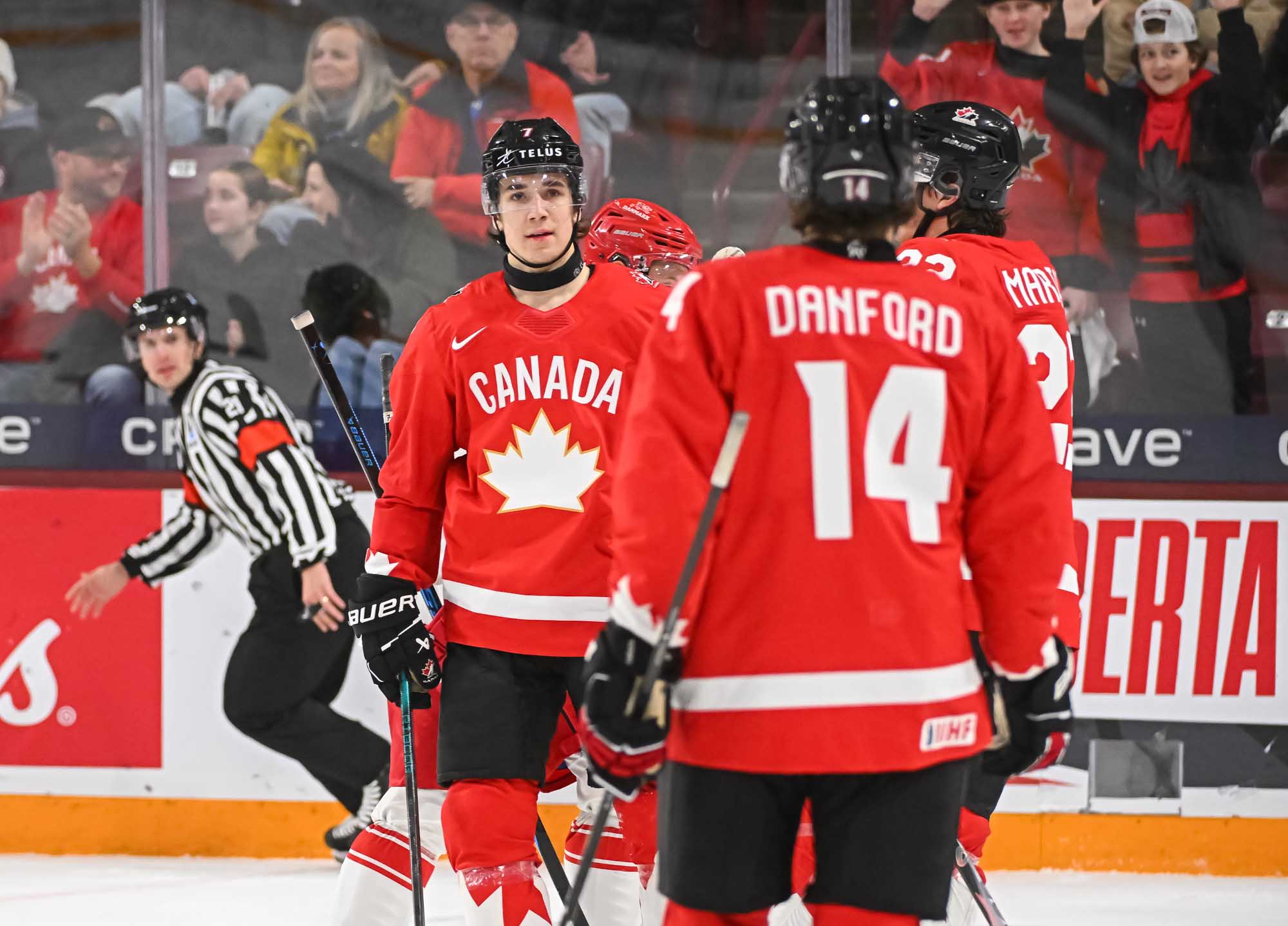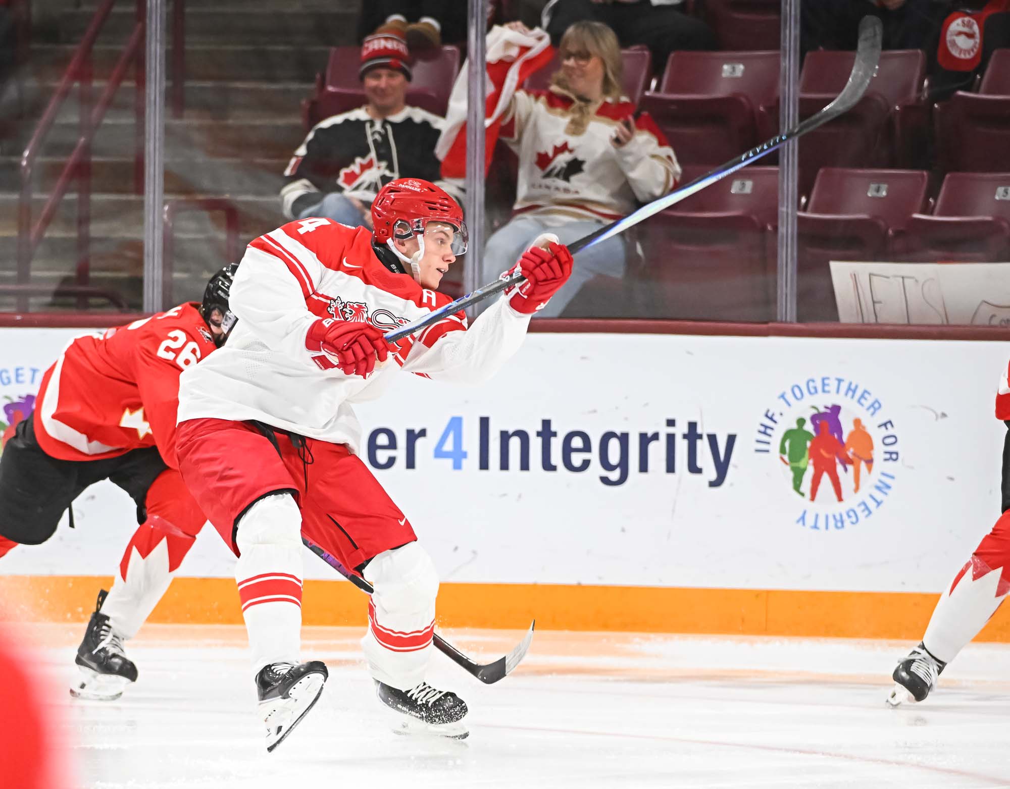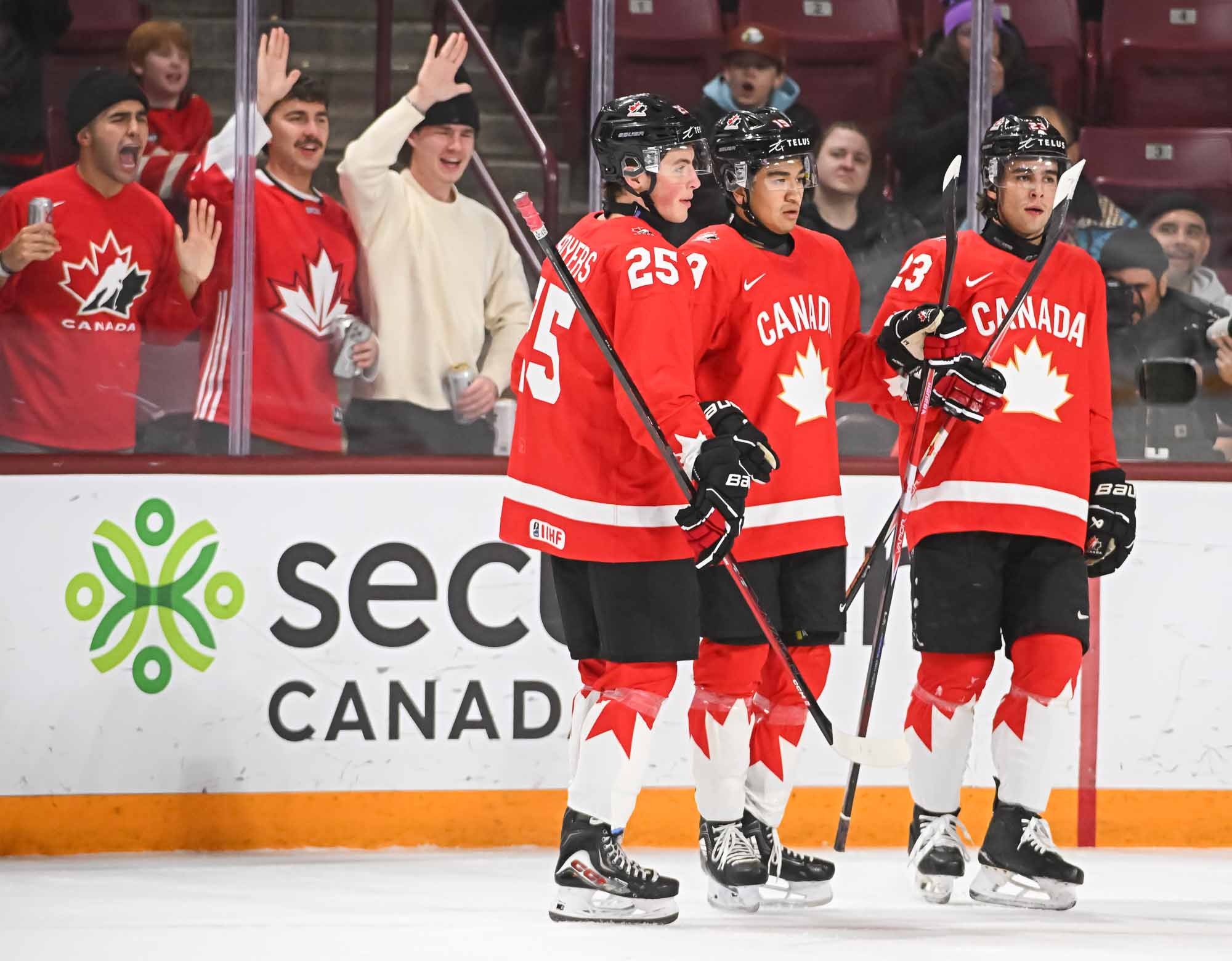 Shots favoured Canada, 49-13. The winners got a hat trick from Gavin McKenna and three assists from Brady Martin. In all, 14 skaters had at least one point.