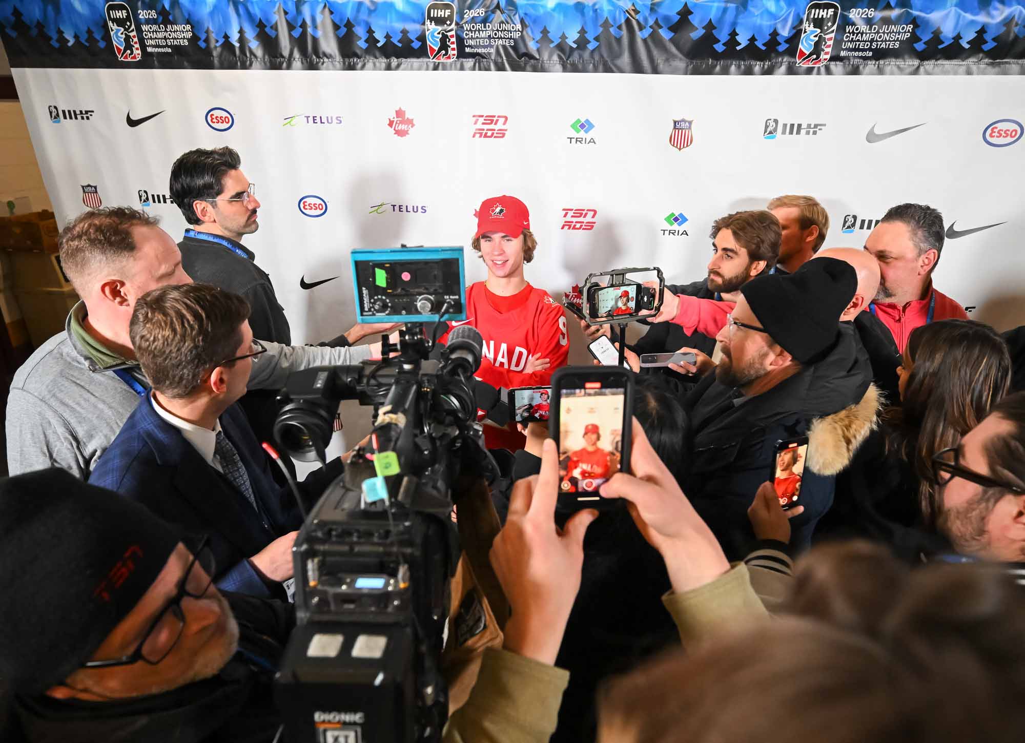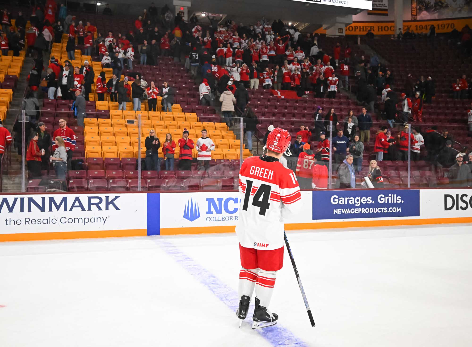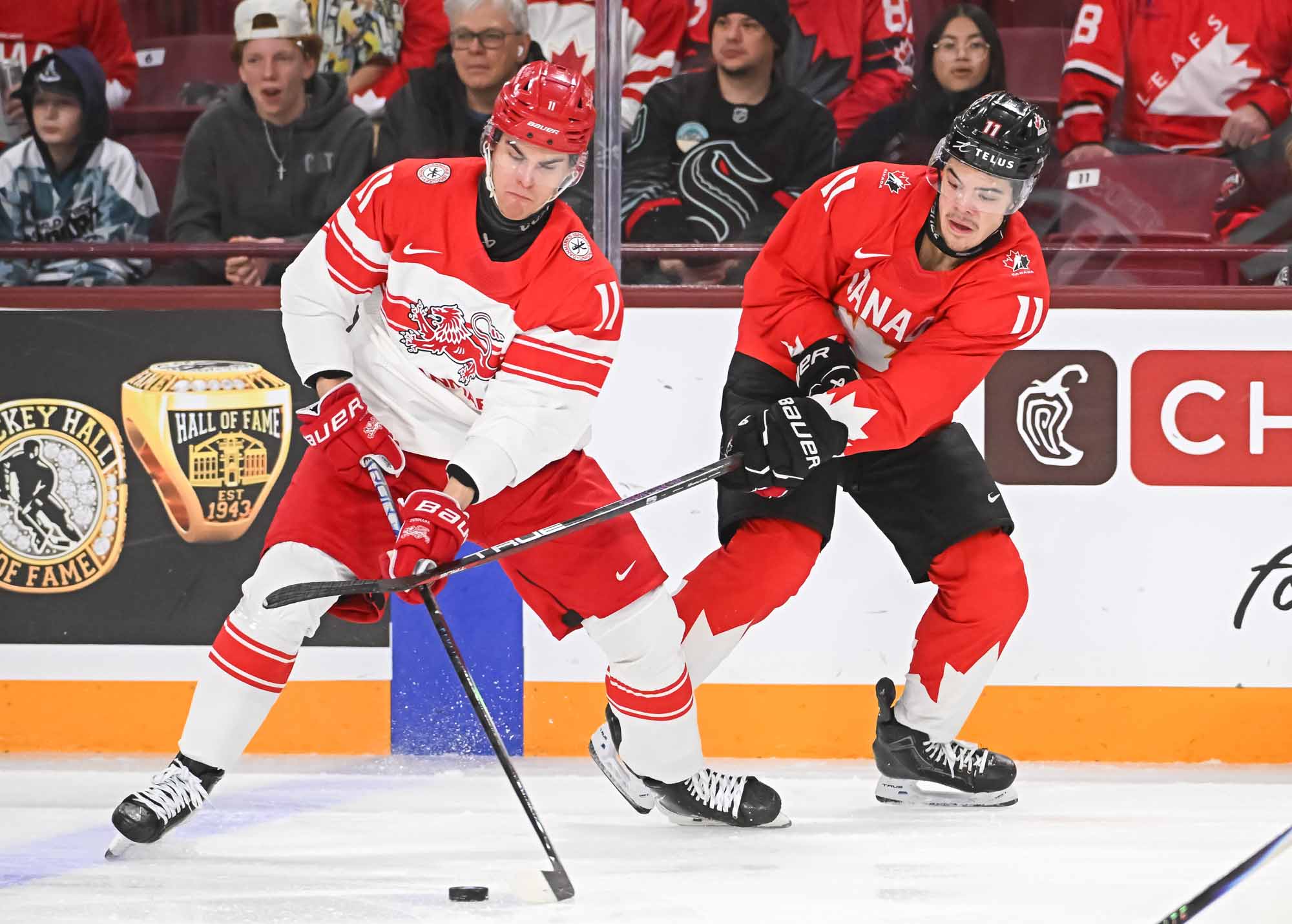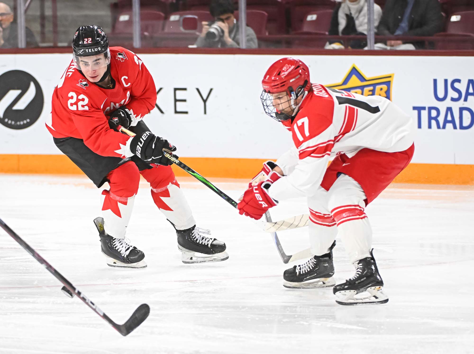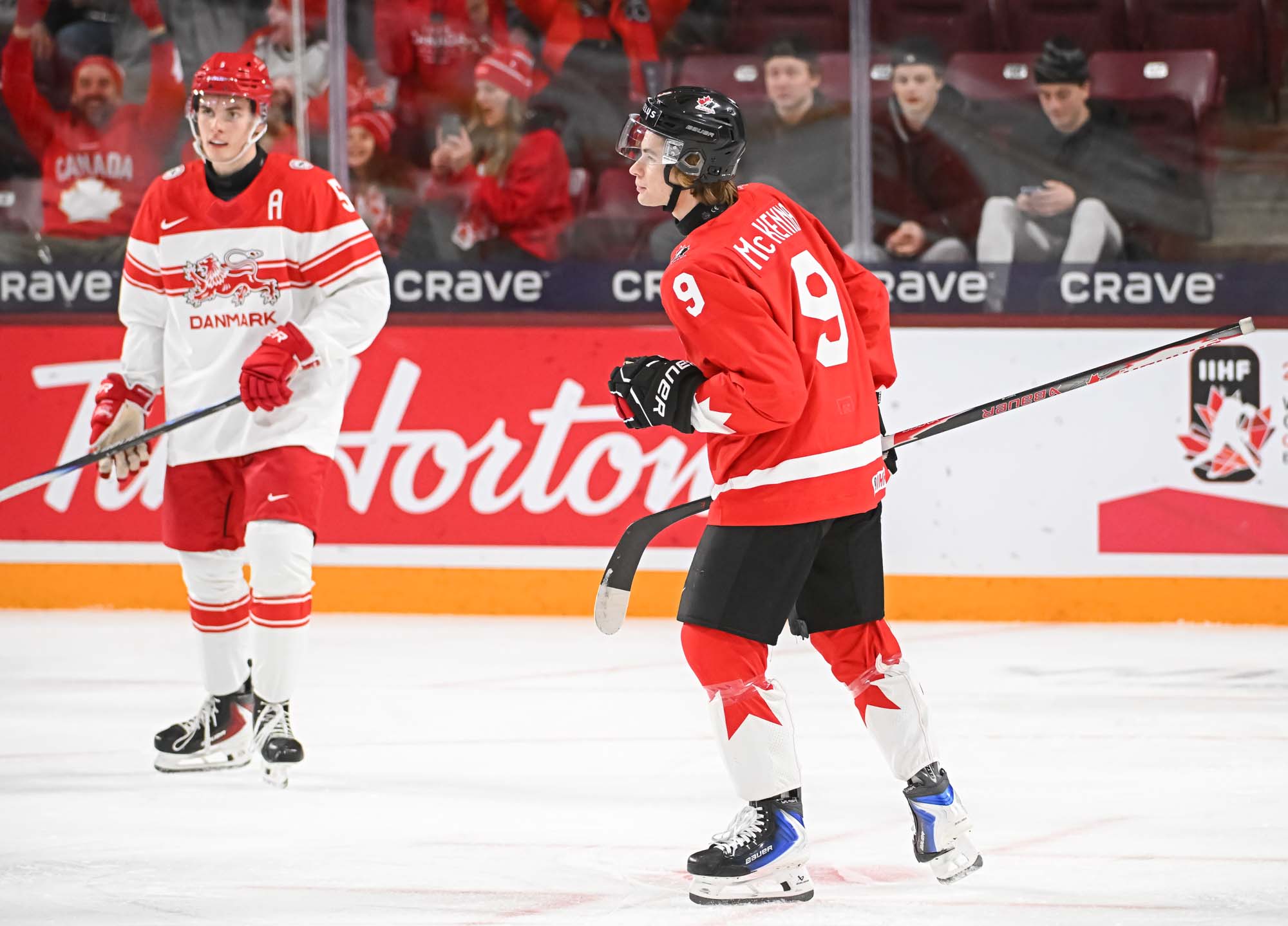 Shots favoured Canada, 49-13. The winners got a hat trick from Gavin McKenna and three assists from Brady Martin. In all, 14 skaters had at least one point.