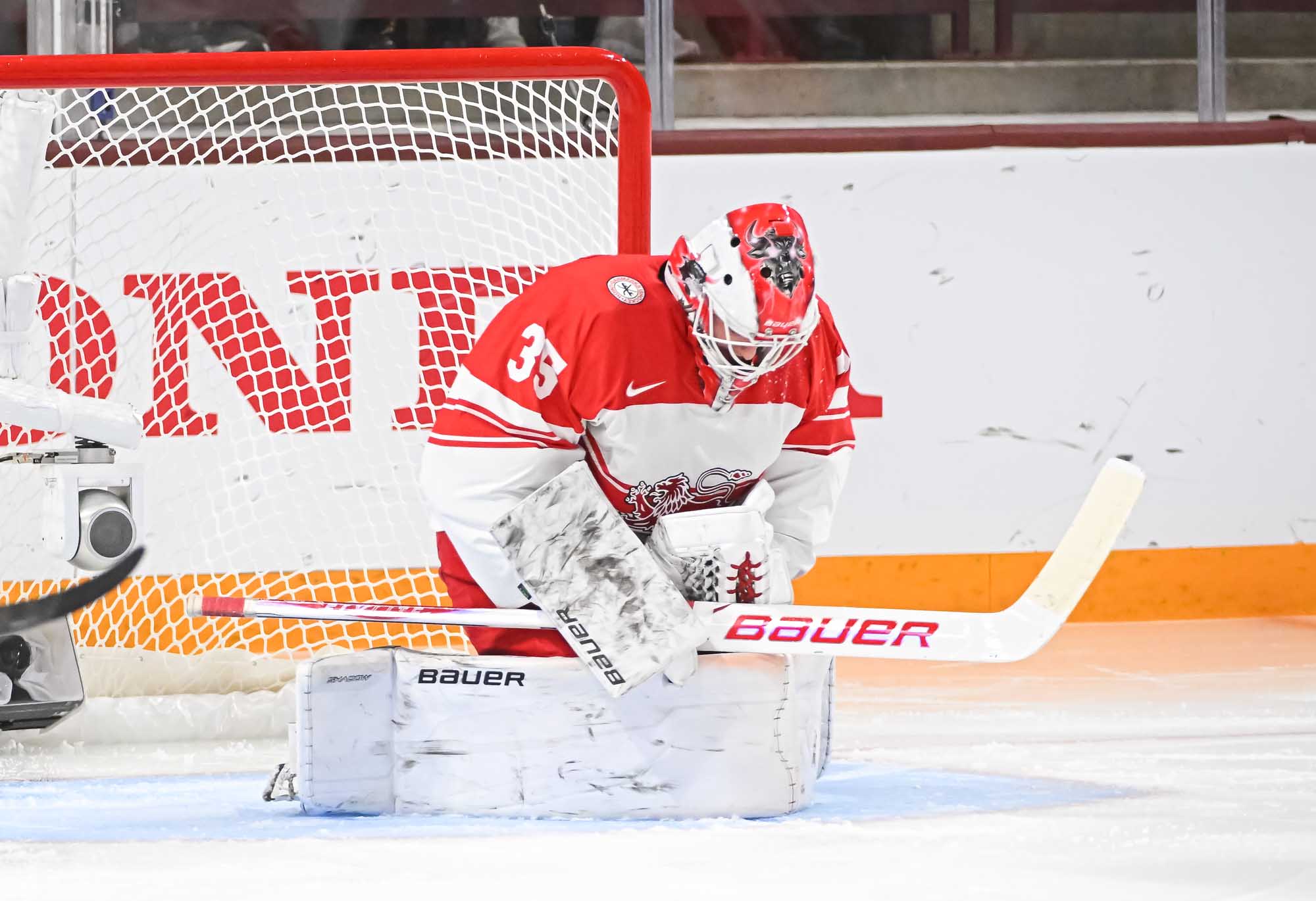 That being said, the Danes scored early in the second off a Canada miscue in the corner by Cole Beaudoin. The puck ended up on the stick of Klyvo, and his quick shot fooled Carter George just 28 seconds into the period.