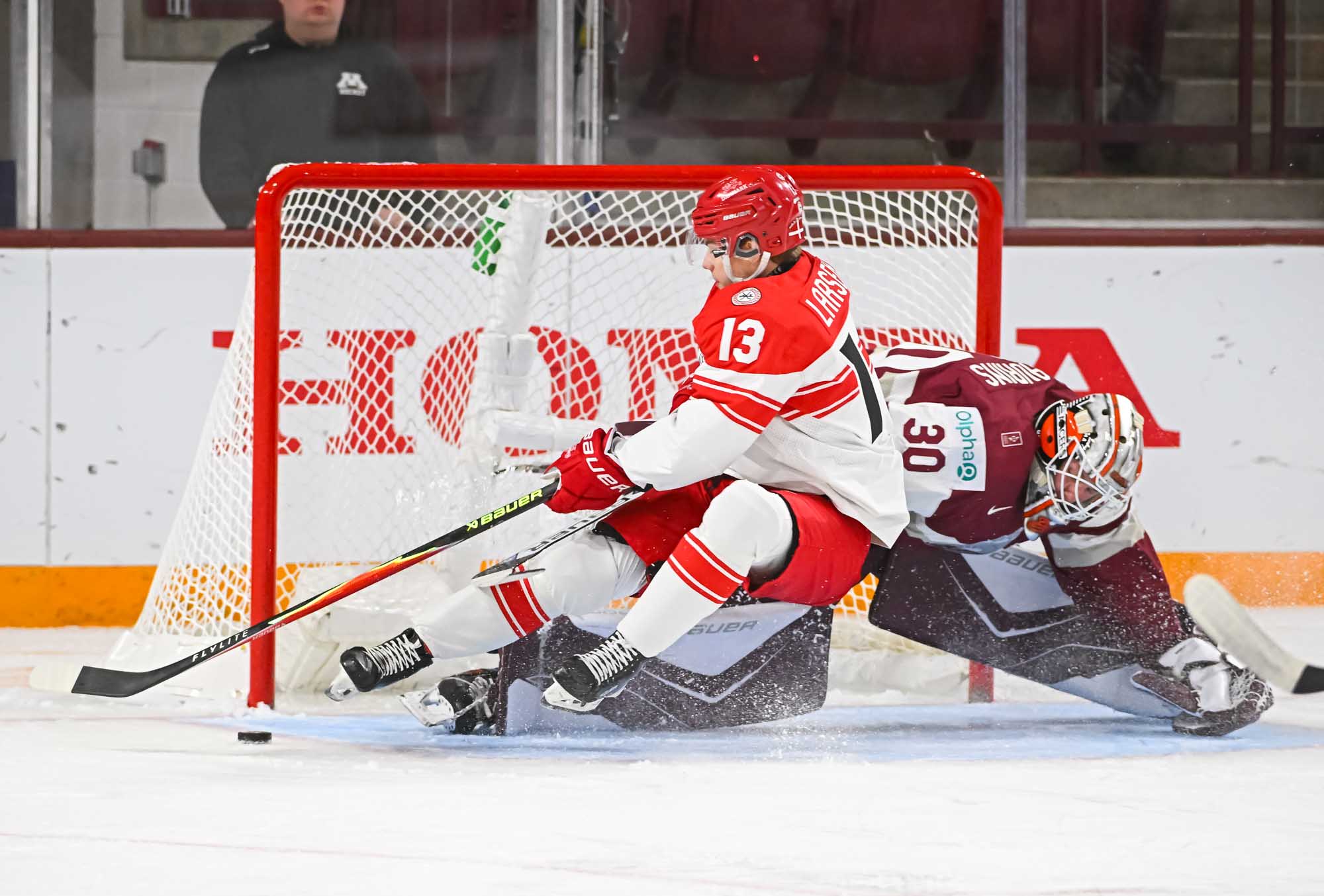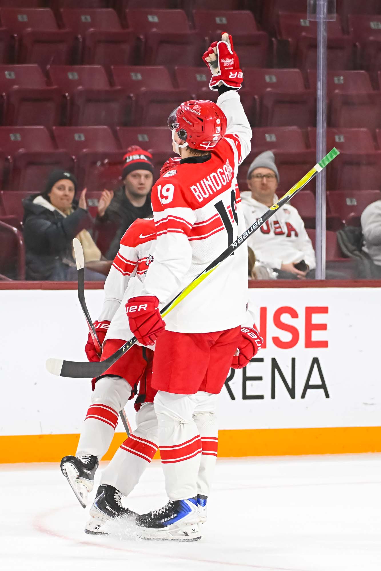 But again, the Danes fought back. Bundgaard got the puck in the slot and wired a high shot over Maurins’s shoulder to make it a 4-2 game after 40 minutes.