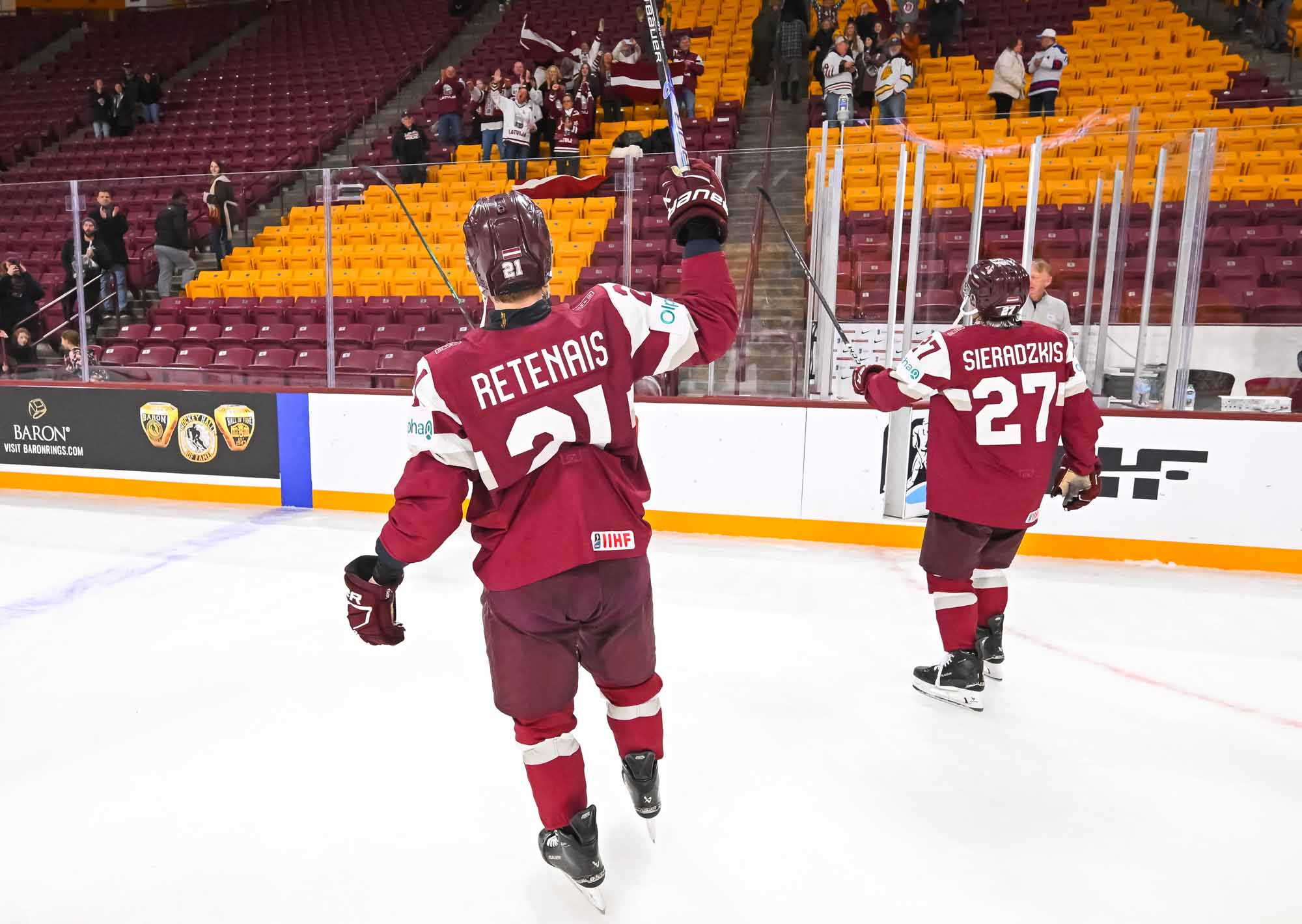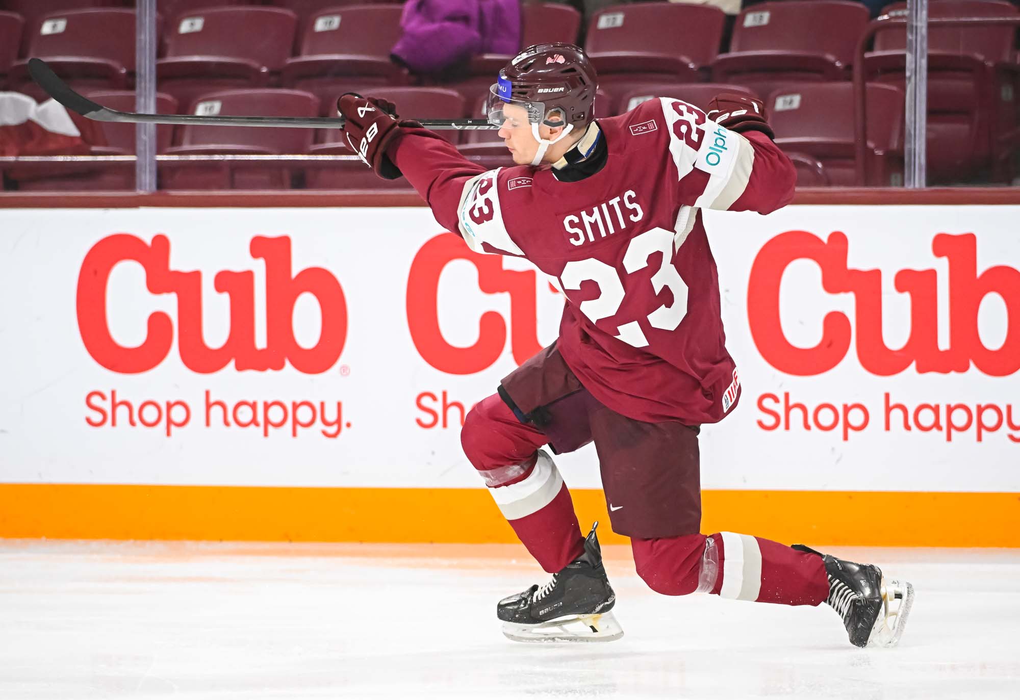 Kristers Ansons had a goal and three assists for Latvia while William Bundgaard had a goal and two assists for the Danes, who were outshot 42-12.