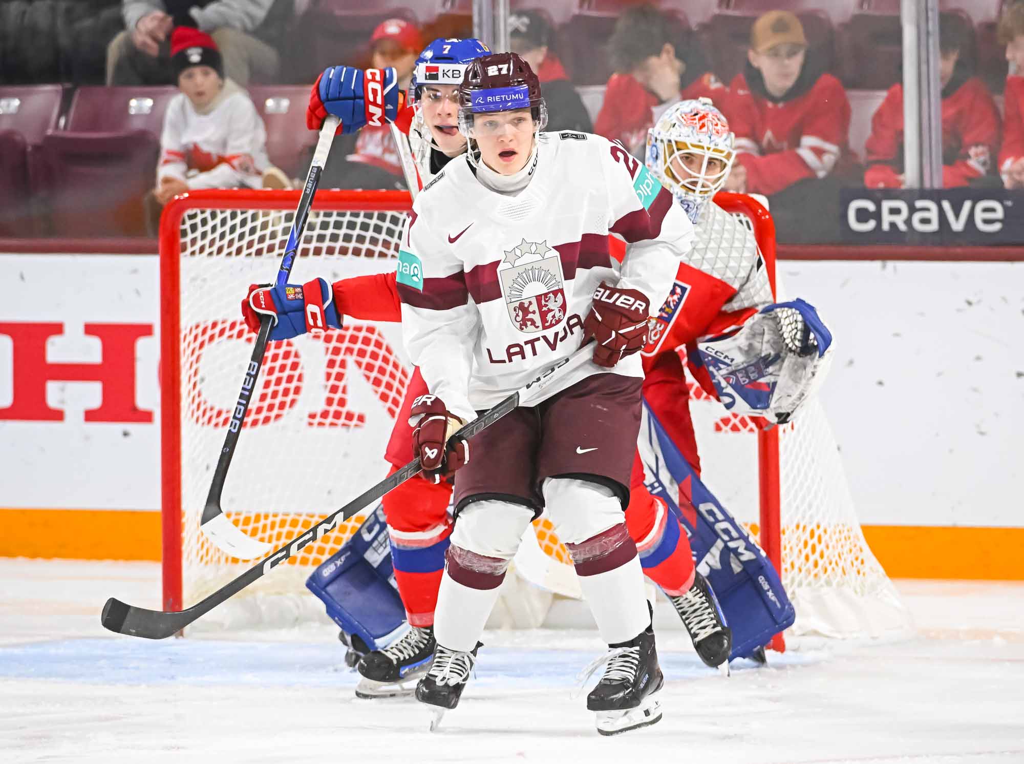 The Czechs trailed early but rallied to beat plucky Latvia 4-2 at the 2026 IIHF World Junior Championship on New Year's Eve. Blueliner Max Psenicka tallied the eventual winner early in the second period, with Maximilian Curran earning his second assist on the play.