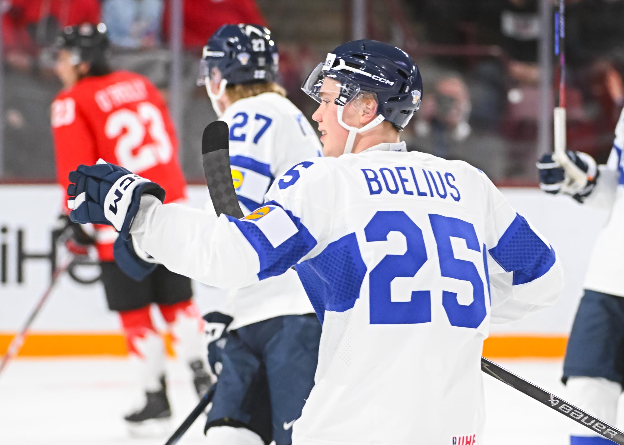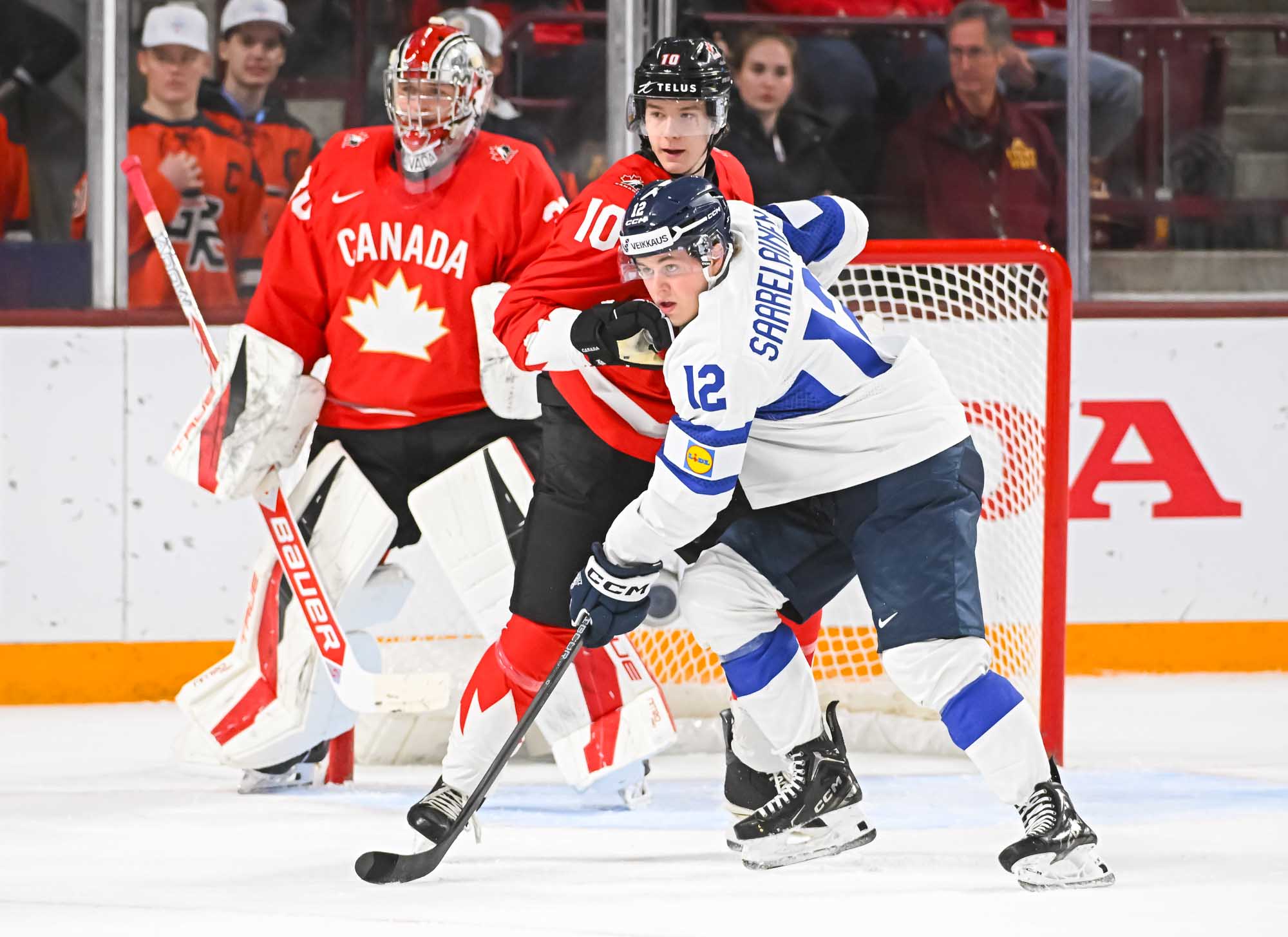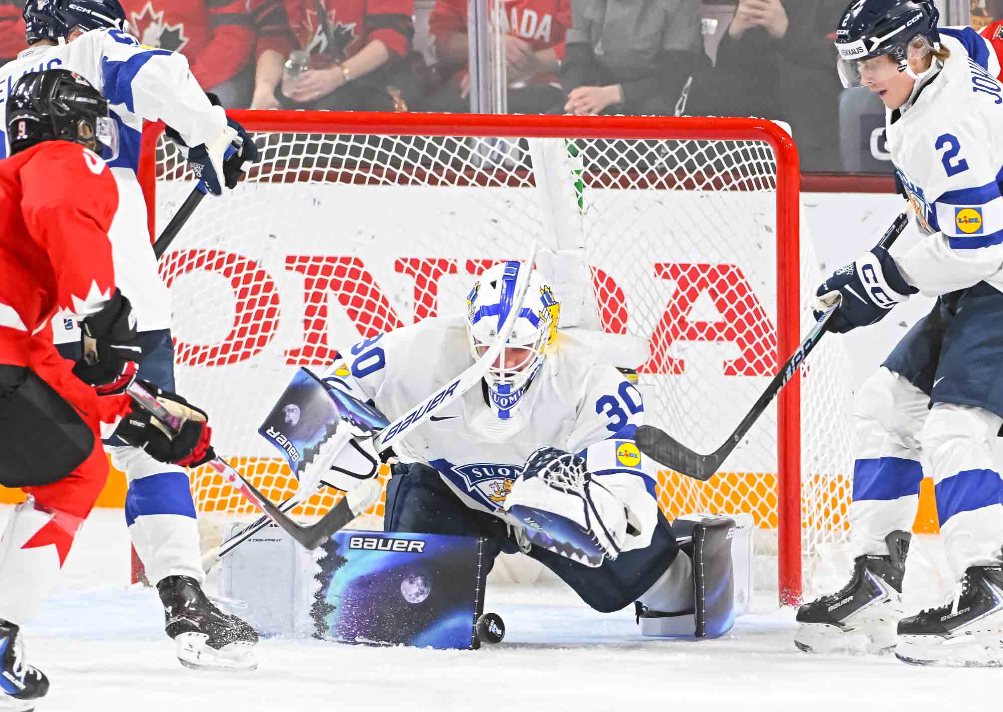 It felt hard to believe that this was a showdown between Finland’s Petteri Rimpinen – last year’s Best Goalie en route to the silver medal – and Canada’s Carter George, who led the 2025 tournament with two shutouts. Why? The game started off with virtually every shot going in. It was relentless goal-trading.