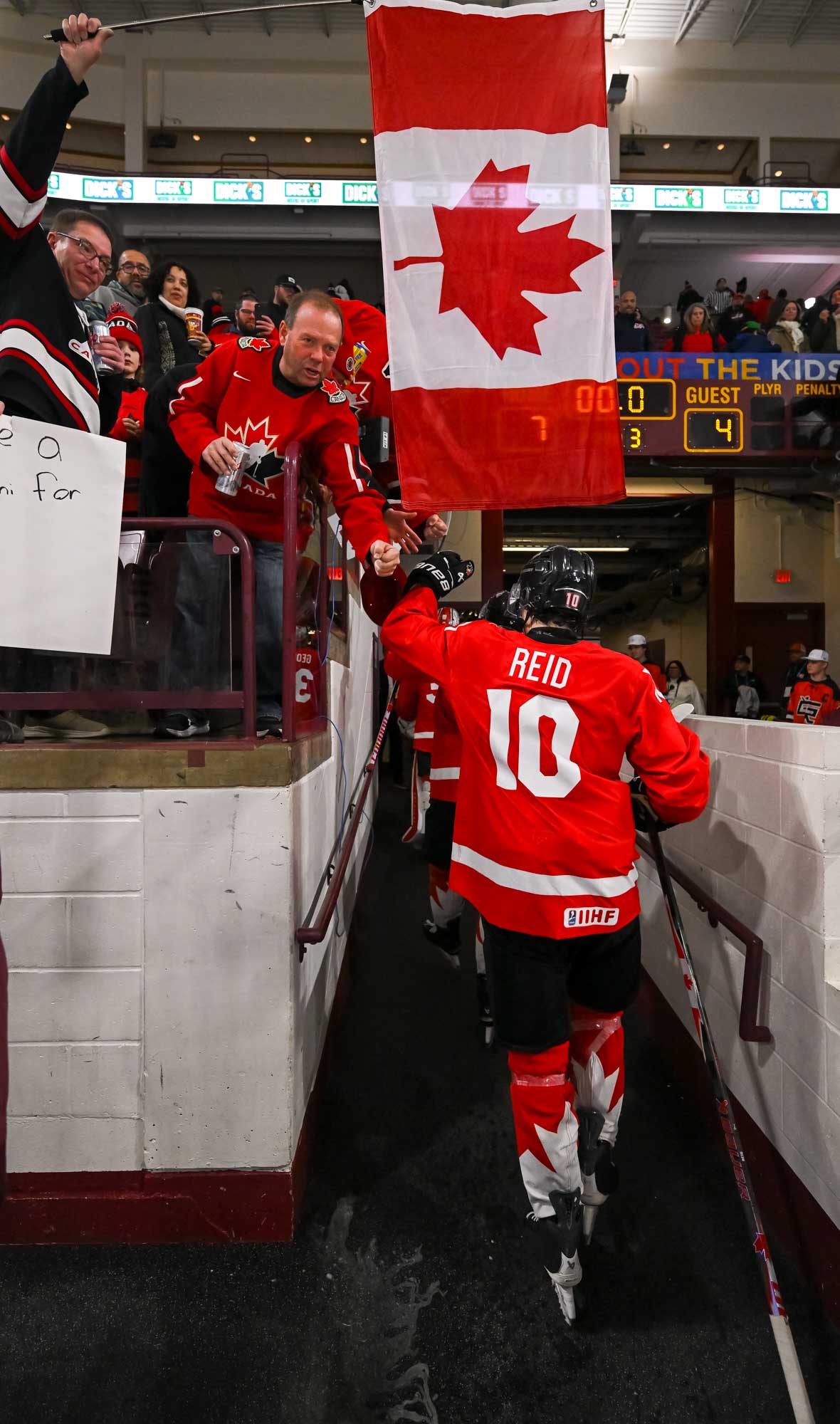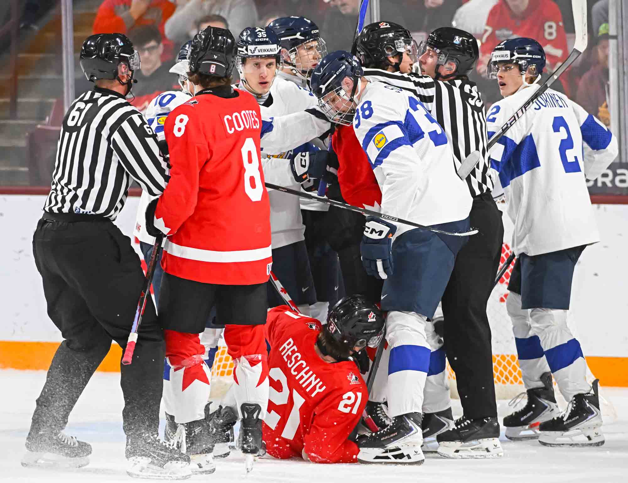Things settled down a bit in the middle frame. Canada had the better of the play as the Finns wasted time in the sin bin. On the first Canadian power play, Hage dinged one off the post. But during the second one, Tij Iginla scored on a breakaway at 9:35 to make it 4-3.