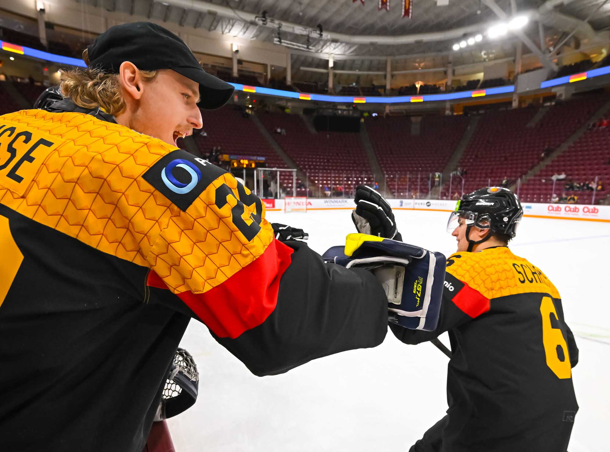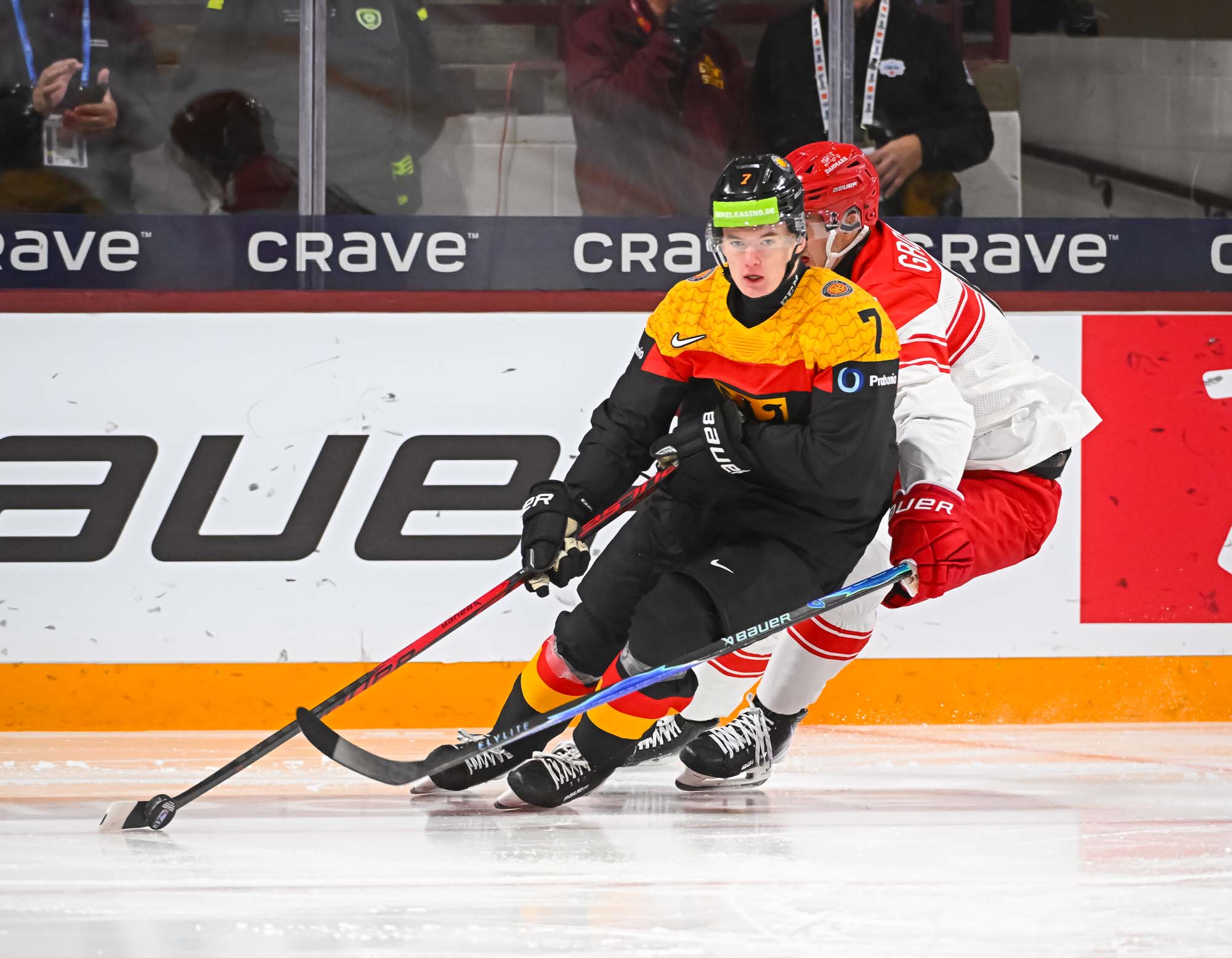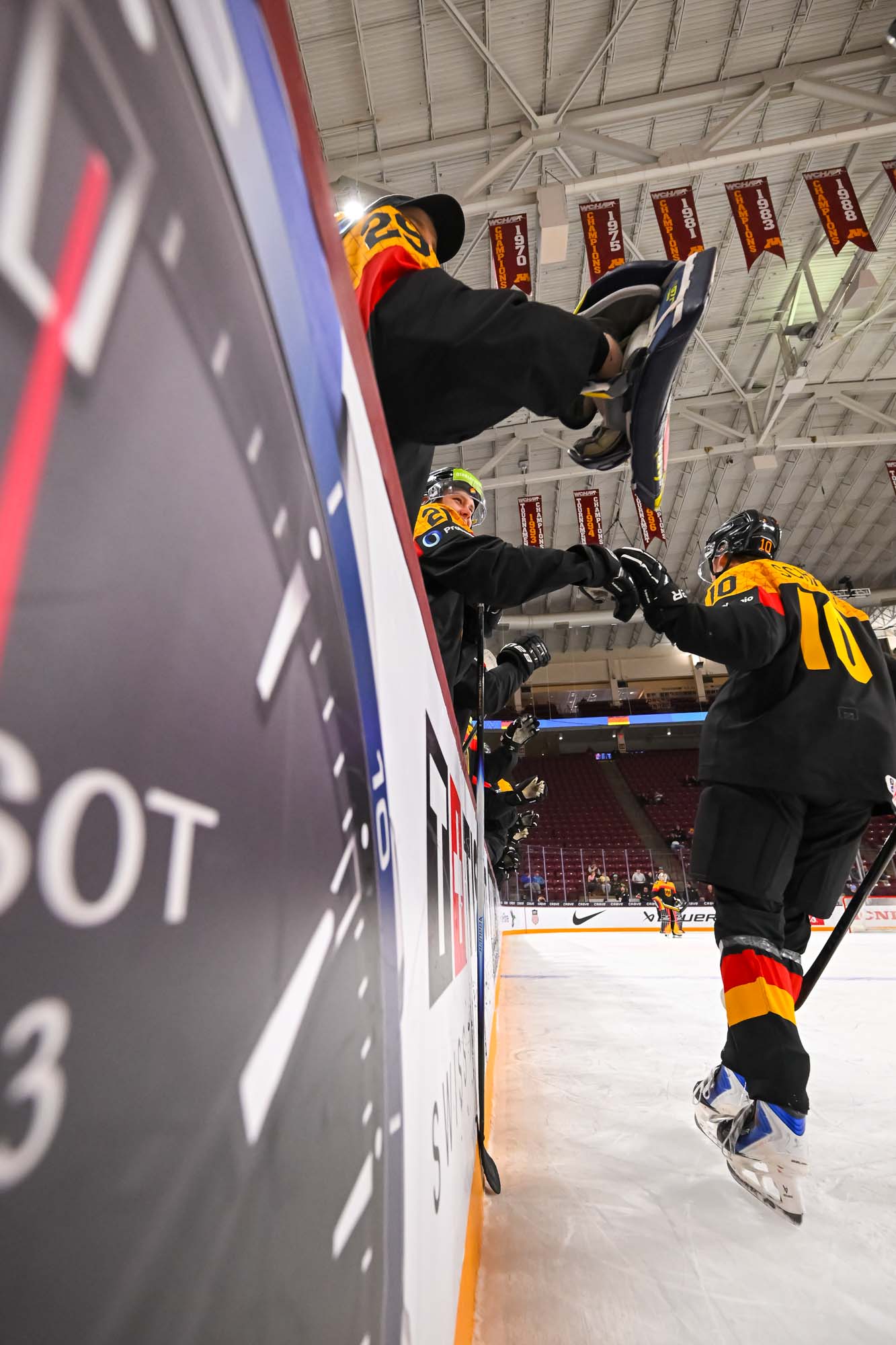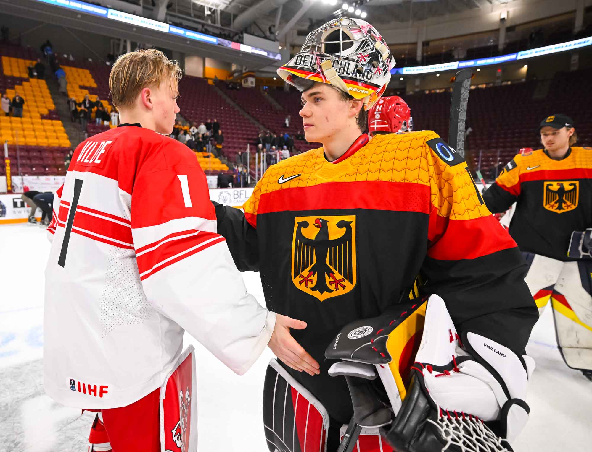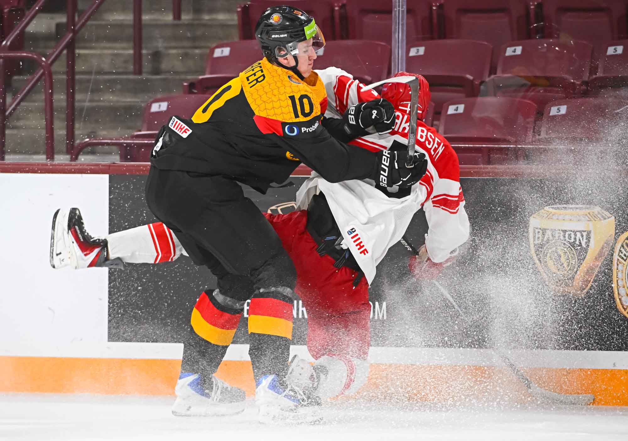 Schams got his second of the night off a long shot that fooled Wilde, but Anton Linde got one back for the Danes a minute later. He took a pass from Martinus Schioldan and made no mistake from in close. However, another penalty and another power-play goal for the Germans put the game out of reach once and for all when Lenny Boos made it 7-4 with a short-side shot.
