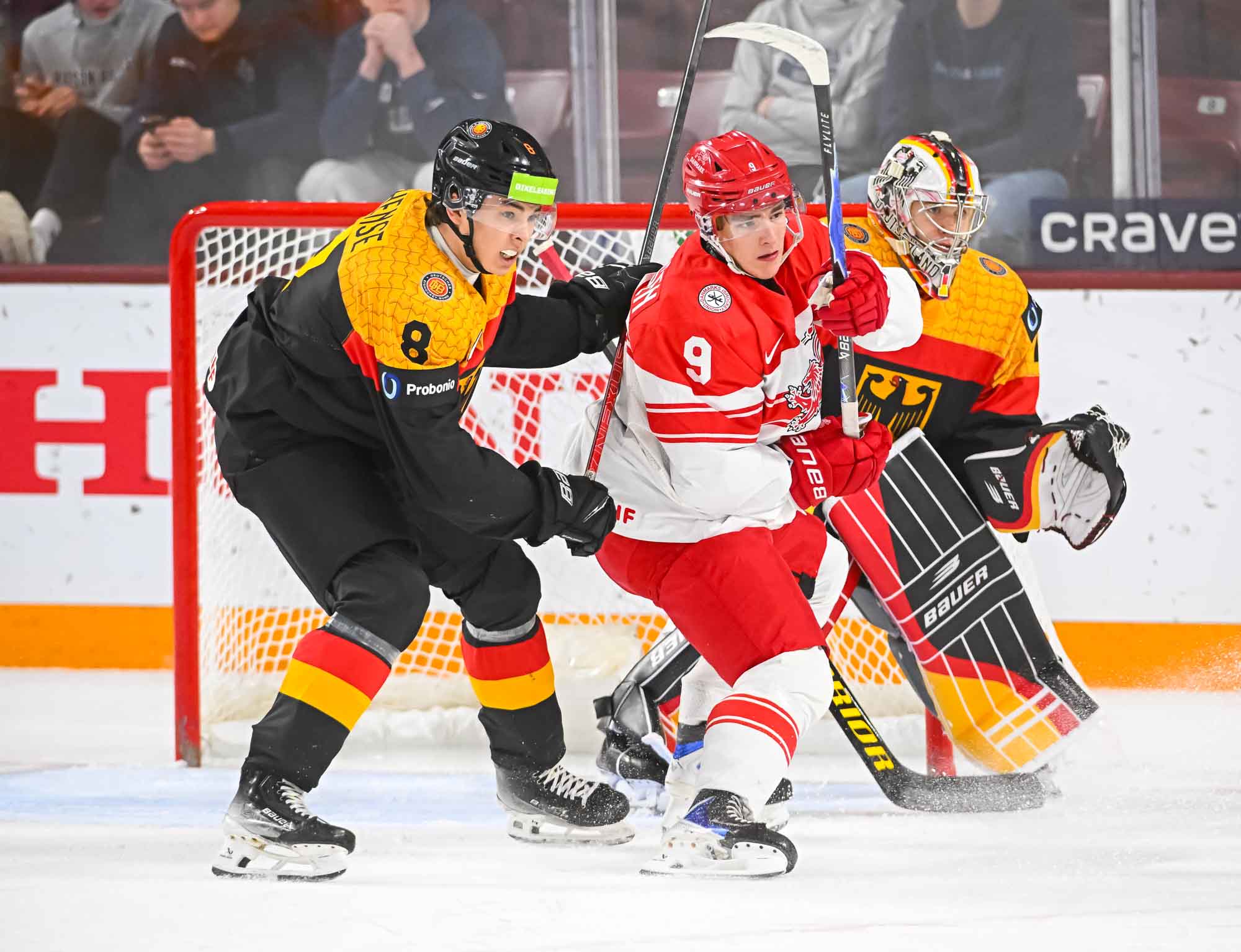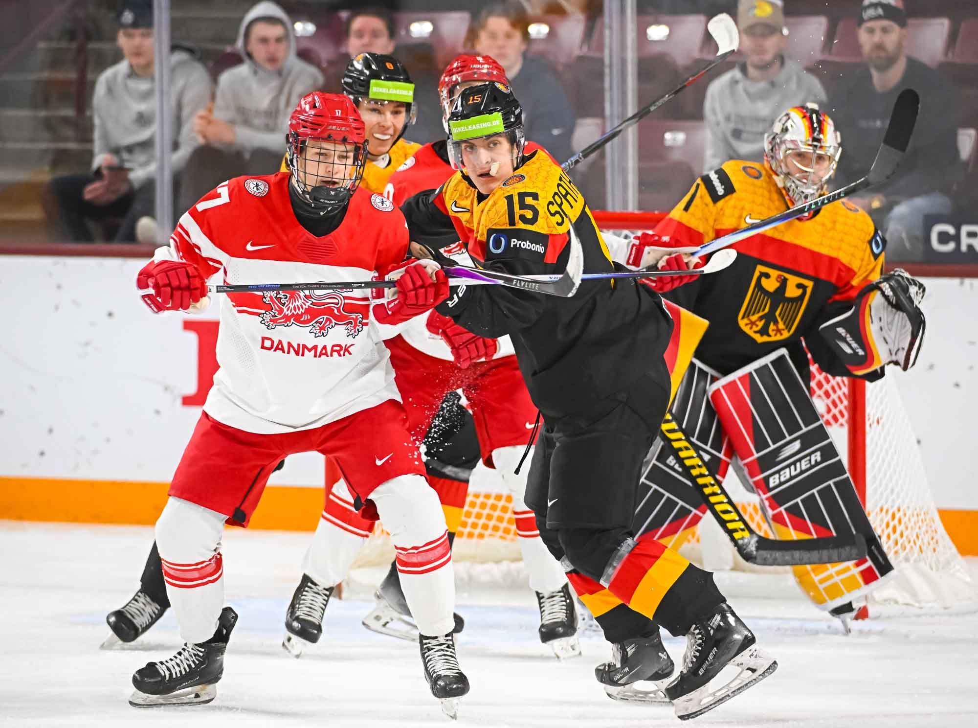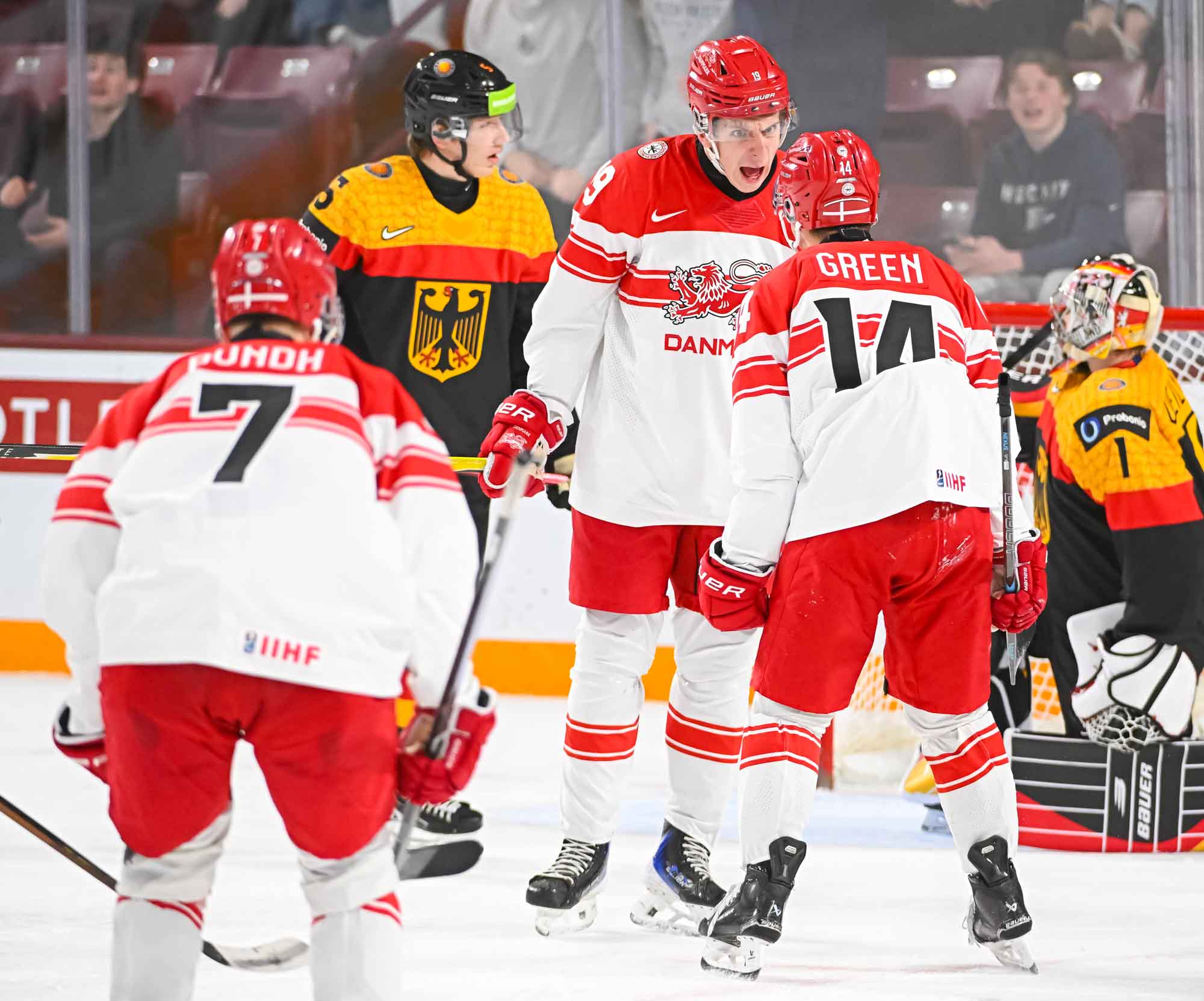 The result means Germany will be back in the top pool of the World Junior Championship next year while the Danes will be demoted to Division I-A. The Danes lost alll five games they played while Germany won only one, but it was the last one, the most important.