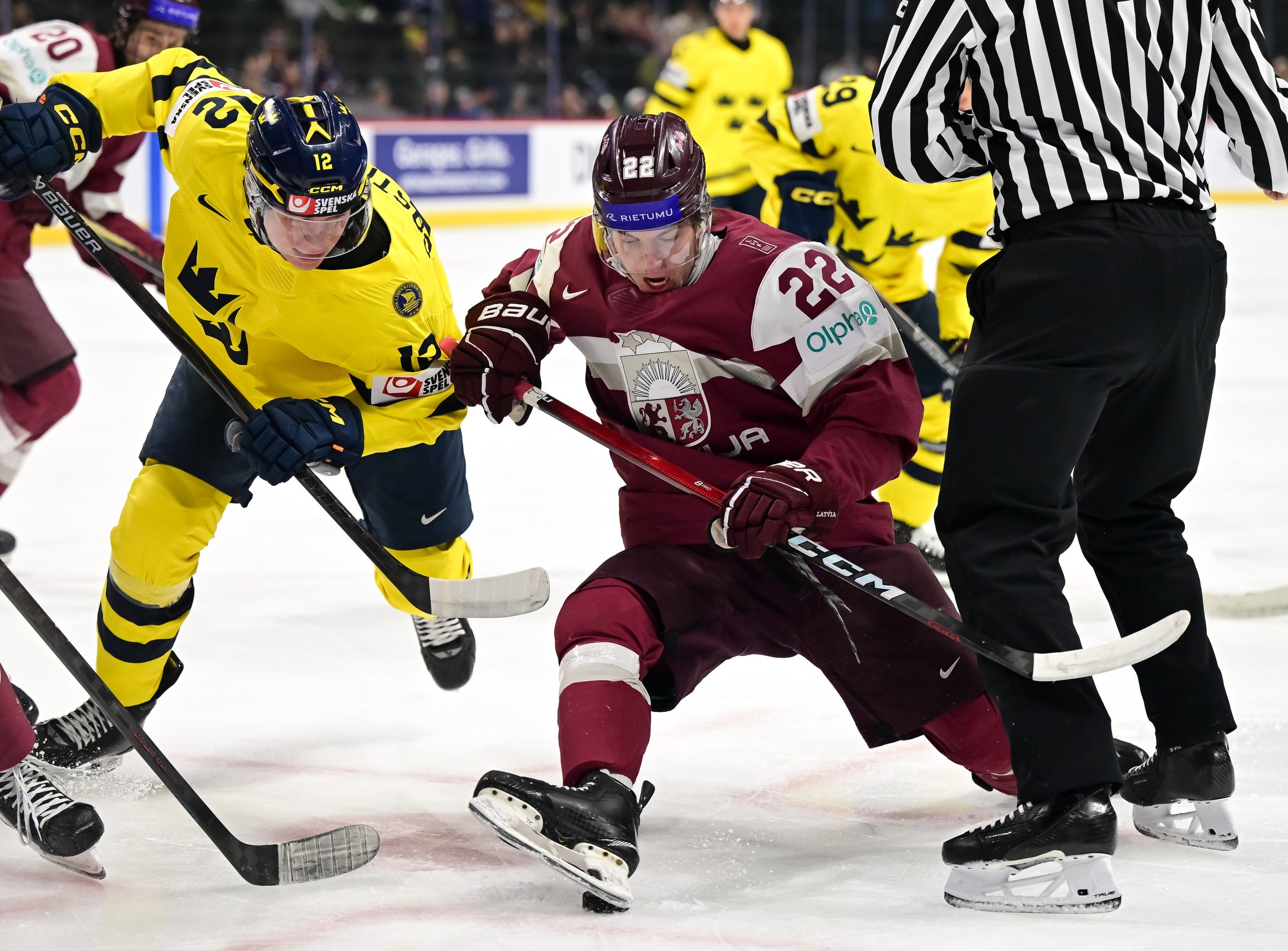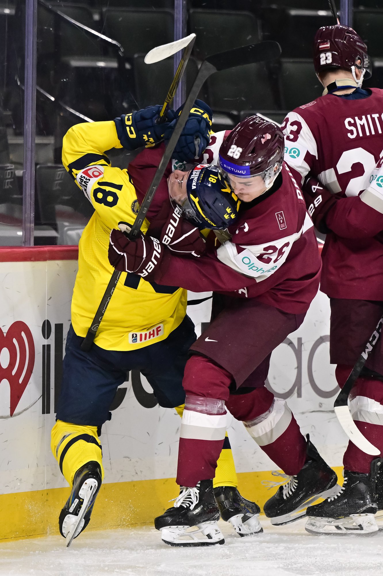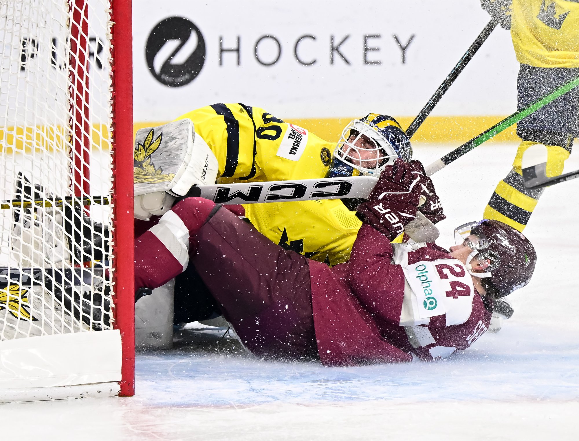 Sweden outshot Latvia 38-16. Swedish coach Magnus Havelid gave the nod to starter Love Harenstam in net, while Abols went with Nils Maurins.
