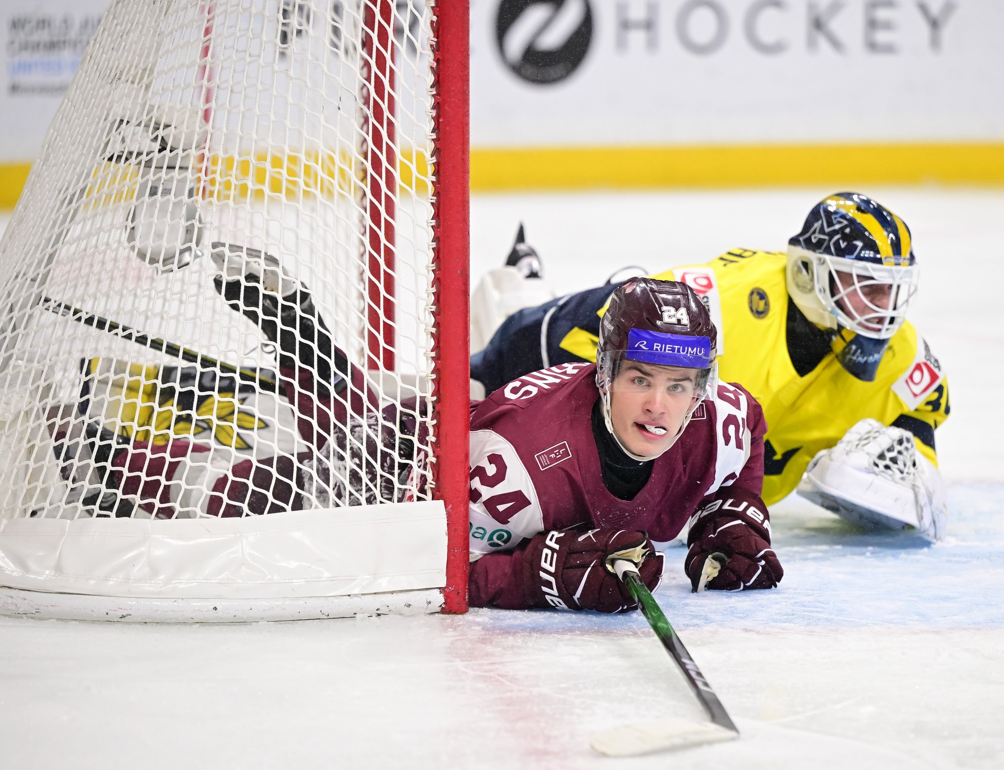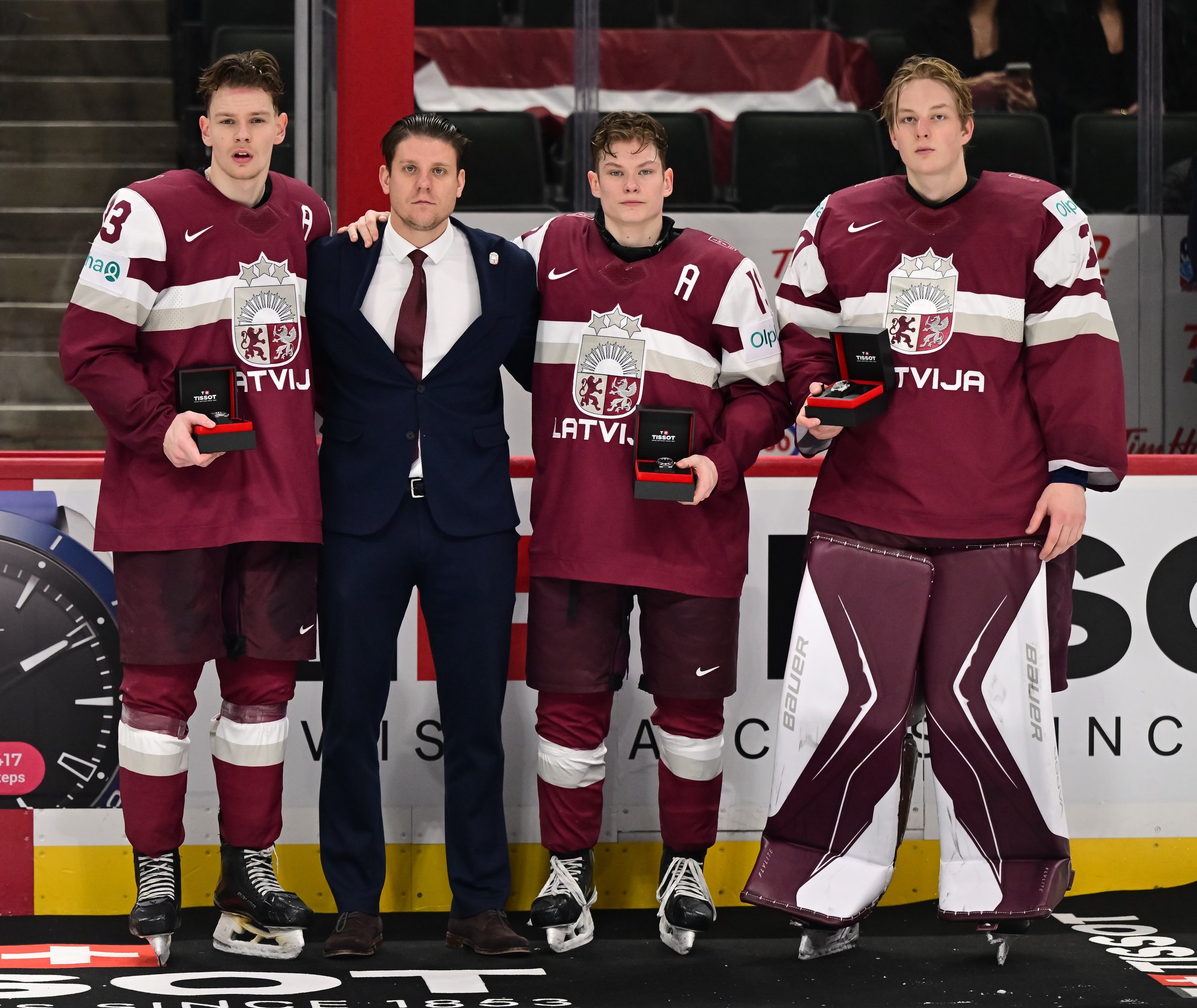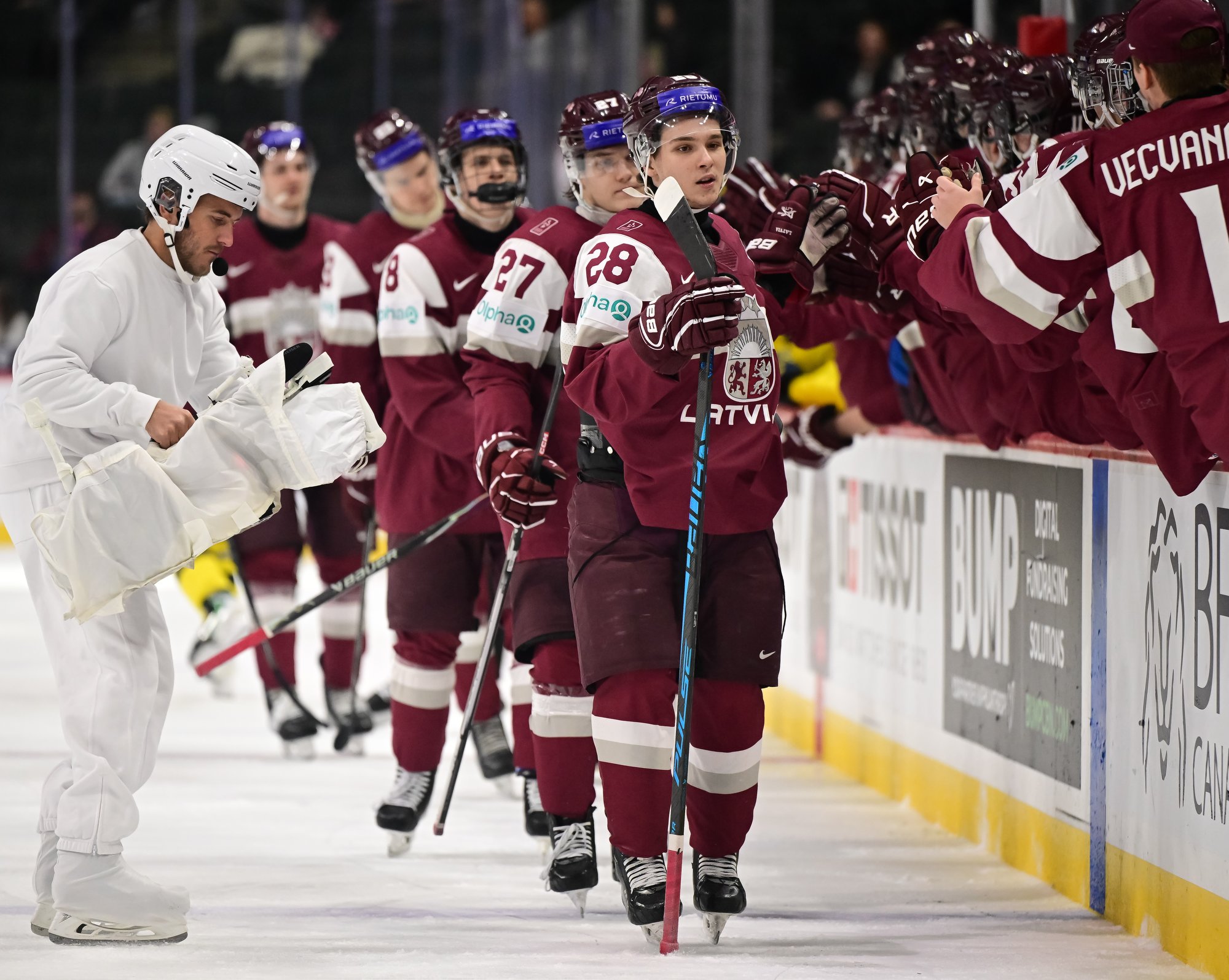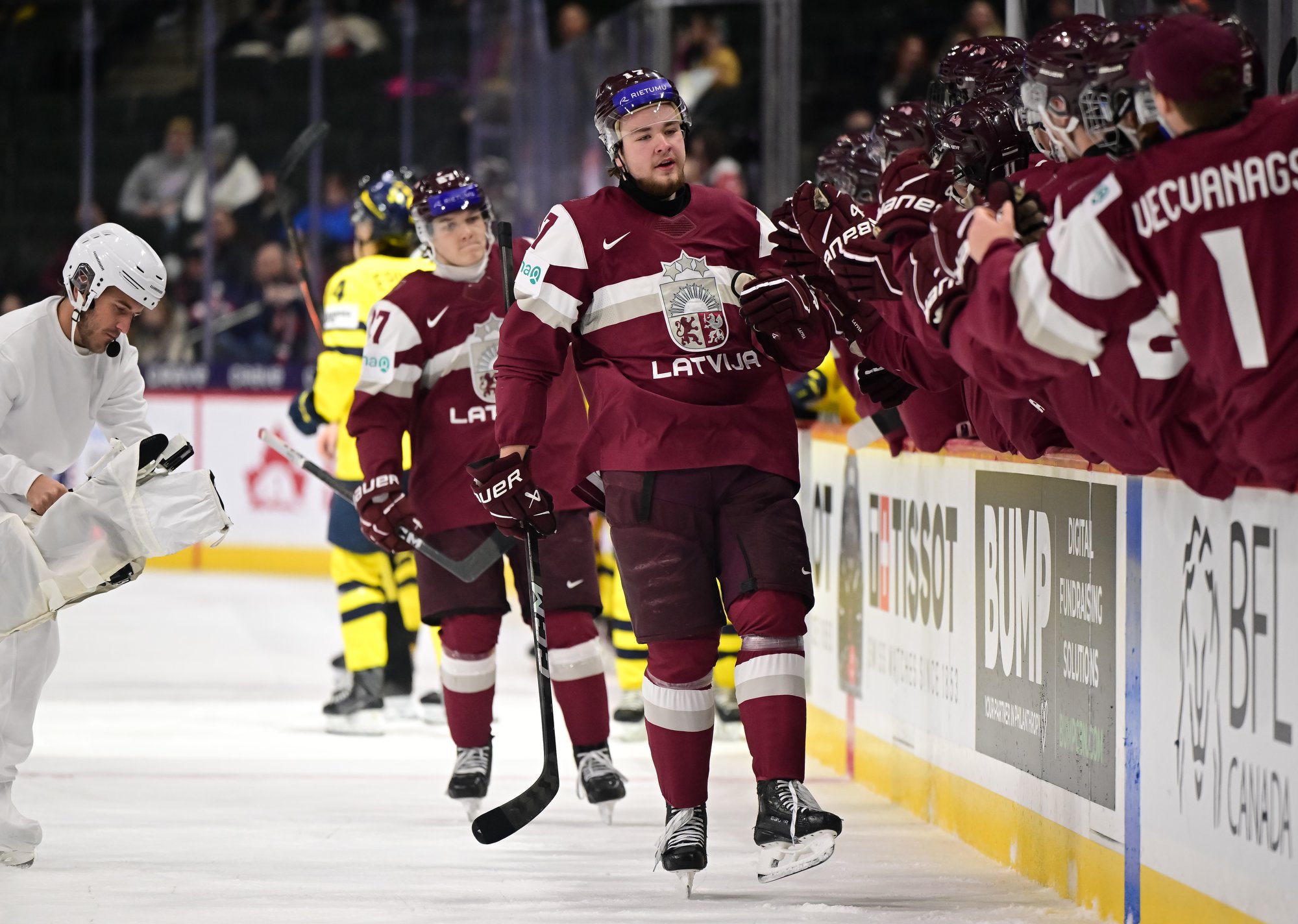 Kristers Ansons, Karlis Flugins, and Olivers Murnieks replied for Latvia. Brunos Osmanis assisted on both Latvian power play goals.