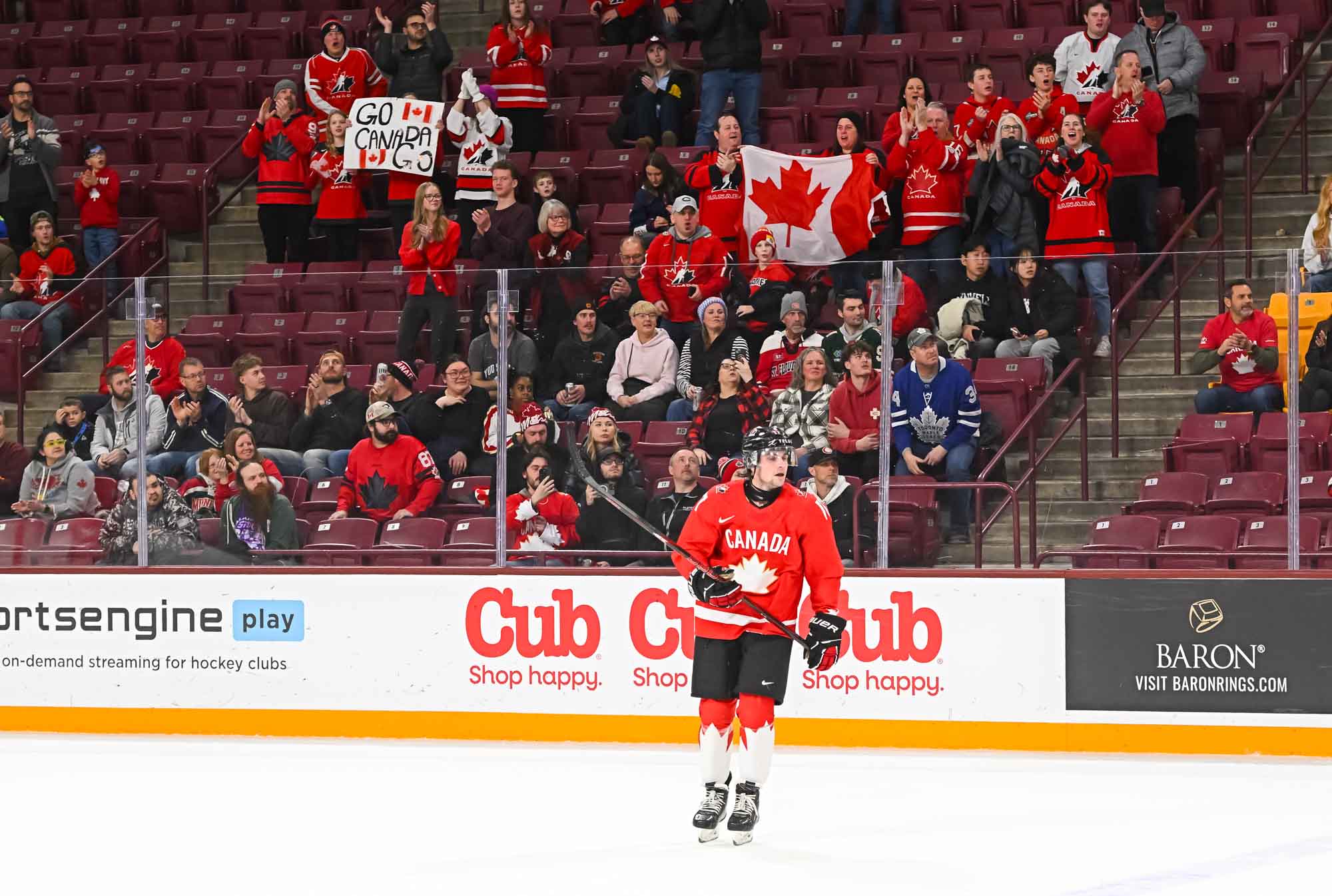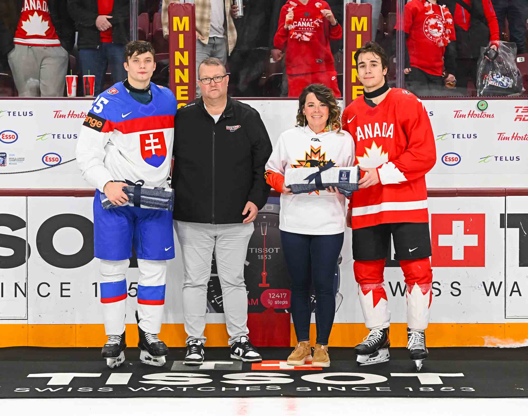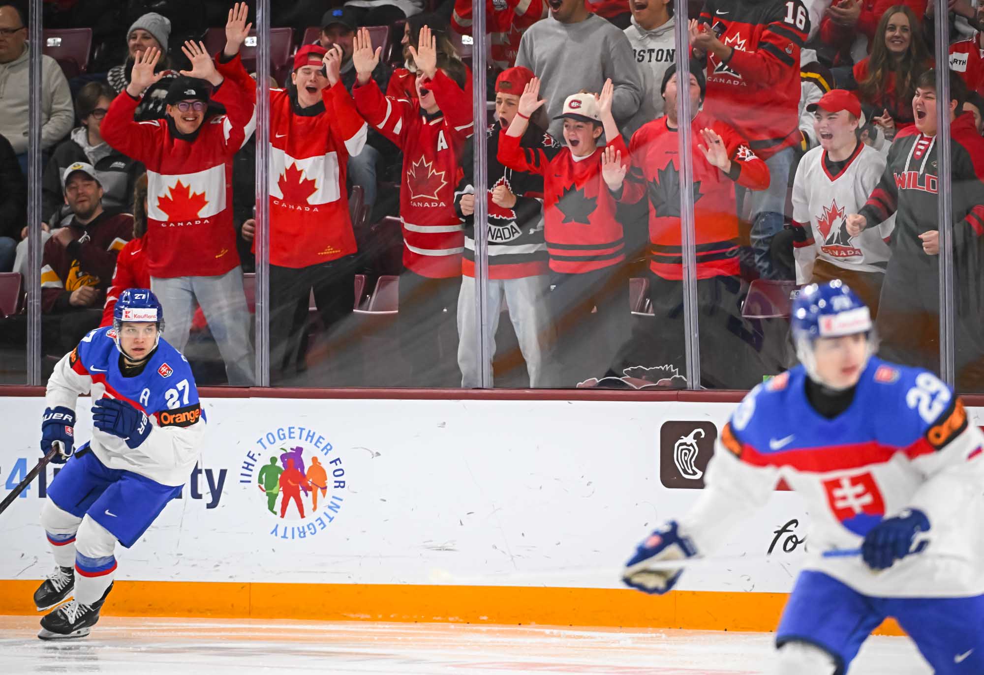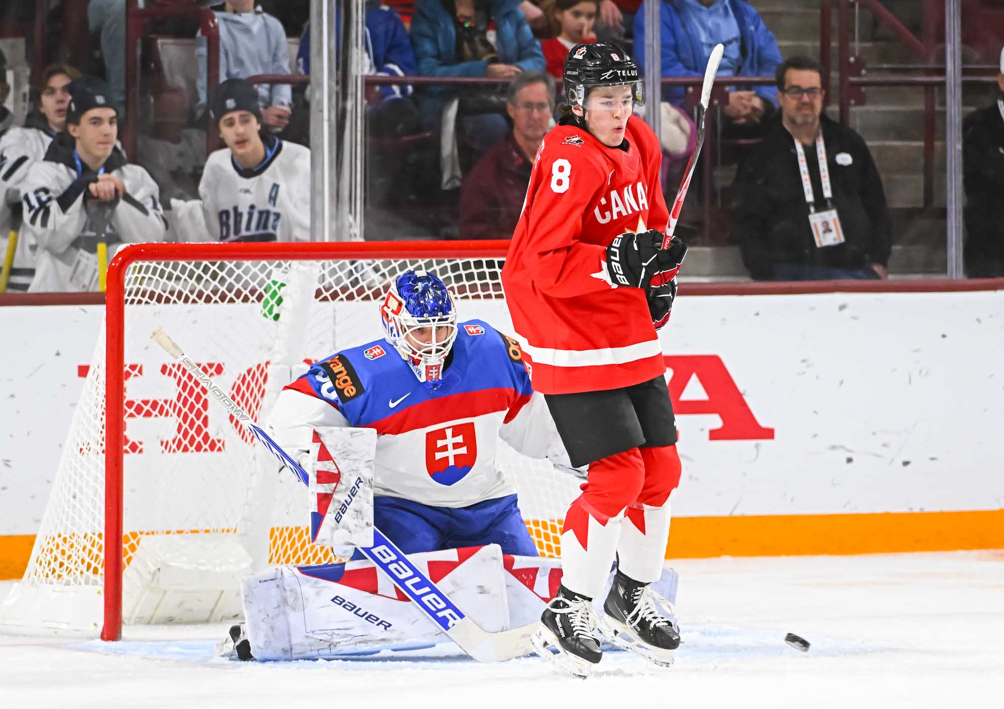 Then, in the dying seconds, Canada scored on the power play with 12.9 seconds remaining. The players whipped the puck around with impressive speed, and in the end Gavin McKenna found Brady Martin at the back door to make it an even 5-0 as a shell-shocked Slovakian team hurried to the dressing room to re-group.