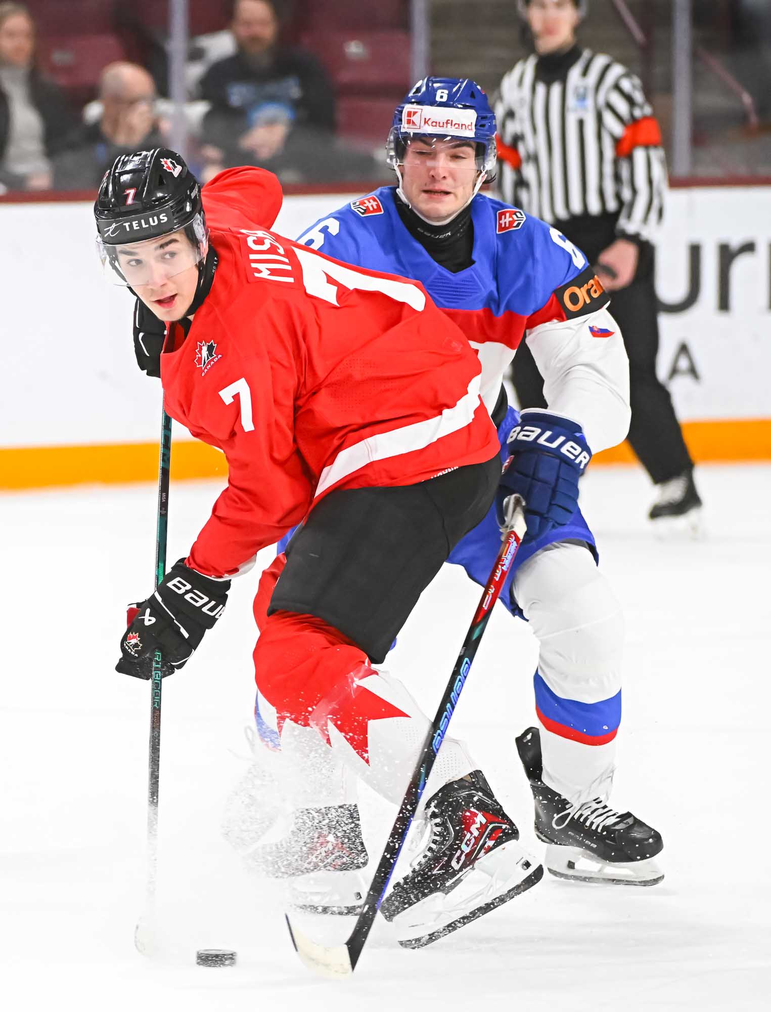 The Canadians took their foot off the gas briefly, and Slovakia sensed as much, producing their best couple of minutes of the game. They got some measure of satisfaction by breaking Jack Ivankovic’s shutout. Jan Chovan snapped a high shot from the slot at 16:50 to make it a 7-1 game.