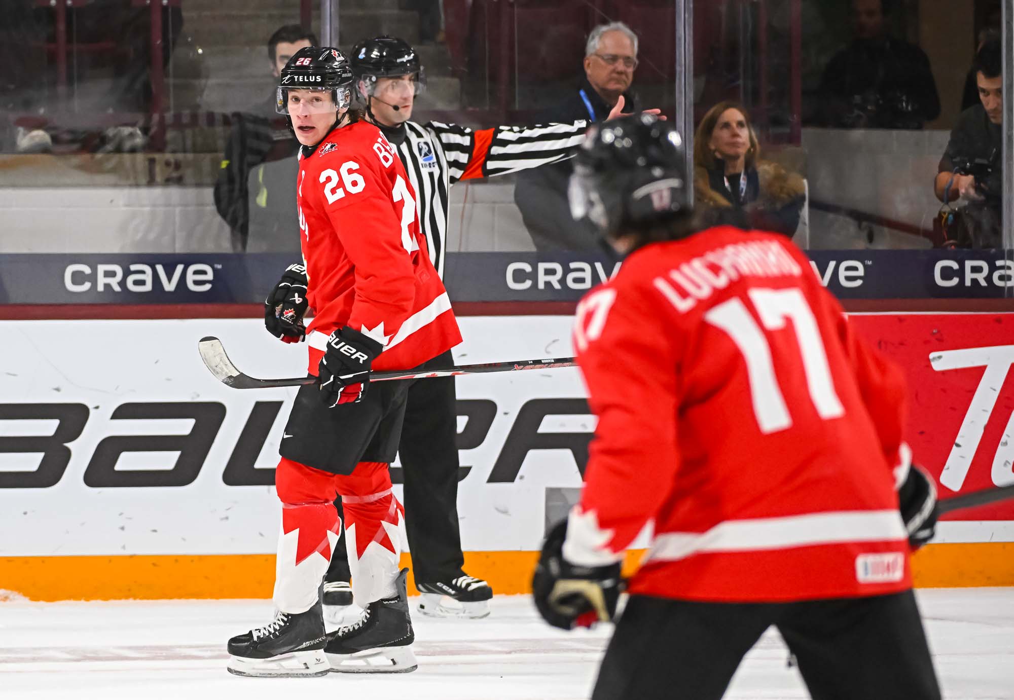 Just 44 seconds later, Canada struck again. Tij Iginla wired a shot from the left wing with Pradel deep in his net, giving Jarome’s son plenty of net to work with. Fast forward another minute and a half, and Michael Misa beat Pradel with a low shot through traffic.