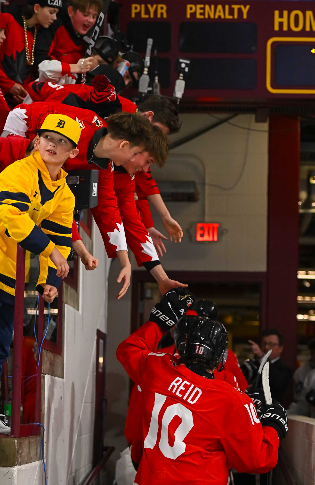 "We had a game plan and we stuck to it, and I think that's why we were able to get that big lead," said Canada's Cole Reschny. "Hockey is a game of momentum. We got one and then another, and we kept going and going and didn't let up at all."