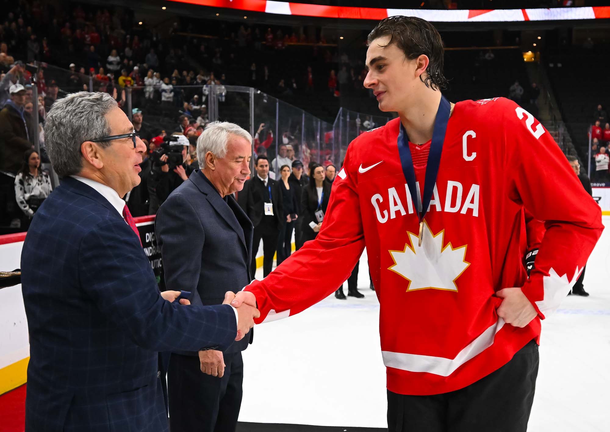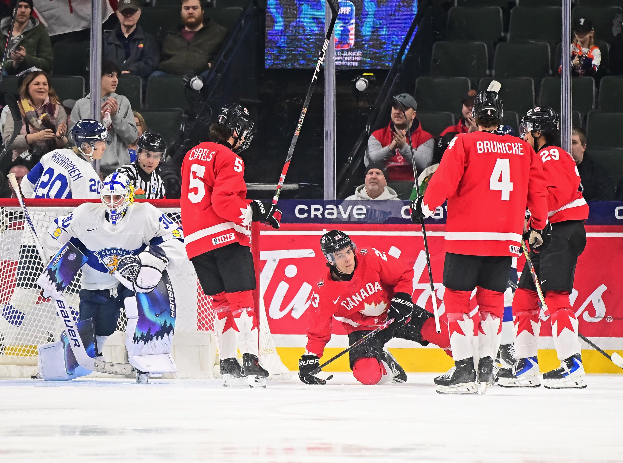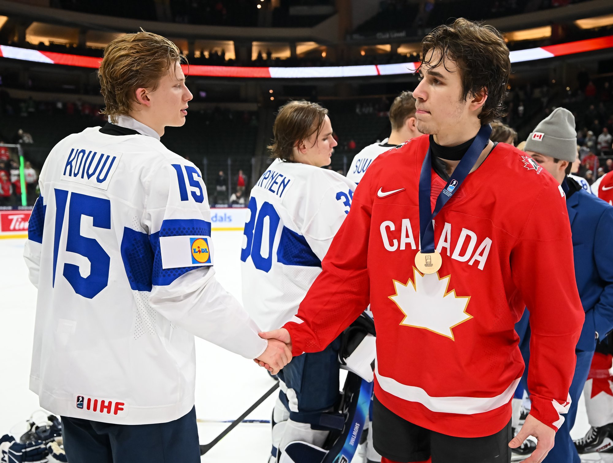 For Canada, Sam O'Reilly added a pair of goals, and Braeden Cootes and captain Porter Martone also scored. McKenna scored Canada's last goal here in Minnesota.