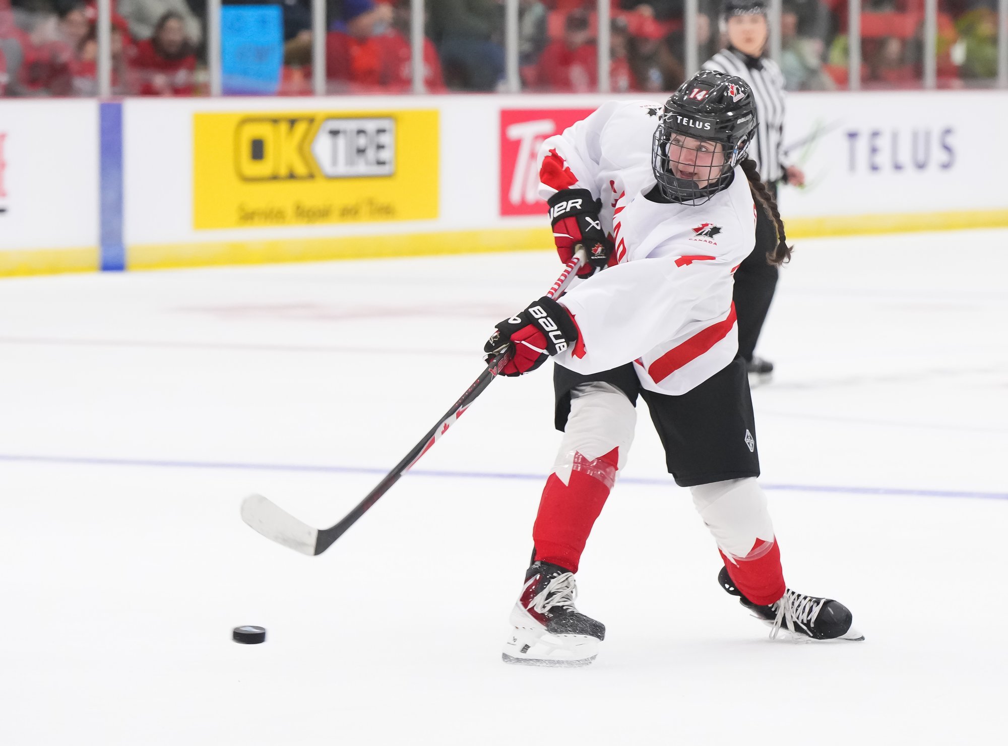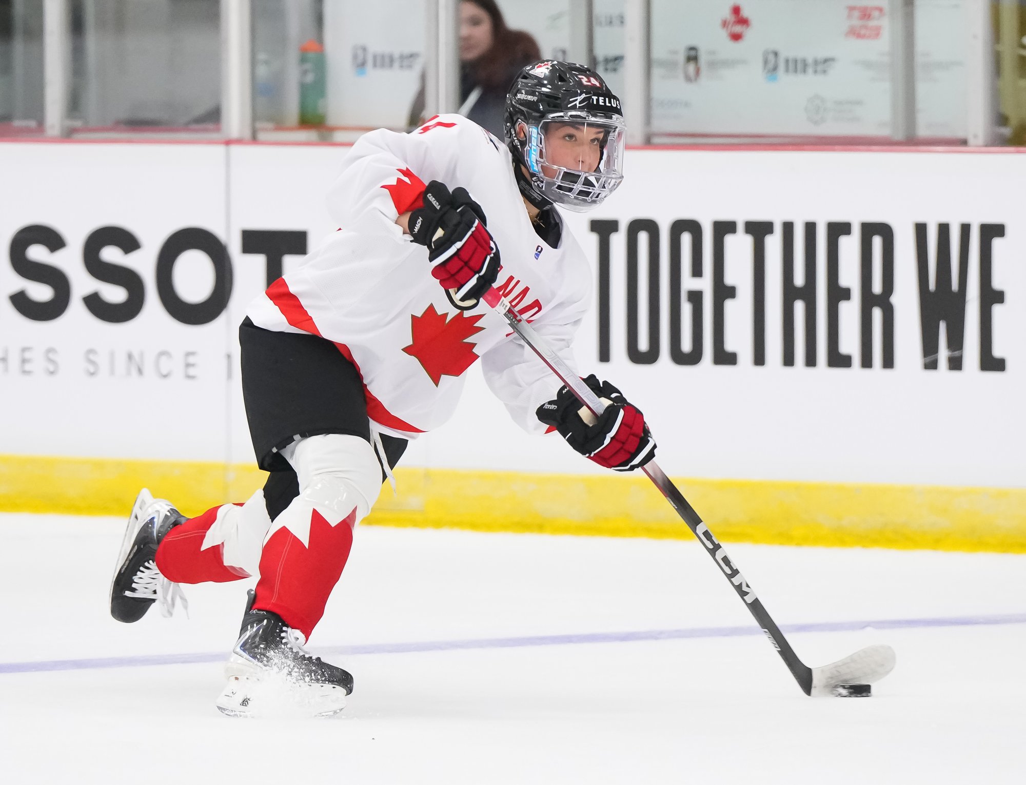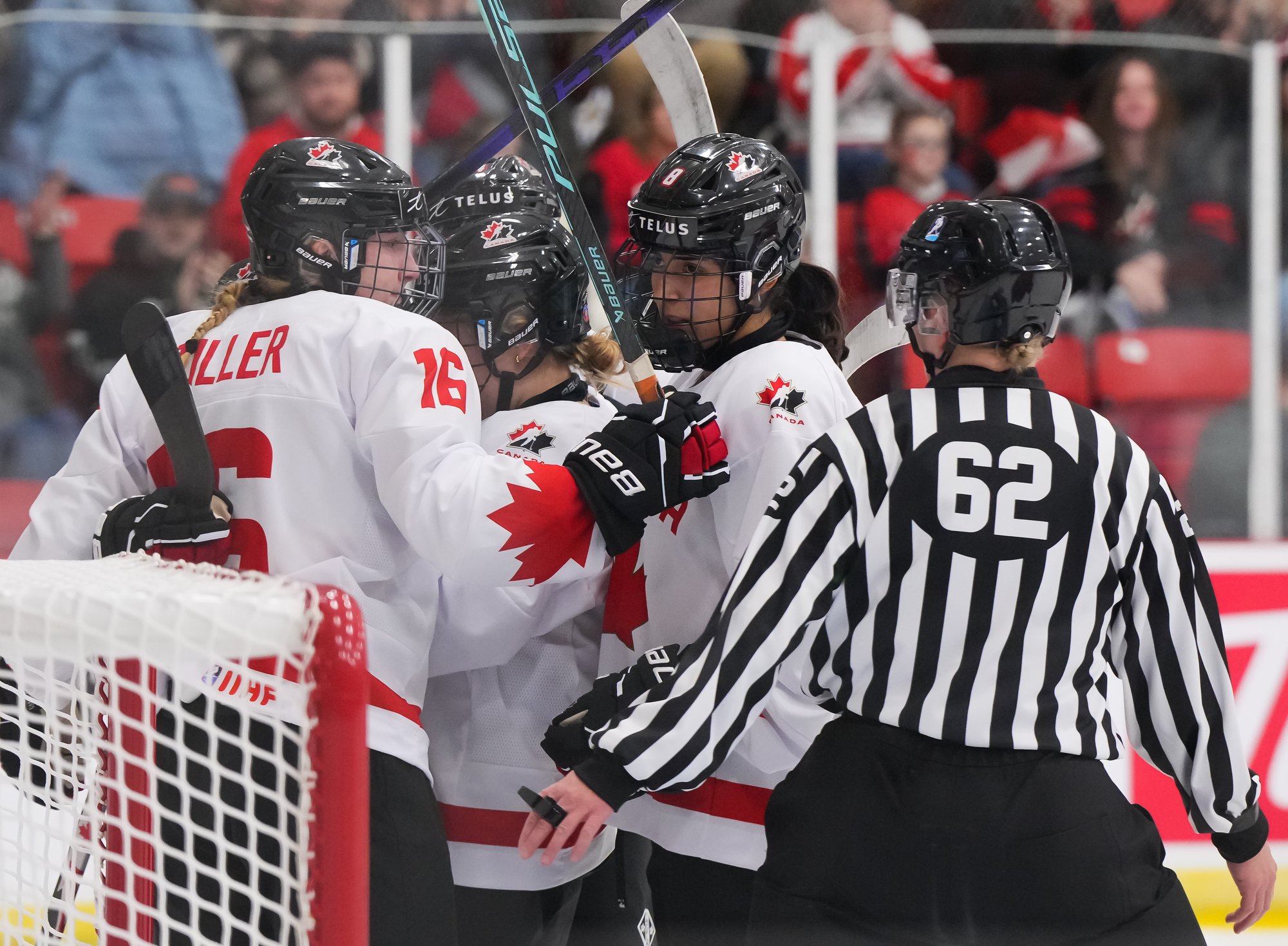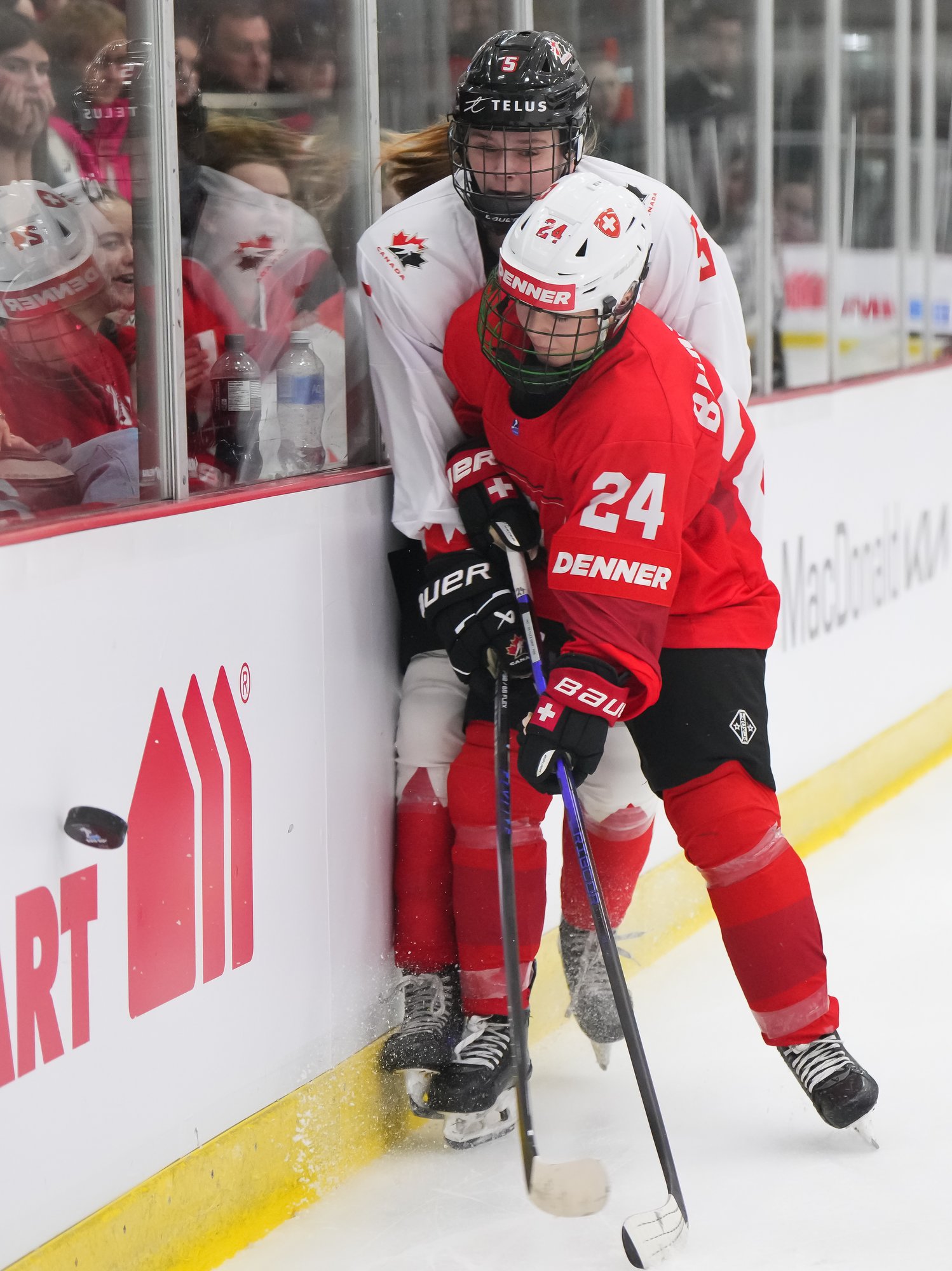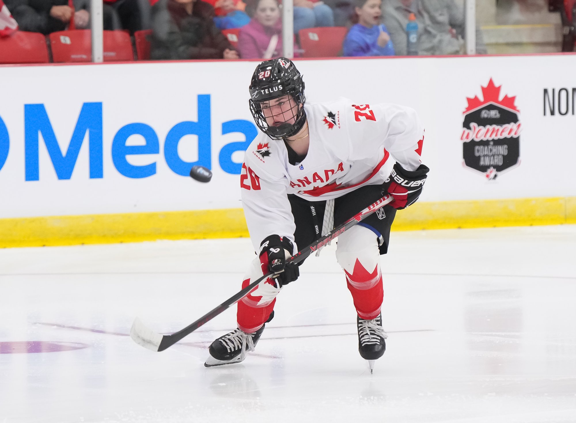 It was a sea of red and white on the ice and in the stands at the Sport and Wellness Centre in Membertou, Nova Scotia as Canada started its gold-medal defense at the 2026 U18 Women’s World Championship with a convincing 9-0 win over Switzerland to close out Day 1 of round-robin action.
