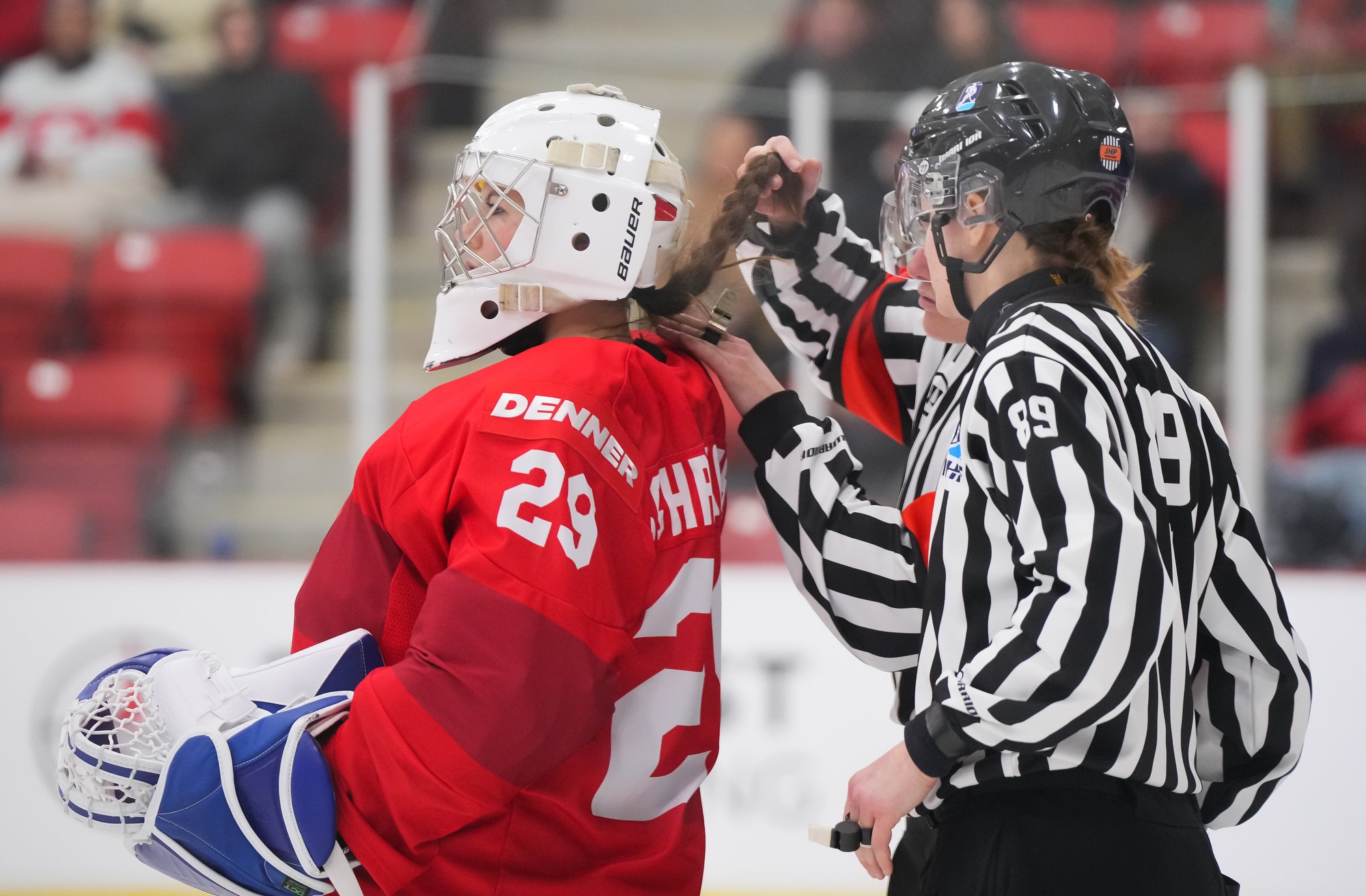 For the Swiss, Anne-Eugenie Gendre was replaced by Norina Schrupkowski after giving up four goals on 13 shots through the first 12:08 of the game. Schrupkowski allowed five goals on 38 shots over the final 47:52.