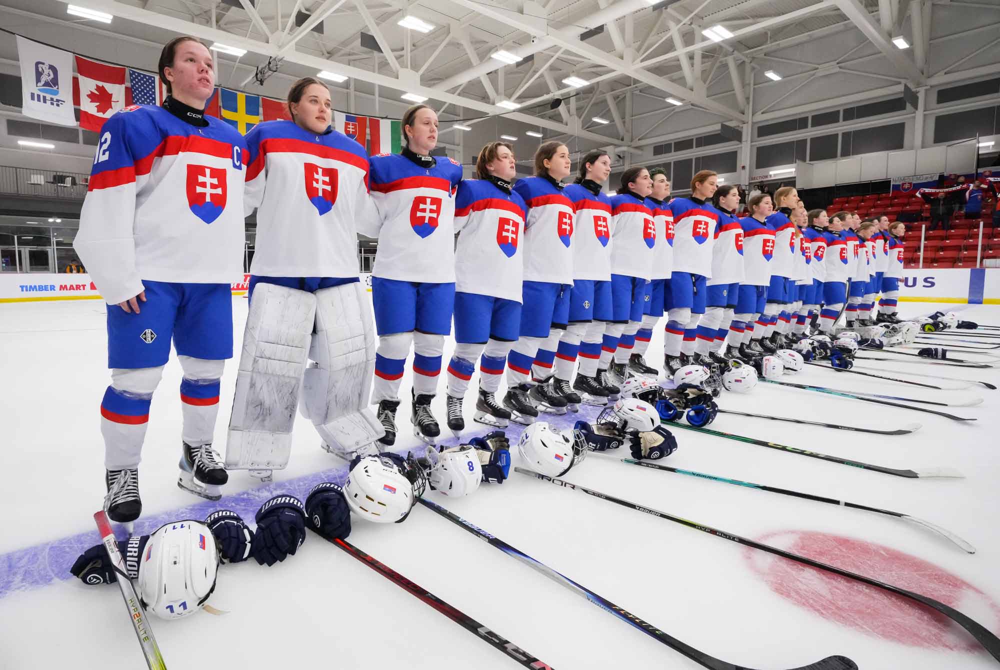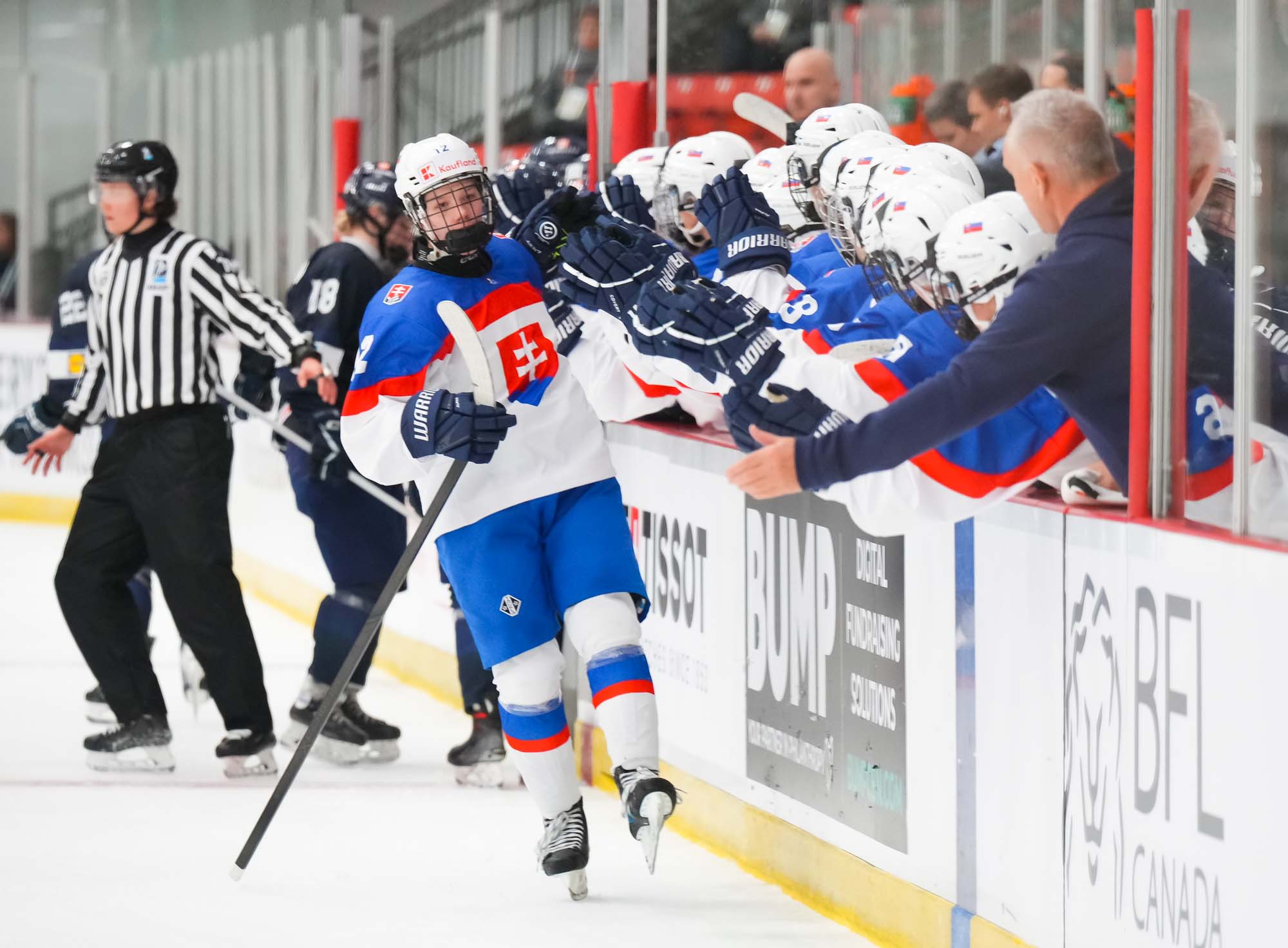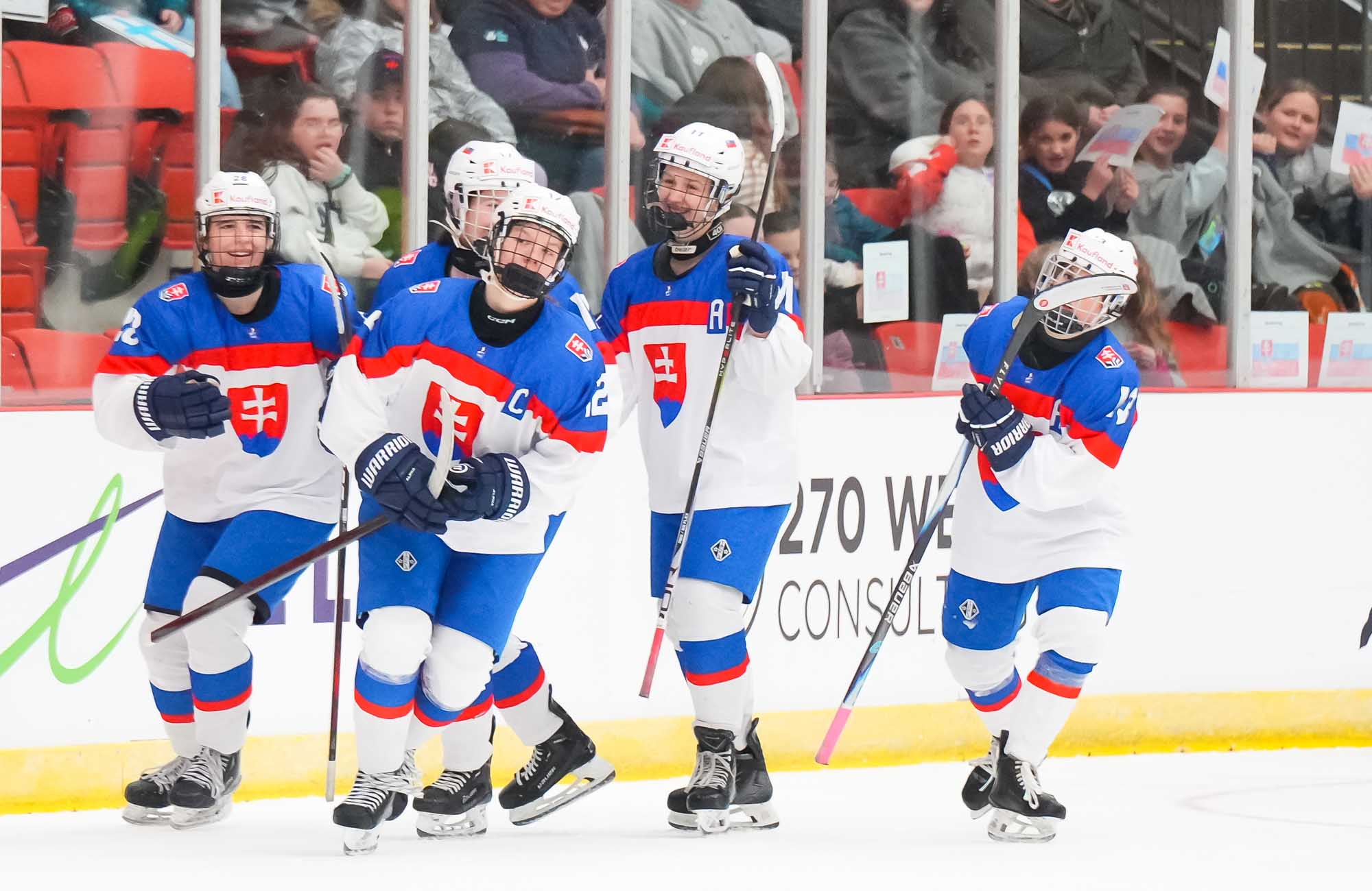 After the Slovak national anthem played at the game's conclusion, the players formed a line in front of their small-but-mighty cheering section that had been banging their drums and sounding their horns from start to finish in the team's first two games. After acknowledging their supporters, the players dove as one toward the boards, bringing their fans into their historic celebration.