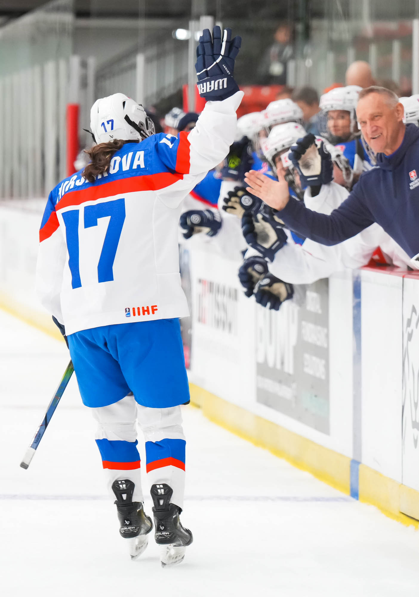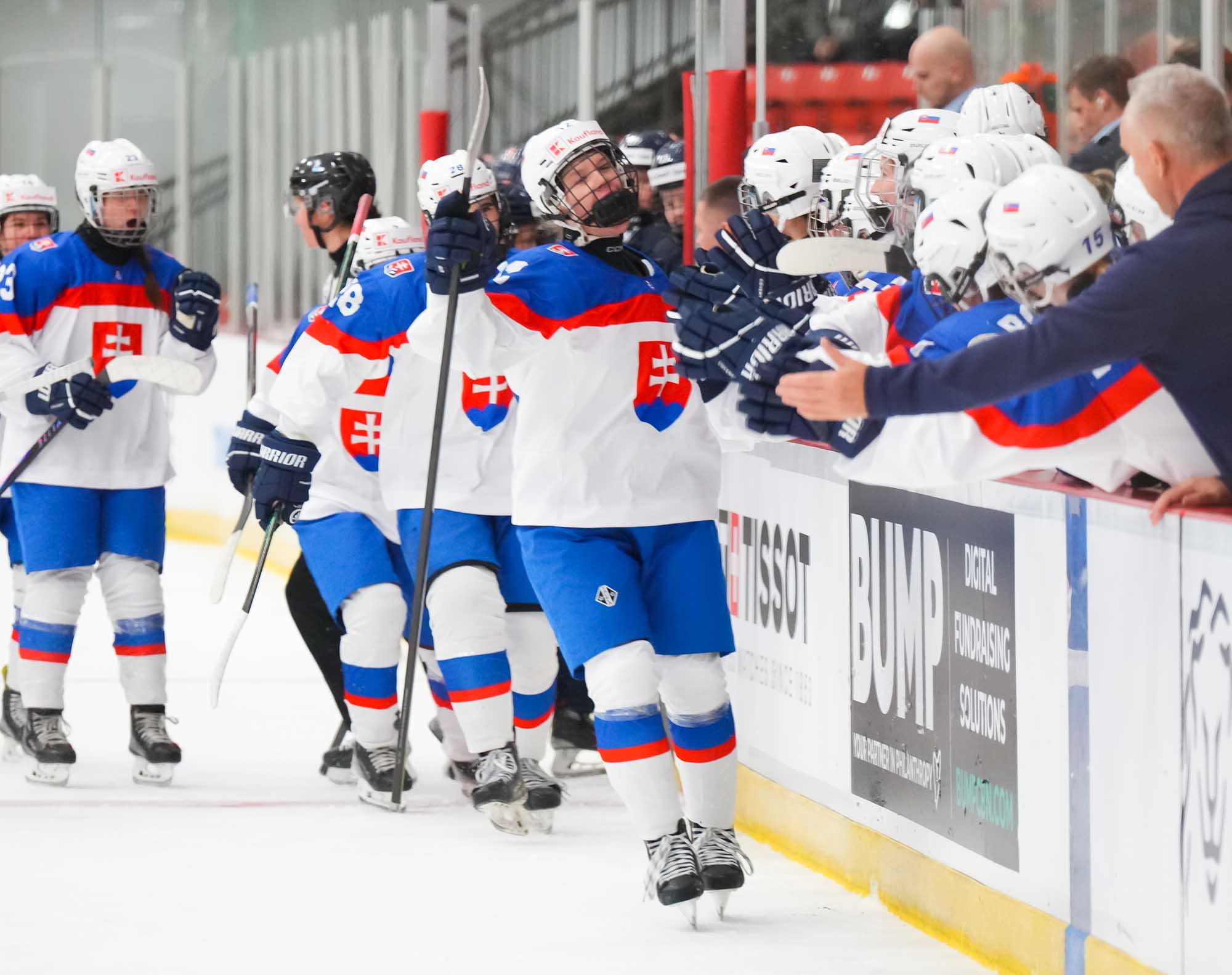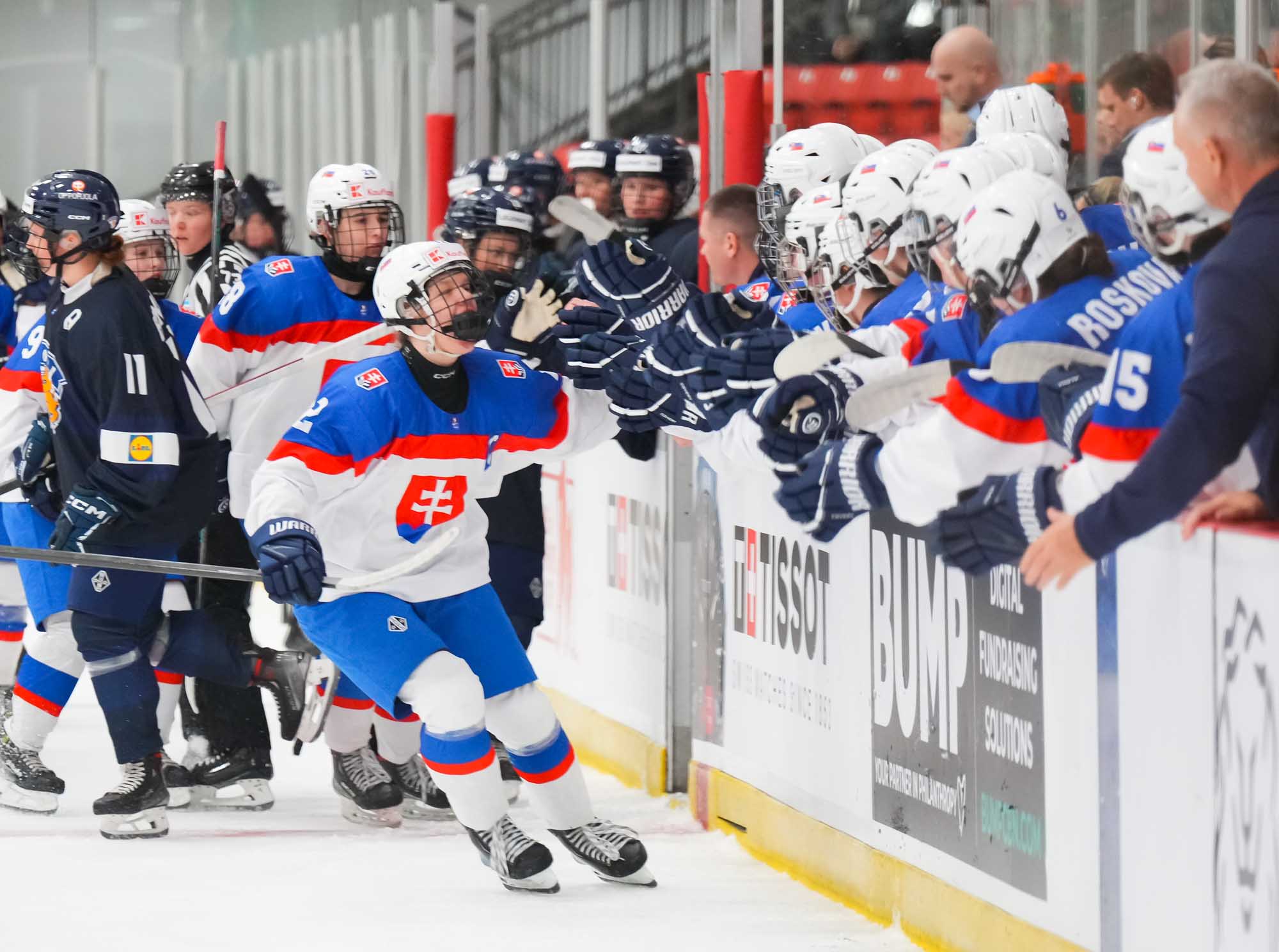 After the Slovak national anthem played at the game's conclusion, the players formed a line in front of their small-but-mighty cheering section that had been banging their drums and sounding their horns from start to finish in the team's first two games. After acknowledging their supporters, the players dove as one toward the boards, bringing their fans into their historic celebration.