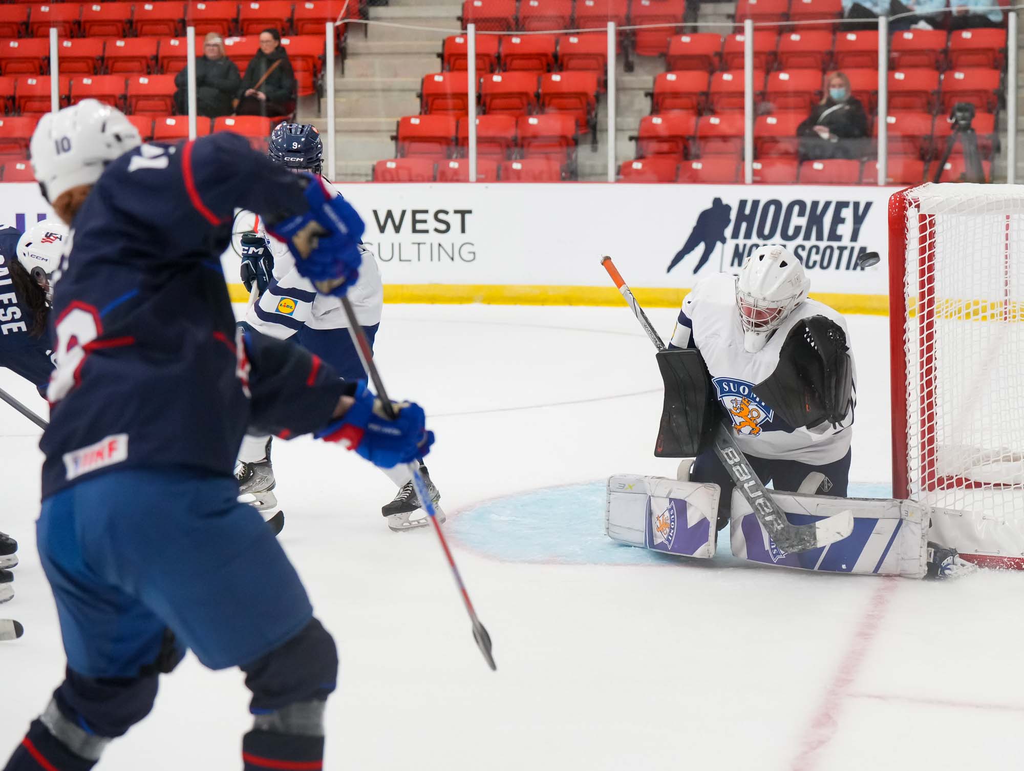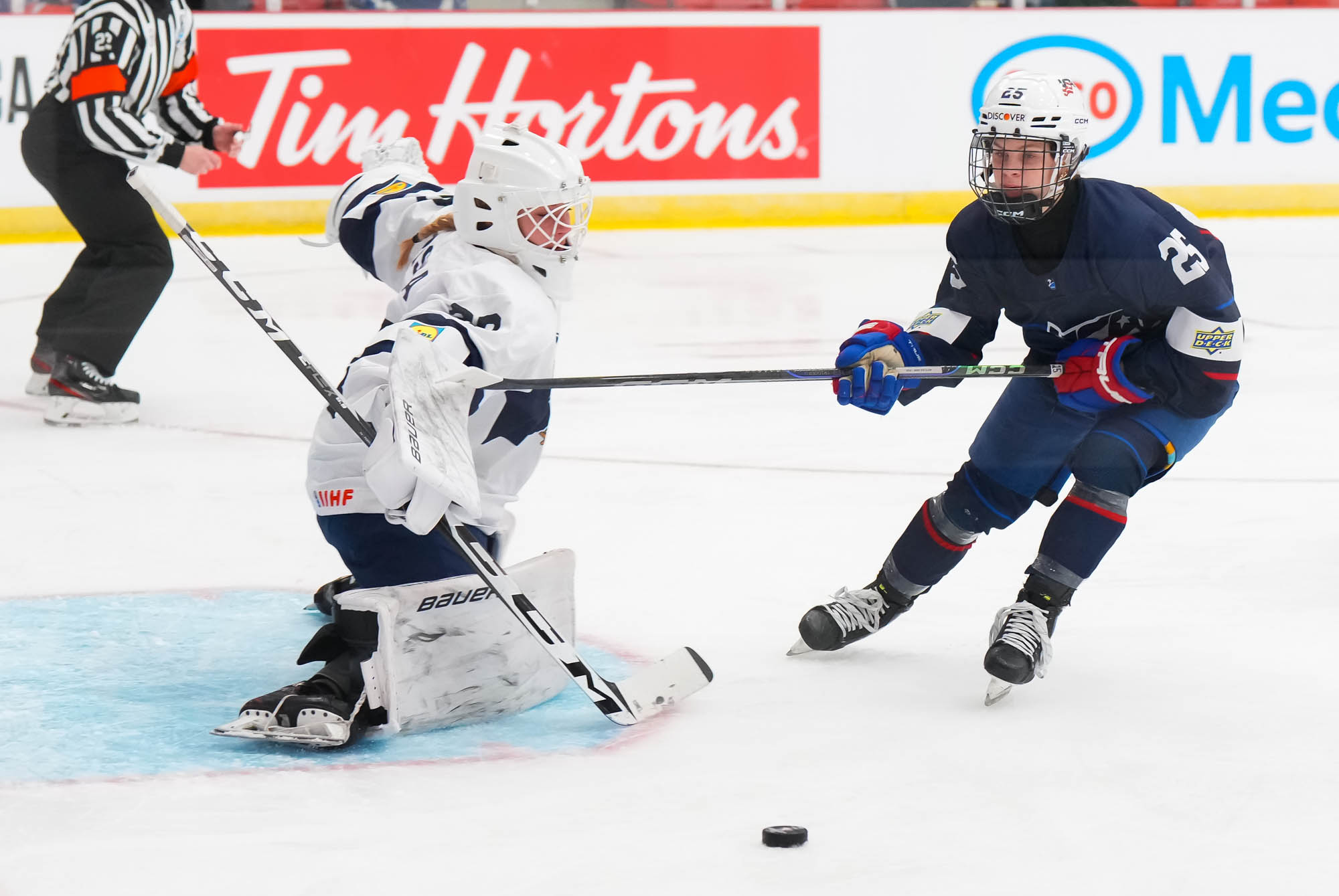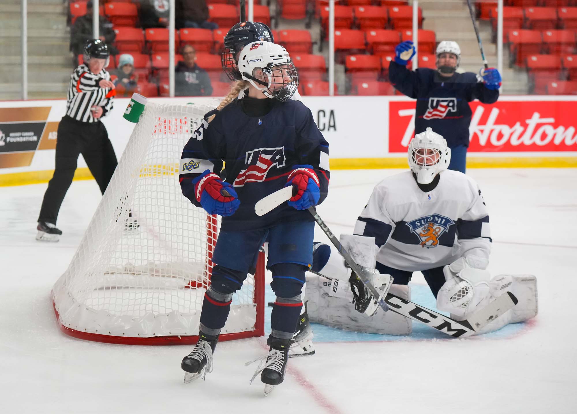 Seven minutes later, they added to their tally. Alaina Gnetz cut in on her off wing and barrelled past Viivi-Maija Ruonakoski before getting off a quick shot that surprised the goalie. And then, the U.S. added three late goals, two coming just eleven seconds apart.