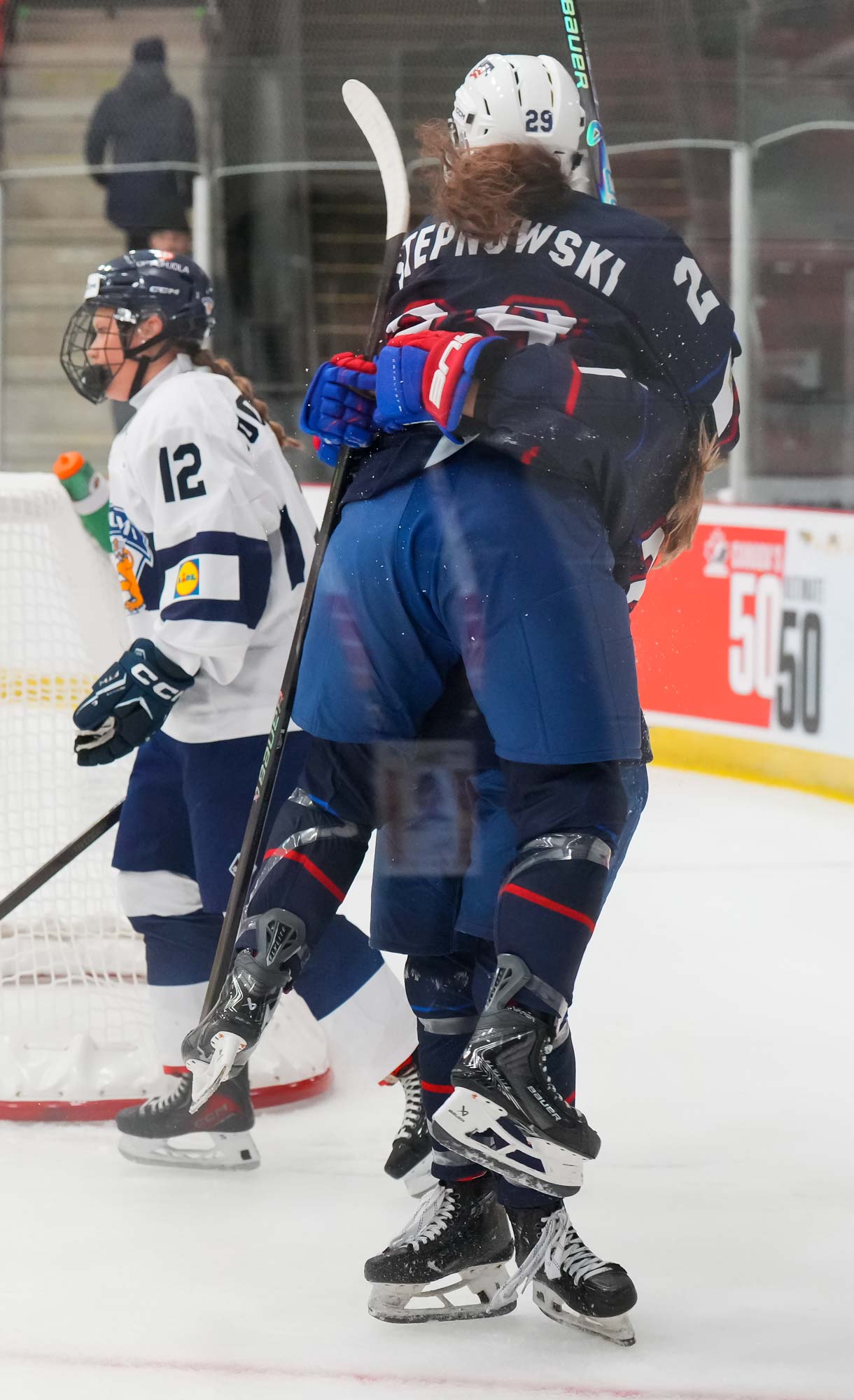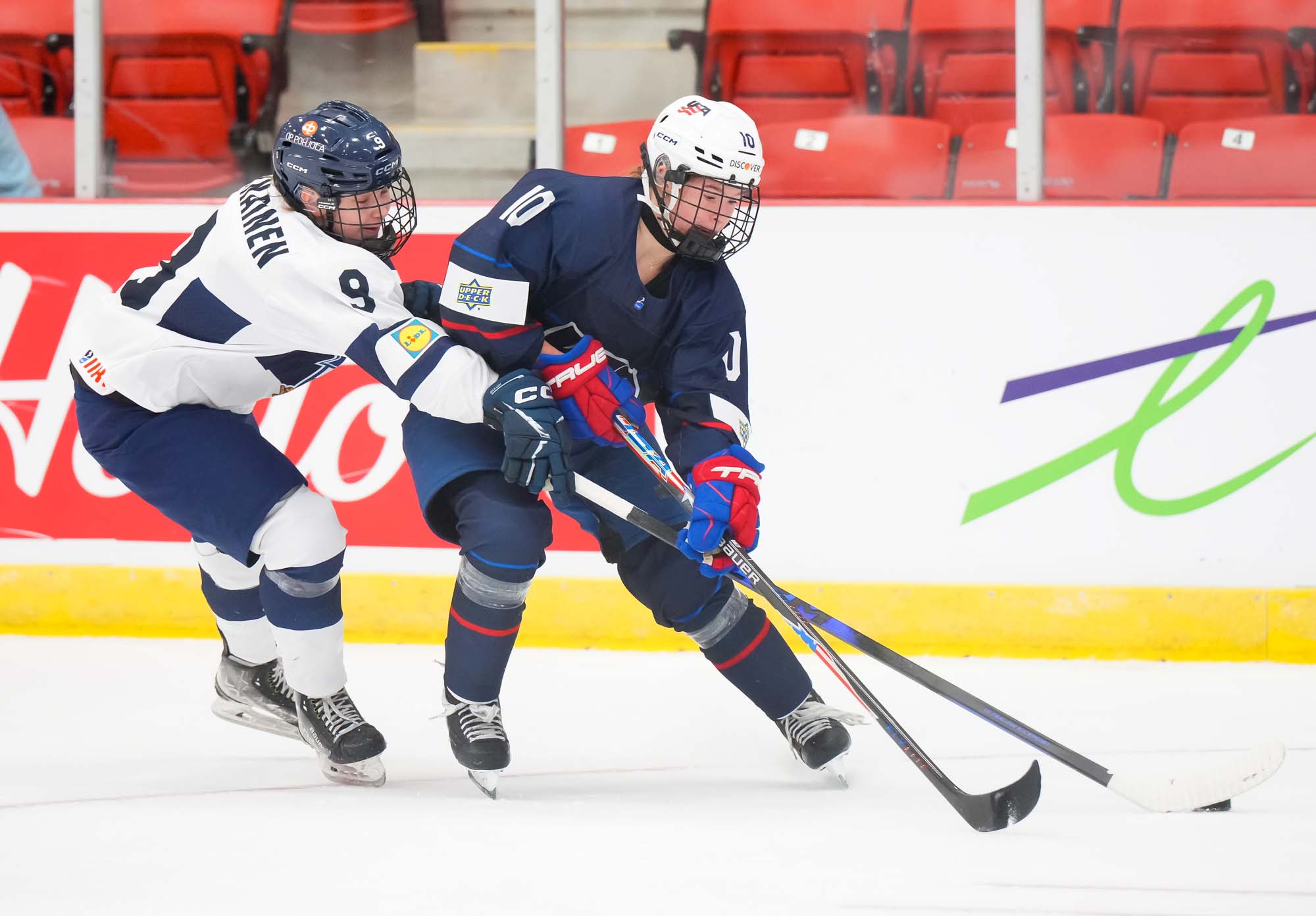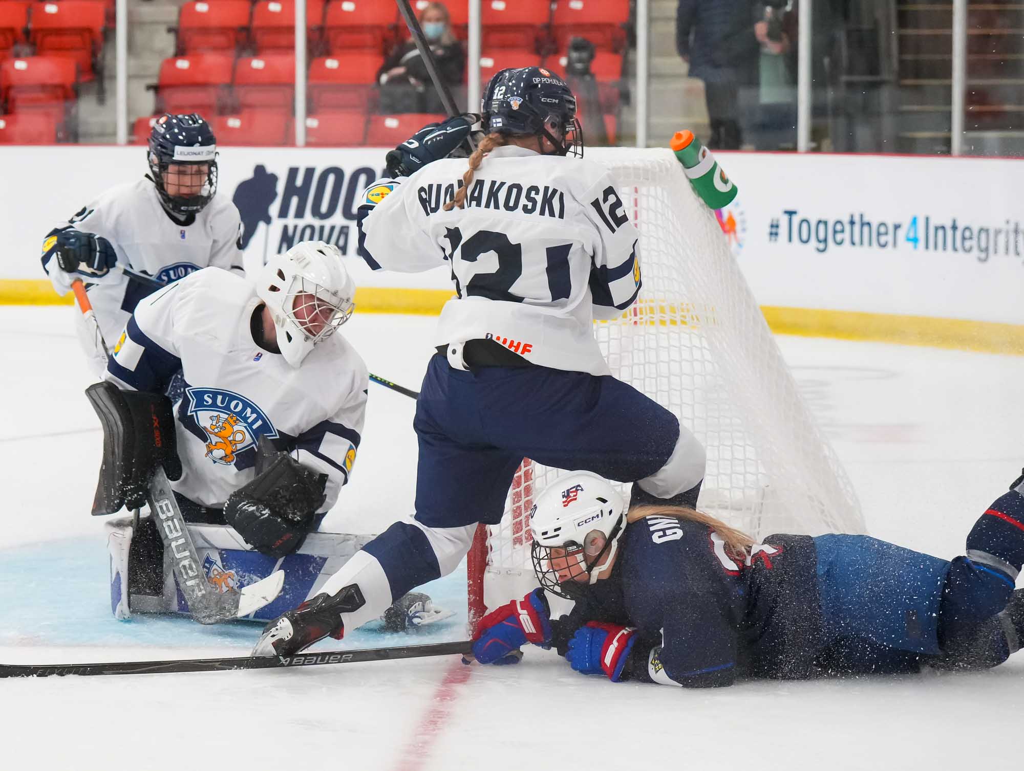 Seven minutes later, they added to their tally. Alaina Gnetz cut in on her off wing and barrelled past Viivi-Maija Ruonakoski before getting off a quick shot that surprised the goalie. And then, the U.S. added three late goals, two coming just eleven seconds apart.