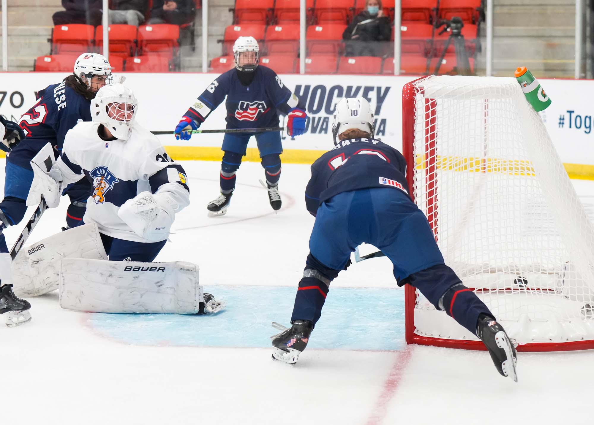 Later, the U.S. got a proper play-play goal off a sharp-angle shot by Talla Hansen, making it 9-0. In the third, the domination continued and Finland struggled to get the puck out of their own end and gain possession for any length of time. Gnetz added to the tally midway through on a scramble in front, bringing the score into double digits.