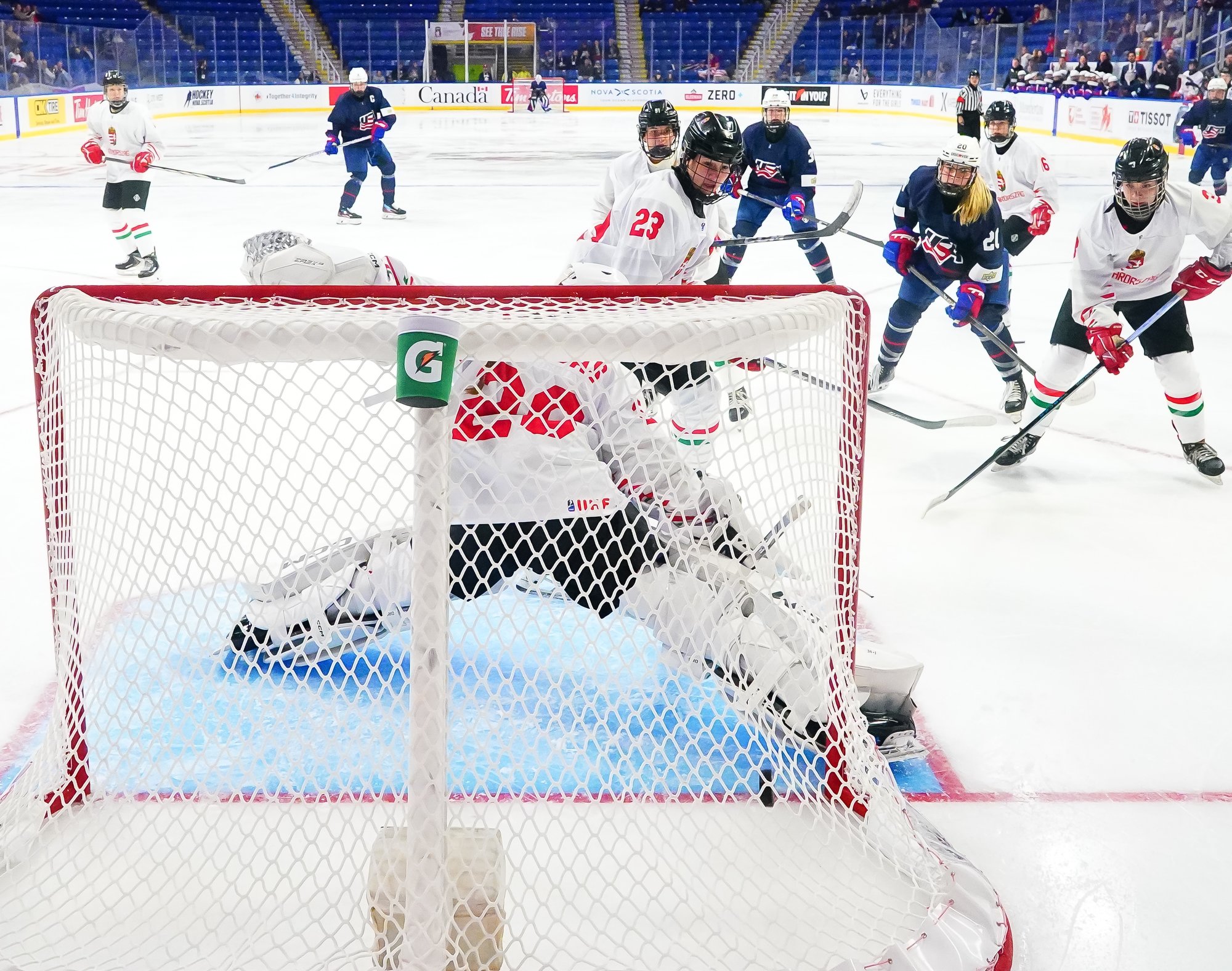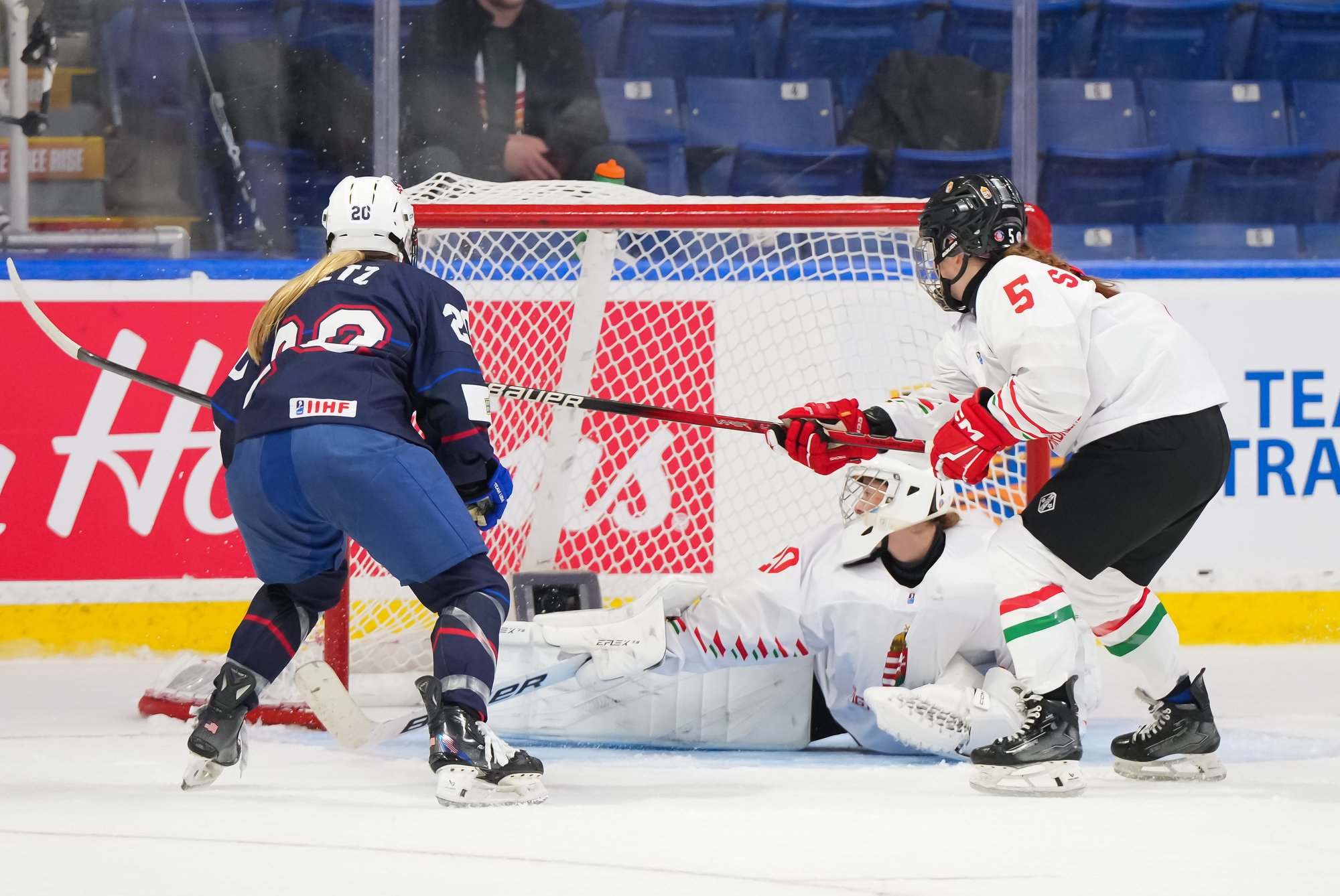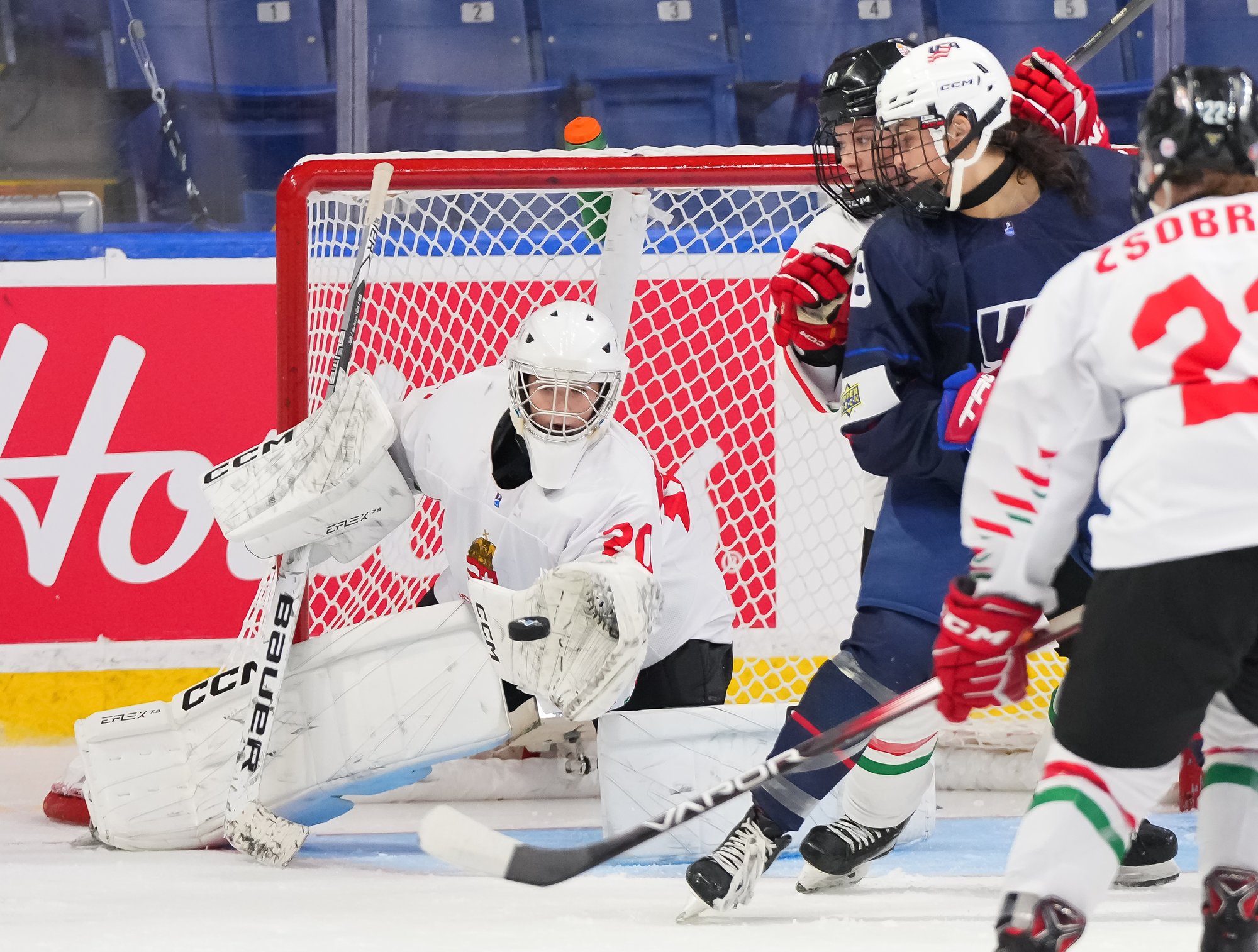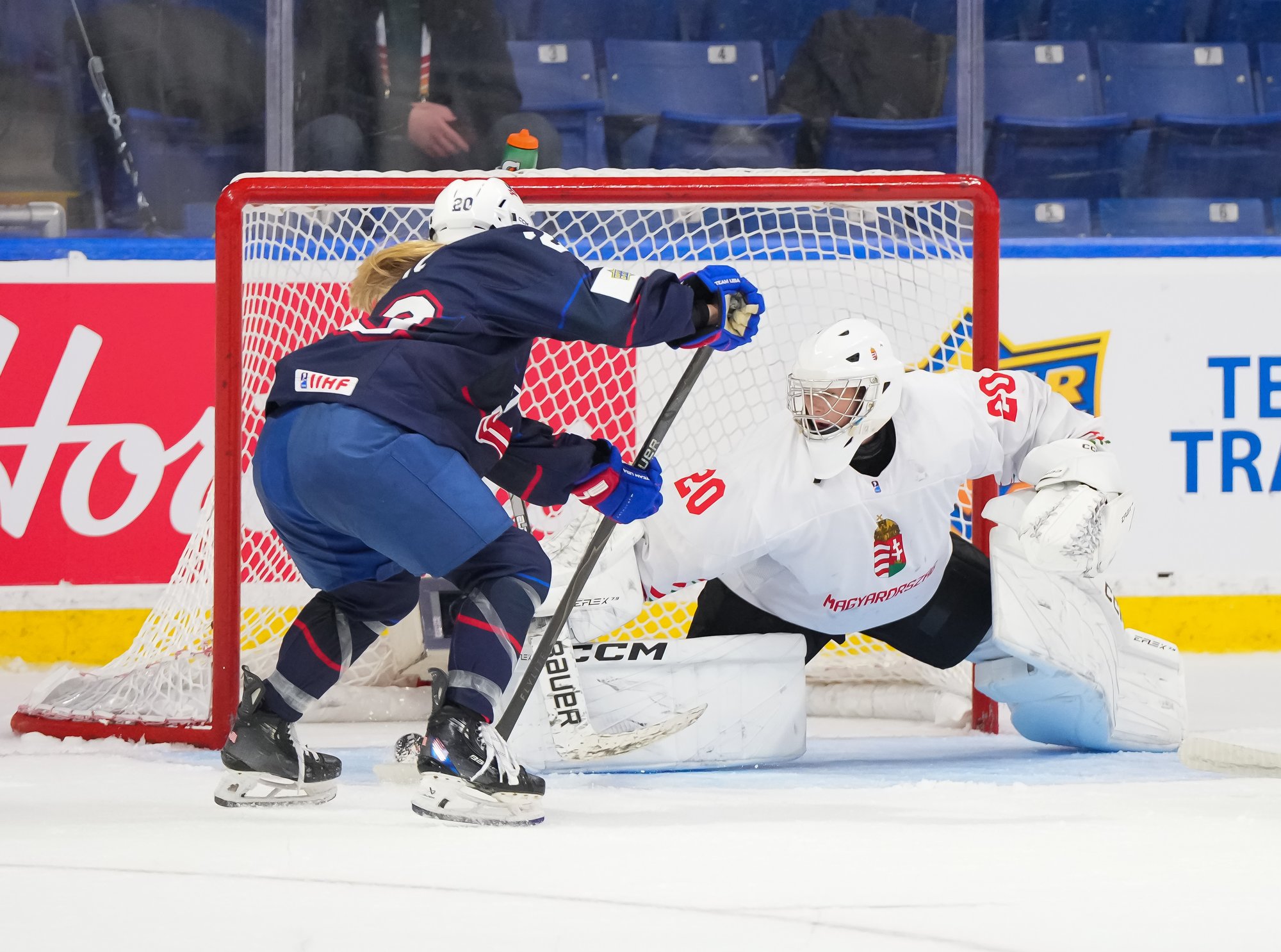 After making 15 saves in the 9-1 U.S. win over Czechia last Sunday, Bianca Birrittieri made eight stops on Thursday to earn the shutout against the Hungarians, who were promoted from Div. 1A in 2026 for the first time since 2014.