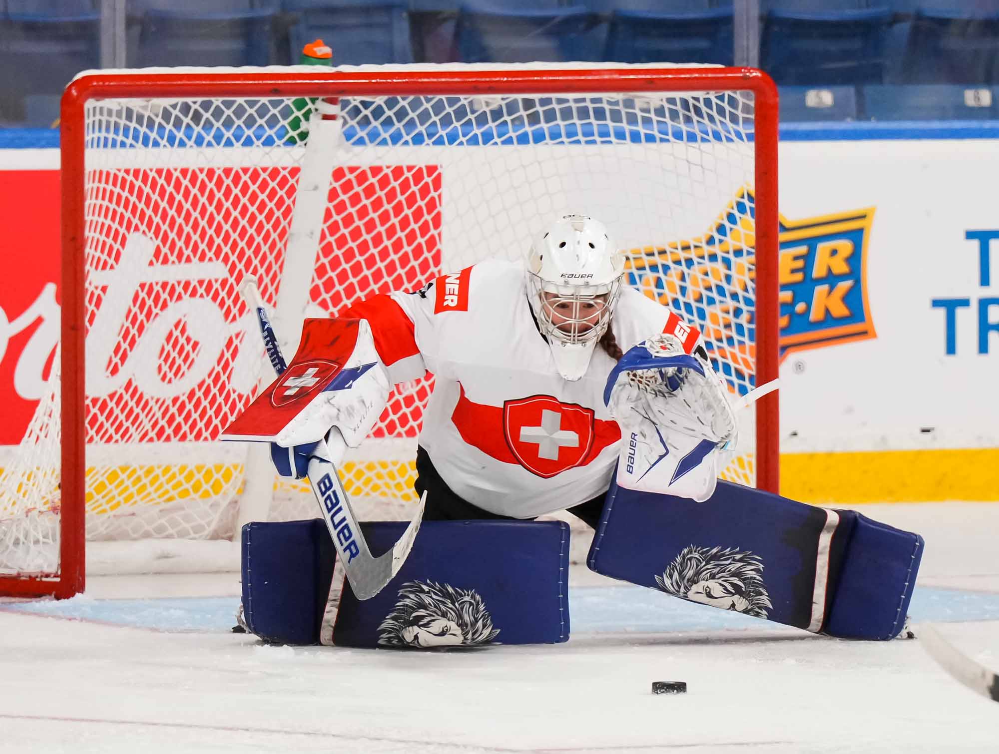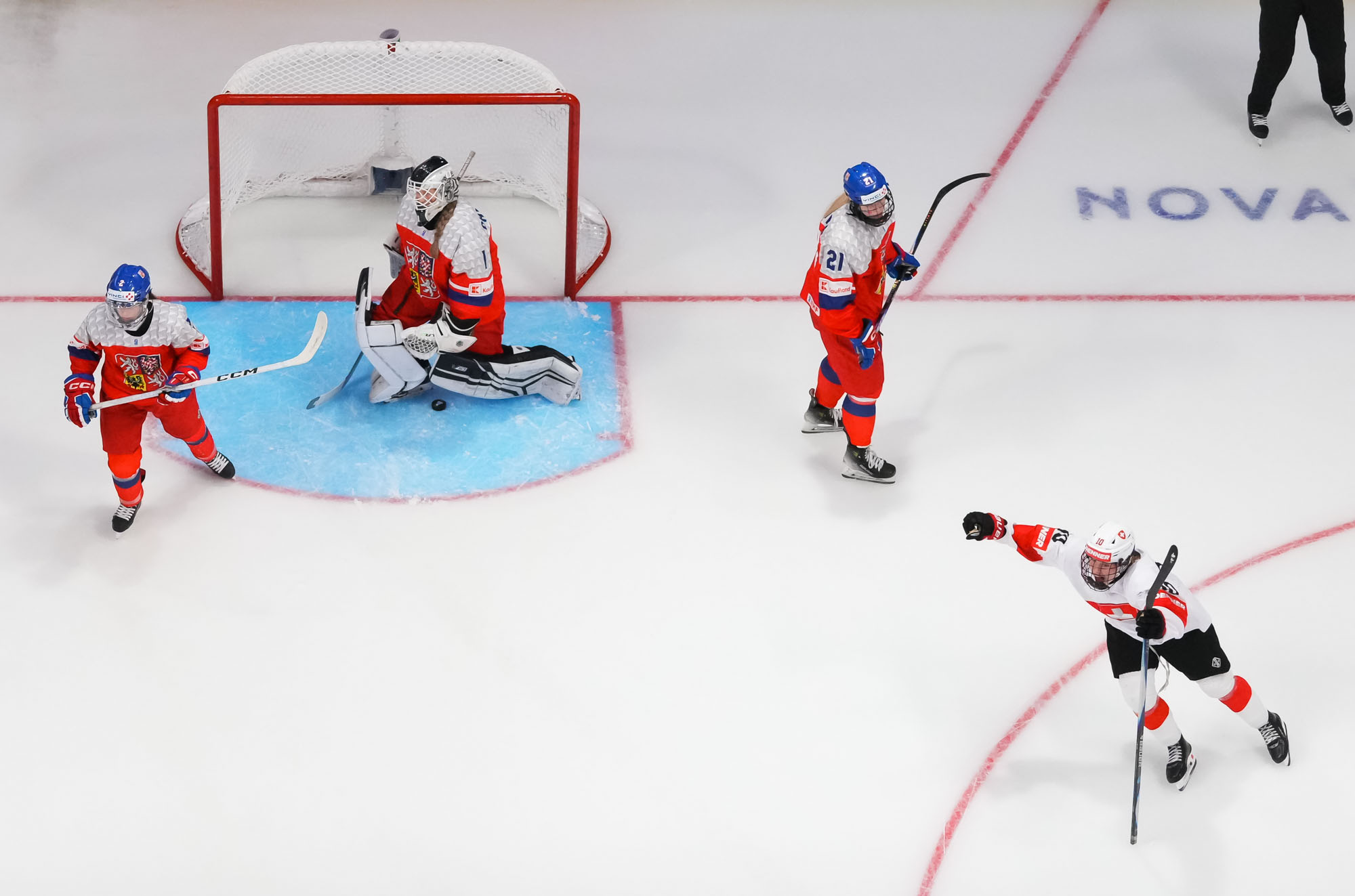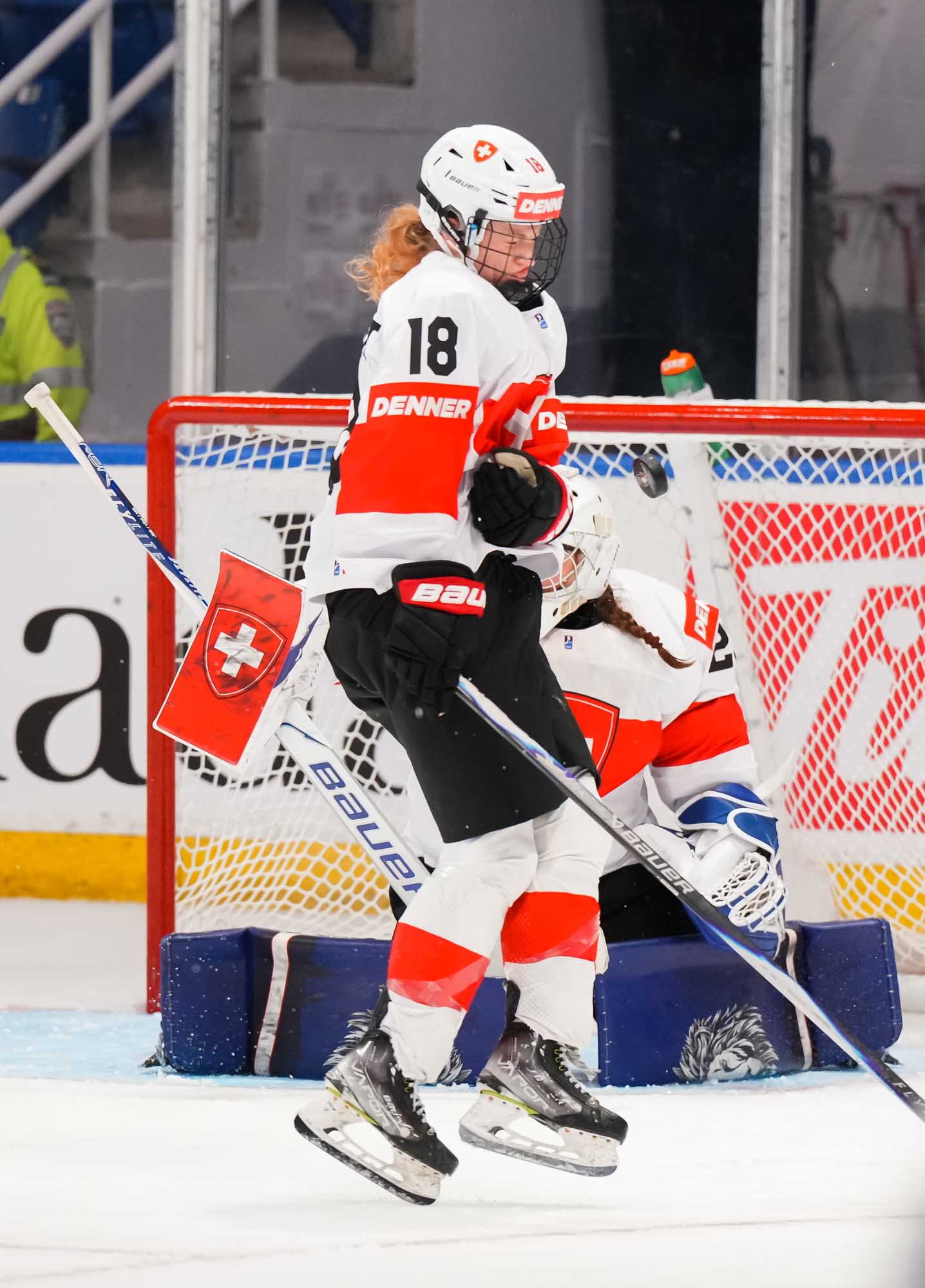 Captain Norina Muller, who was the hero two nights ago against Hungary with the only two goals in a 2-0 win, almost got the Swiss on the board early. She got a clear break on goal but fired the puck high over the cage.
