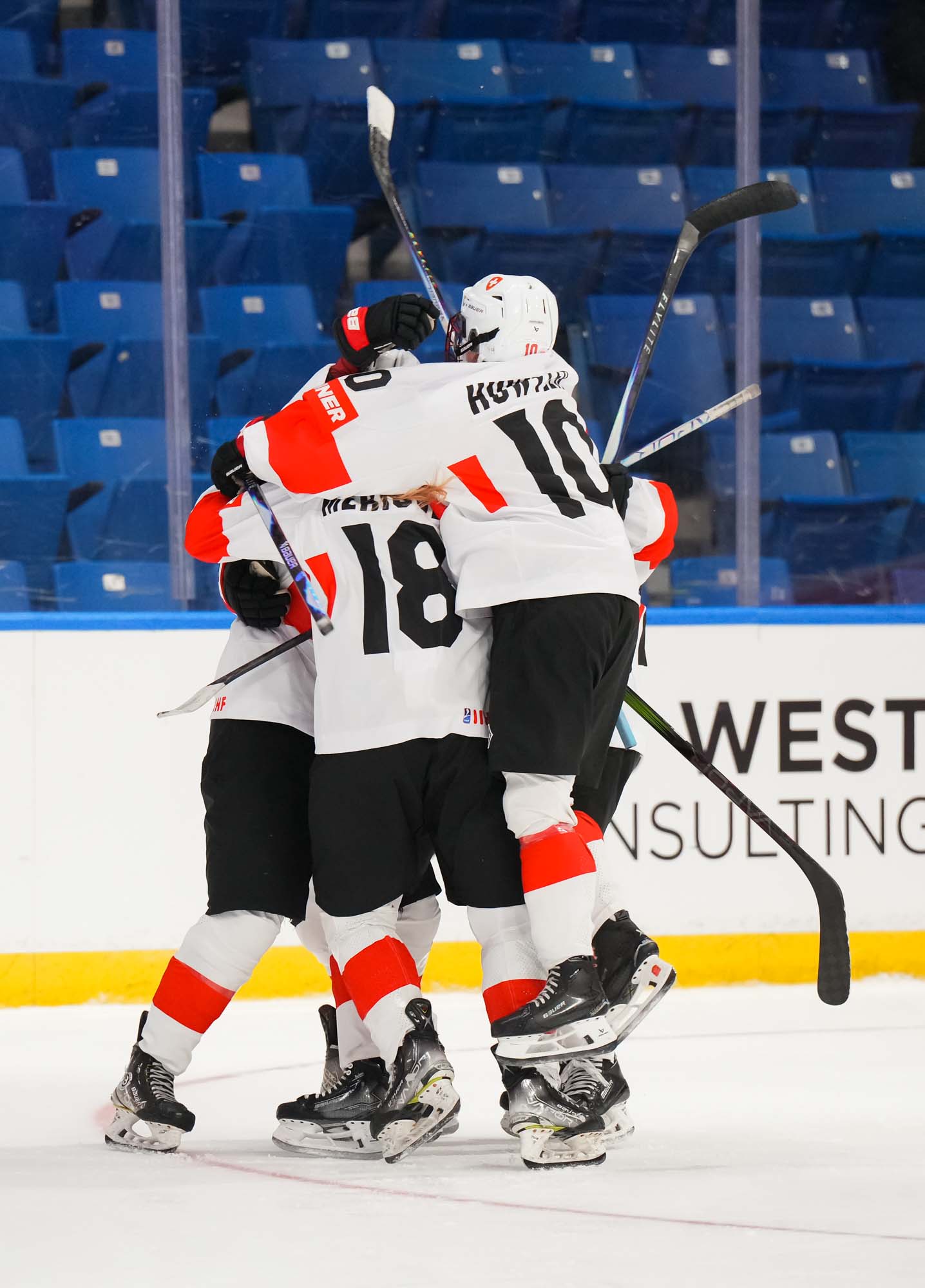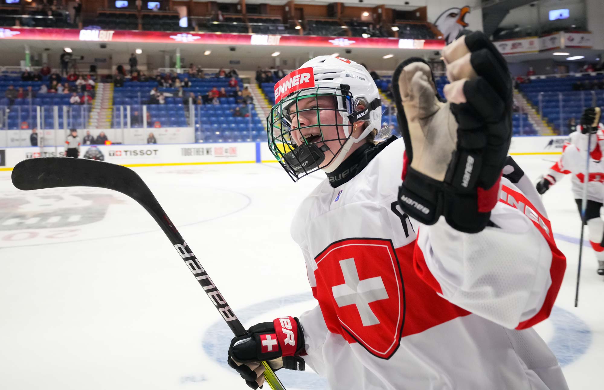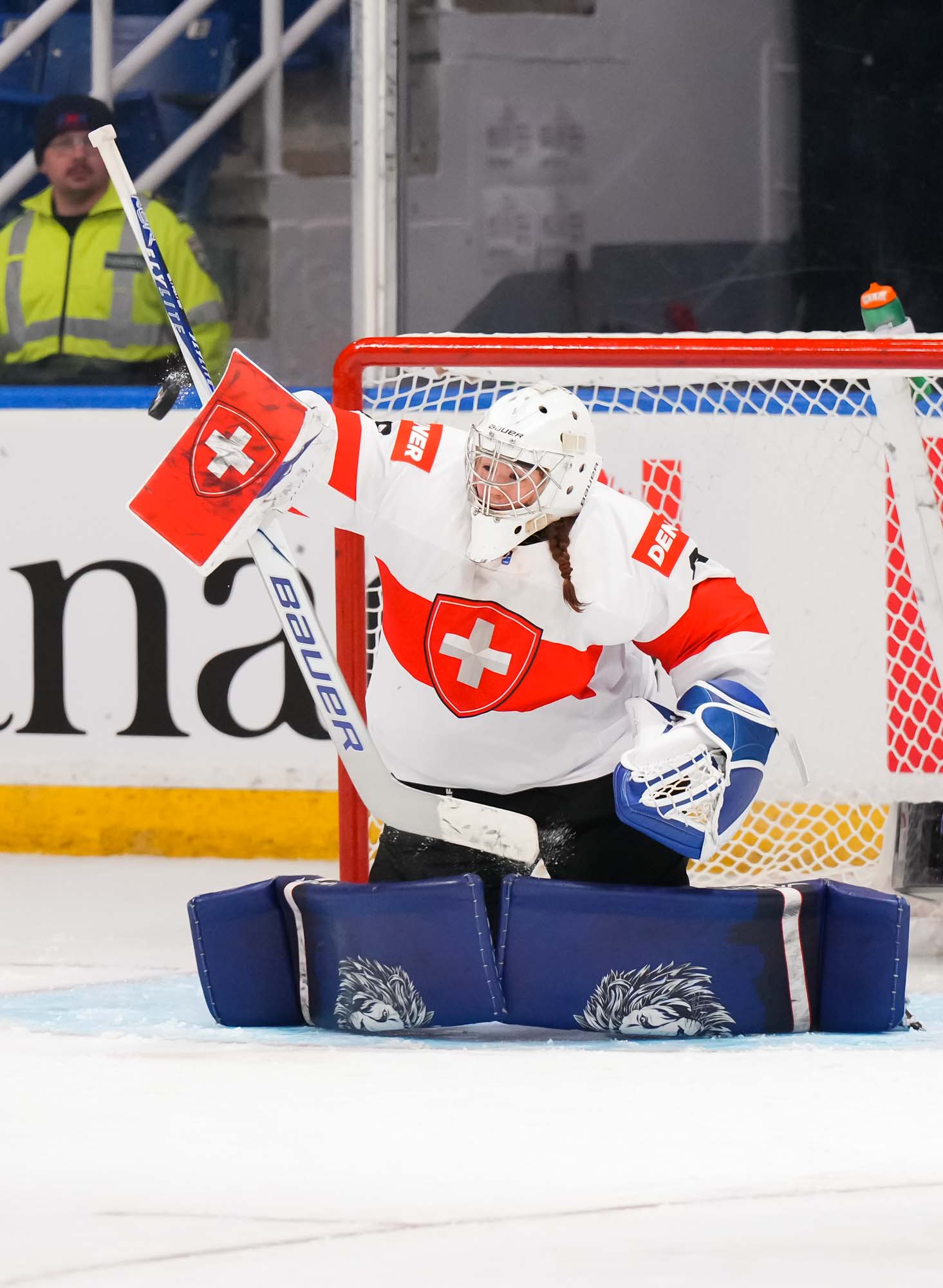 Captain Norina Muller, who was the hero two nights ago against Hungary with the only two goals in a 2-0 win, almost got the Swiss on the board early. She got a clear break on goal but fired the puck high over the cage.