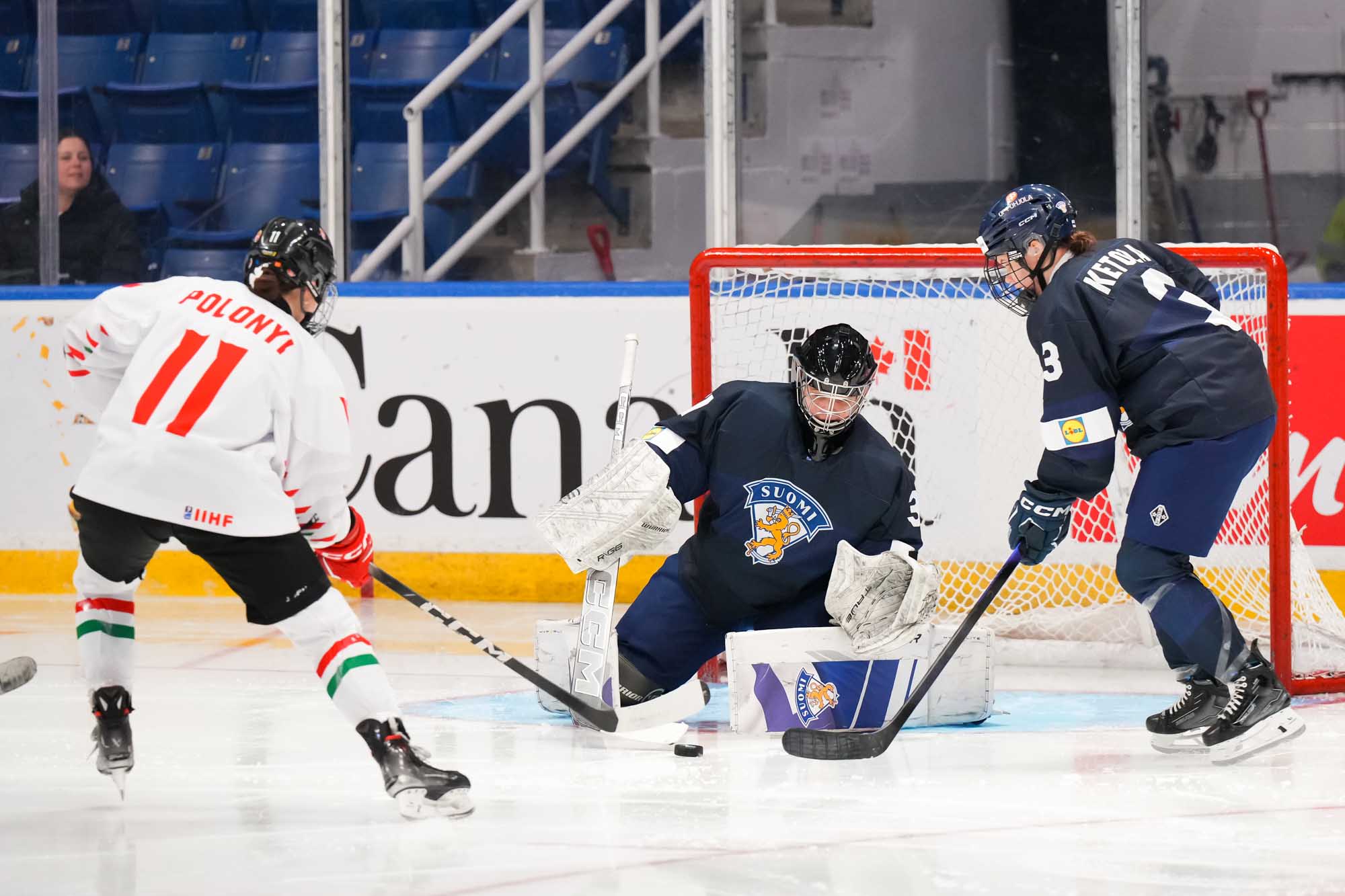 With four minutes remaining, Hungary re-tied the game on their first power play of the game. Just 15 seconds into Tinja Tapani’s interference penalty, captain Reka Hiezl snapped a wrister past Kujala to make the score 2-2.