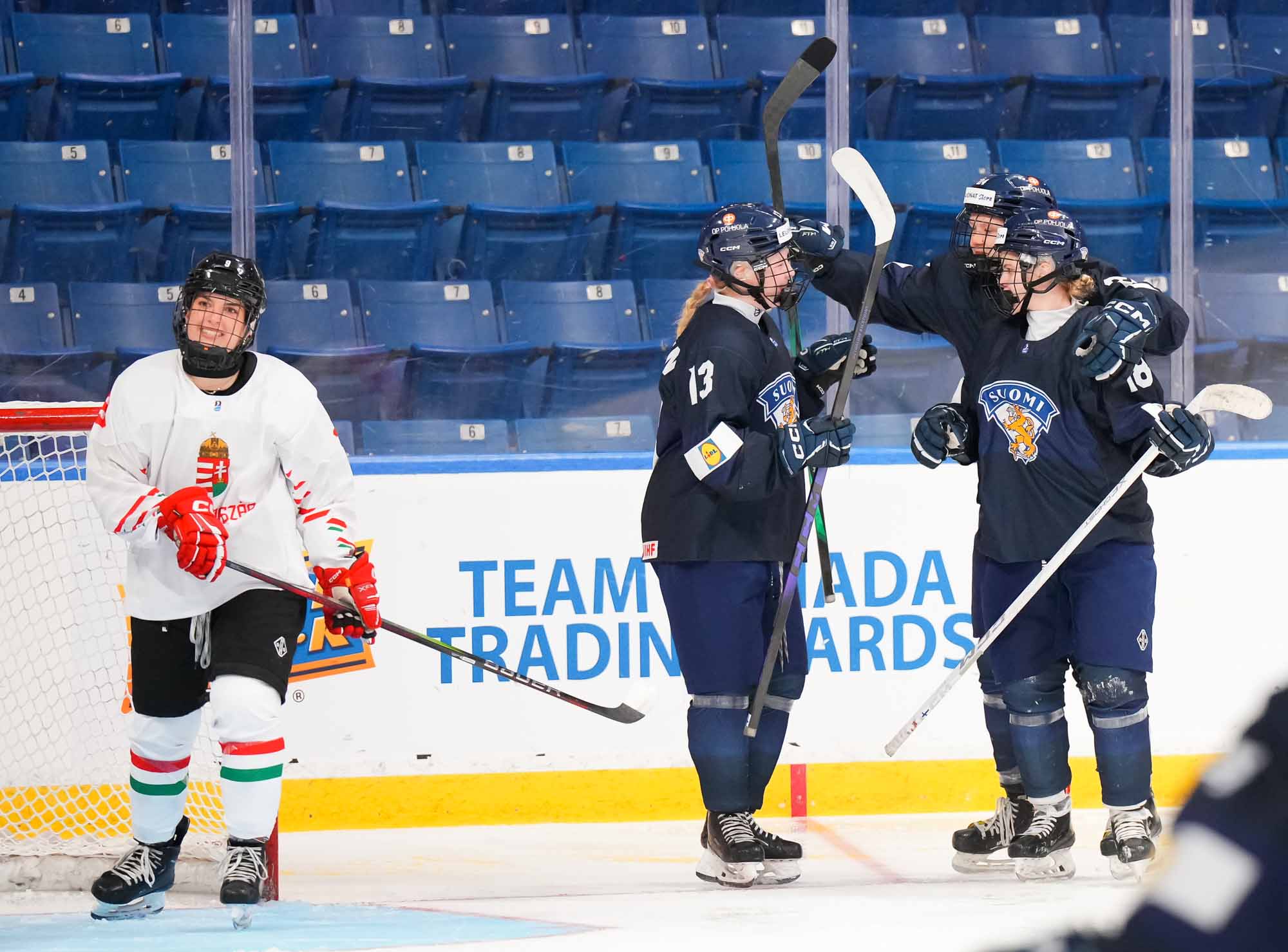 Petra Polonyi had a had trick, Hiezl scored twice and Blanka Temesi and Helga Tamas added singles for Hungary, which had just one goal through its four previous games at this year’s event. Finnish captain Senja Siivonen also scored twice, while Yenna Kolmonen, Emmi Loponen and Julia Kuhta had one goal each.