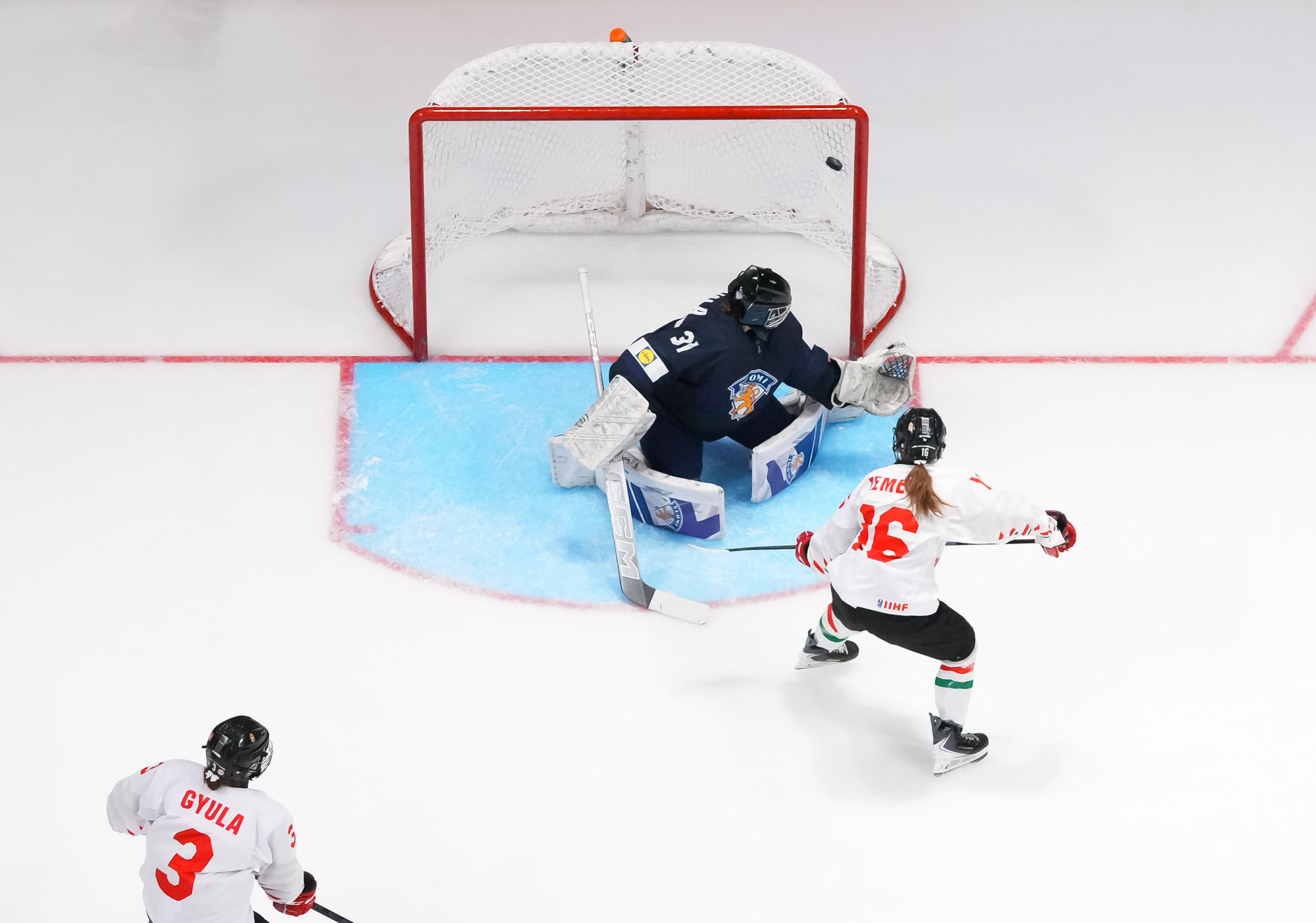 When Heizl fed Krisztina Weiler for a shorthanded 2-on-1 that led to a Finnish slashing penalty with 6:12 left in the second, the Hungarians took their first lead of the game when Helga Tamas hammered home her own rebound from just outside the crease, putting her team up 4-3.