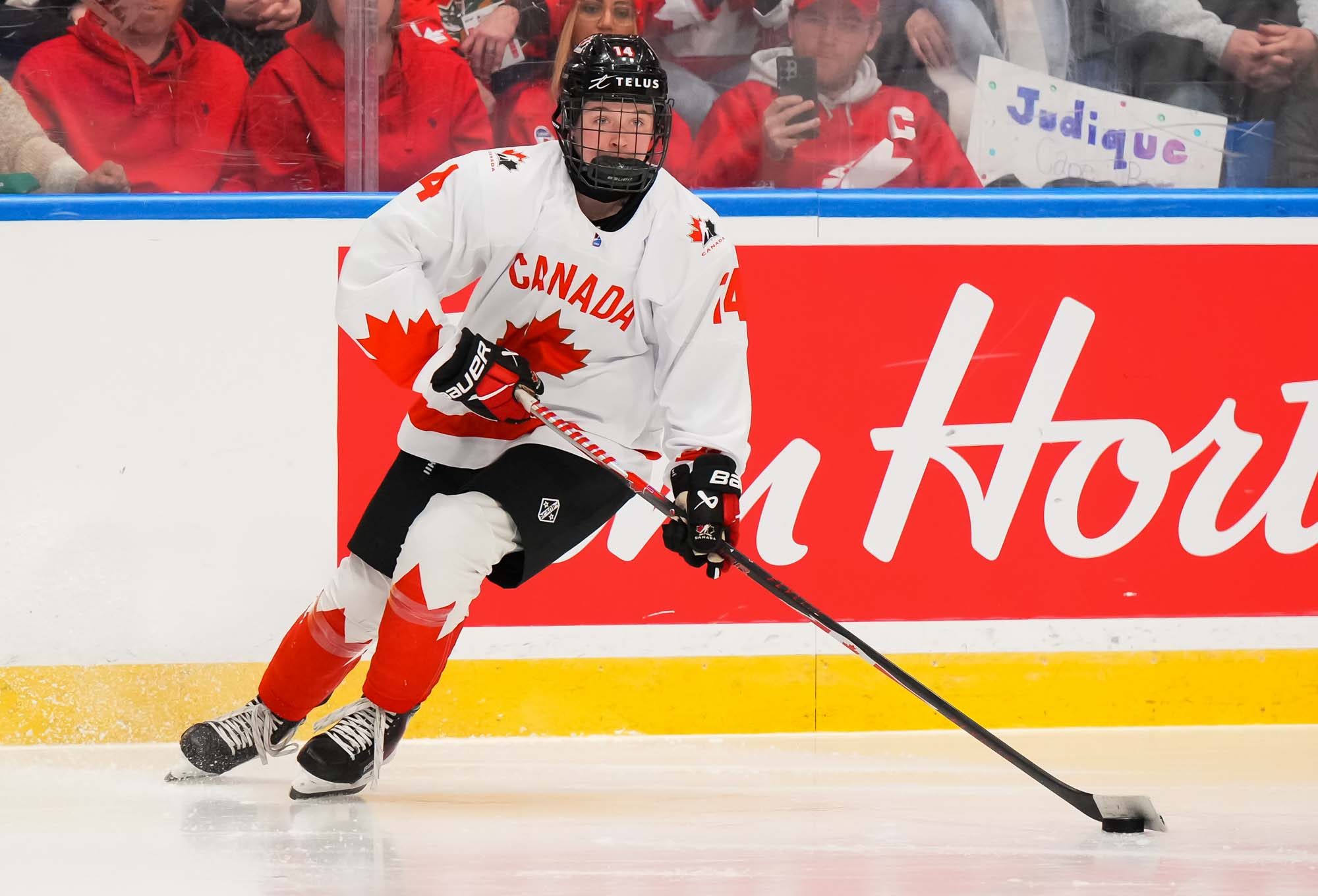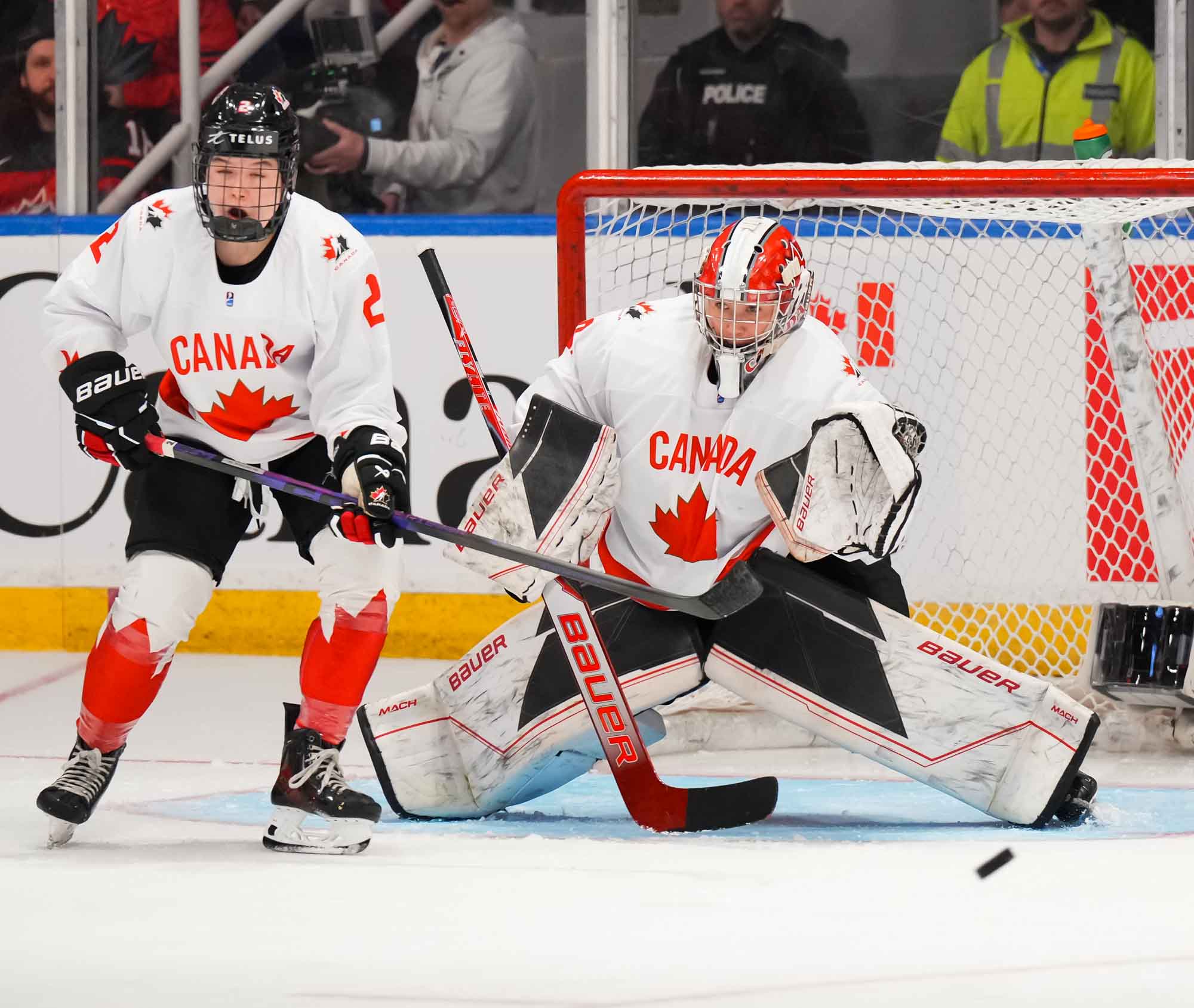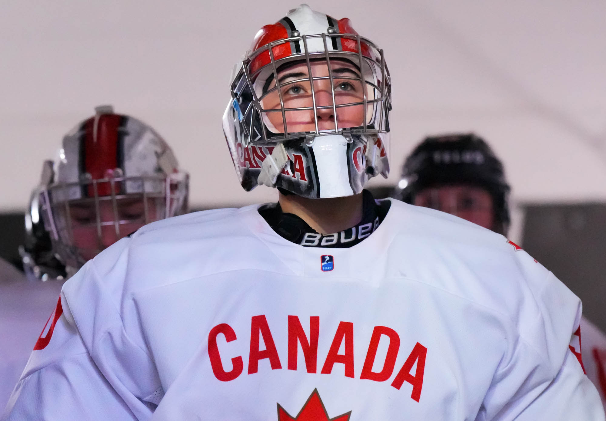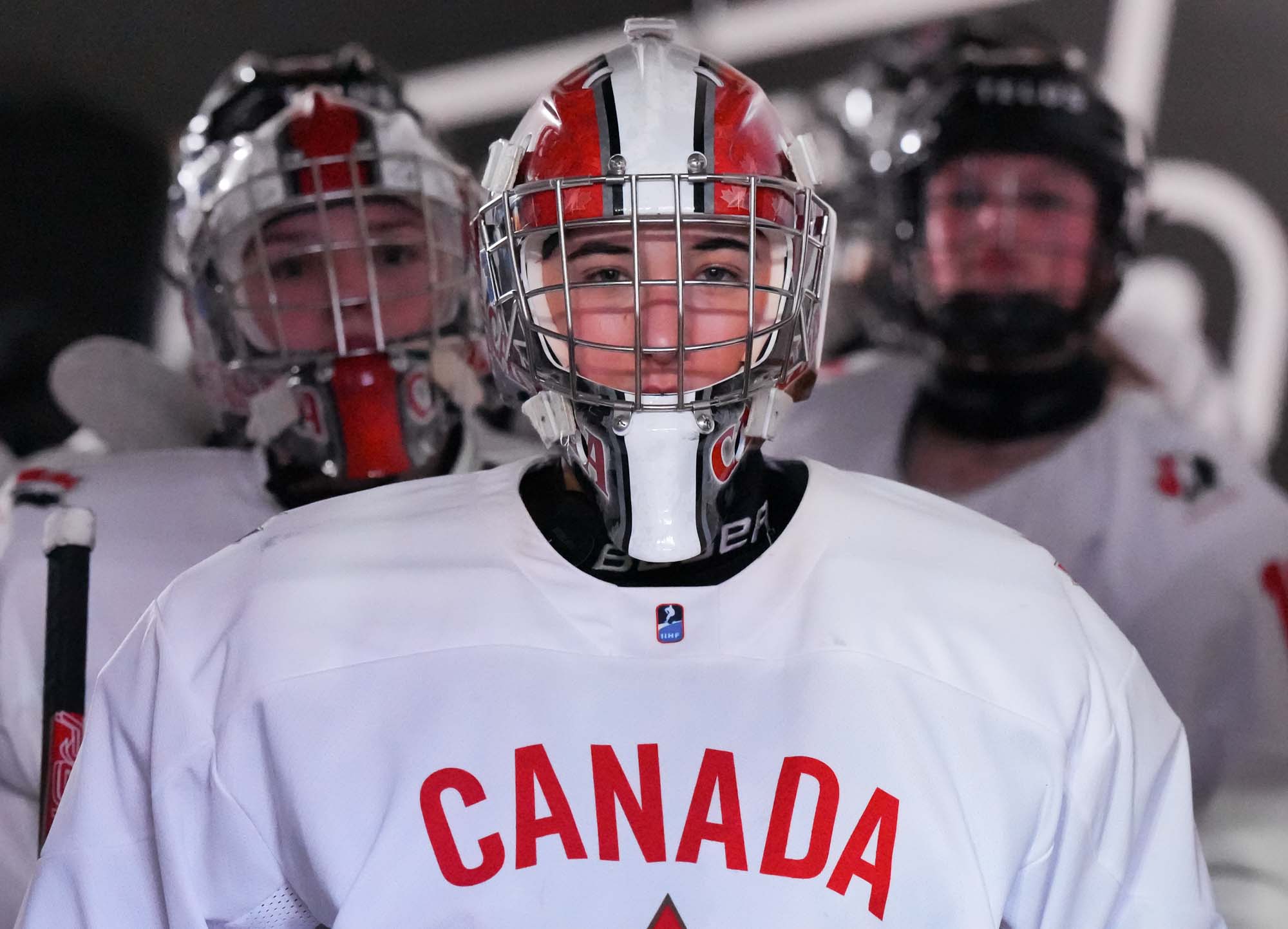 At the other end, Kylie Amelkovich tried a wraparound that went through the crease, and soon after the Canadians had the first power play when Maggie Averill inadvertently put the puck over the glass in her end.