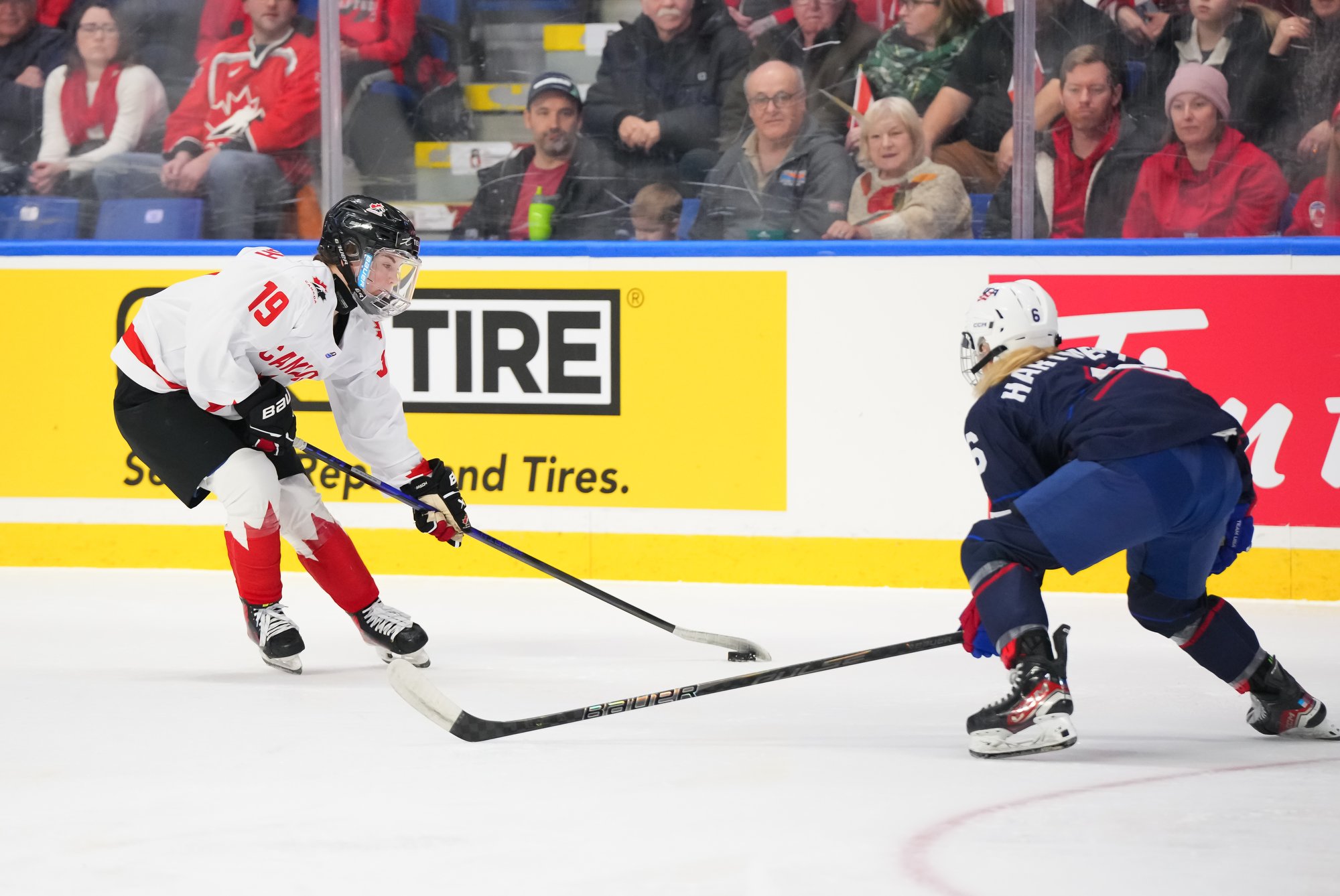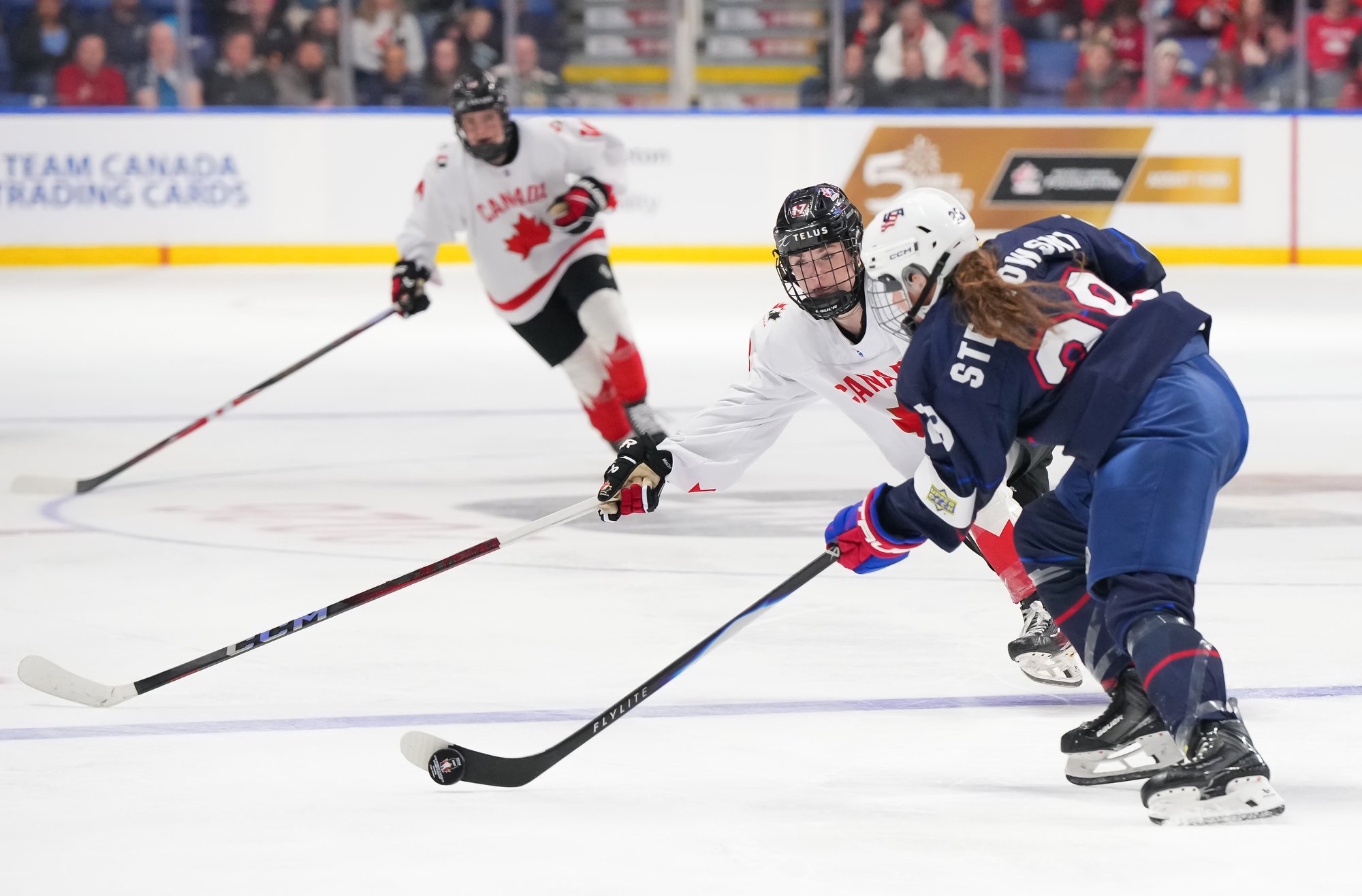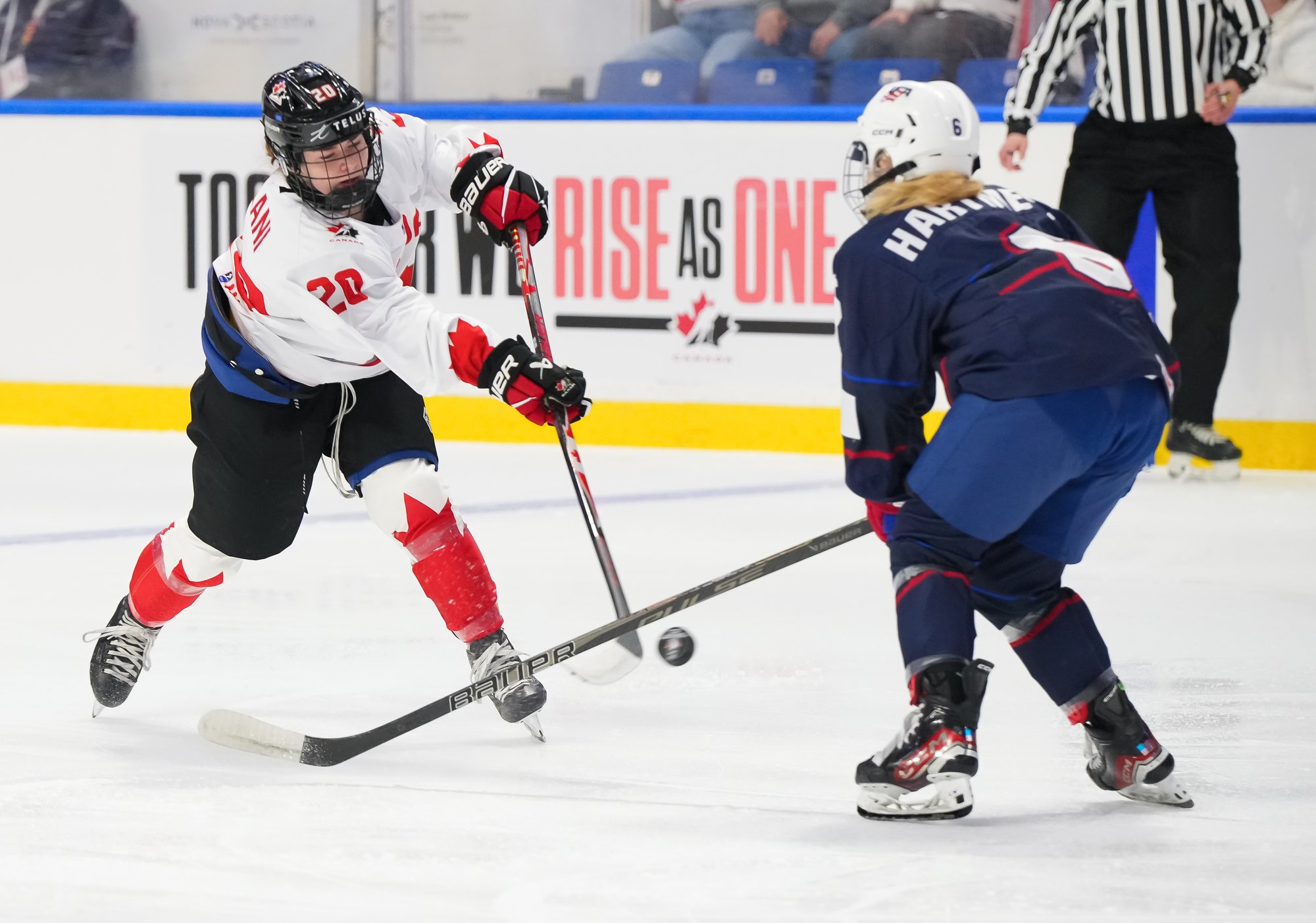 Try as they might, the Canadians were denied time and again by the determined U.S. defence. Birrittieri made her best save in the third. Milani was in the slot to knock a loose puck into the empty net, but the goalie dove and poked the puck away just in time.