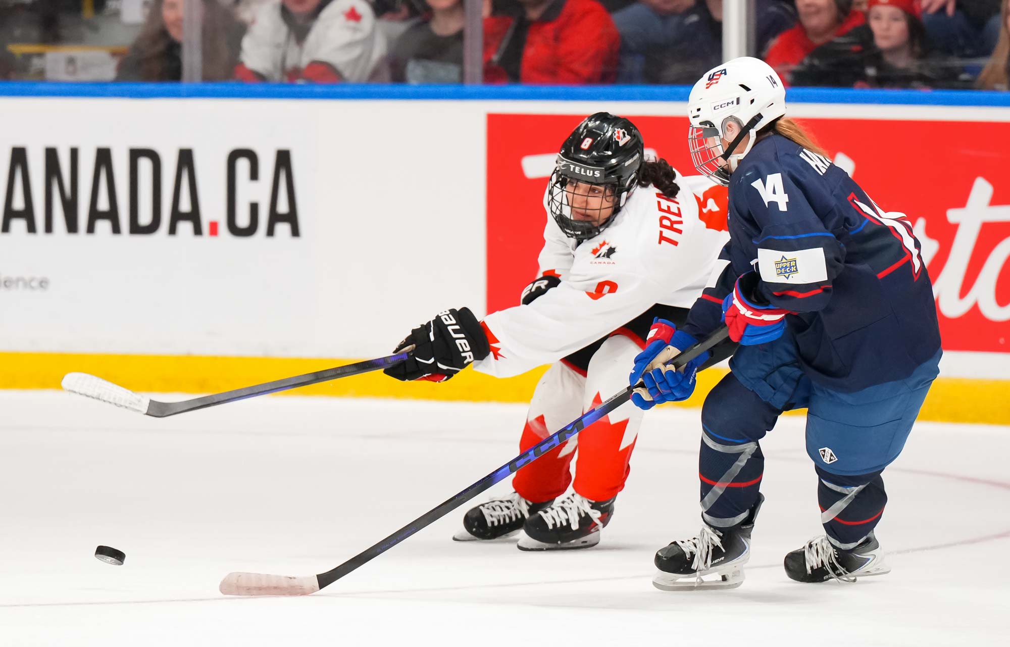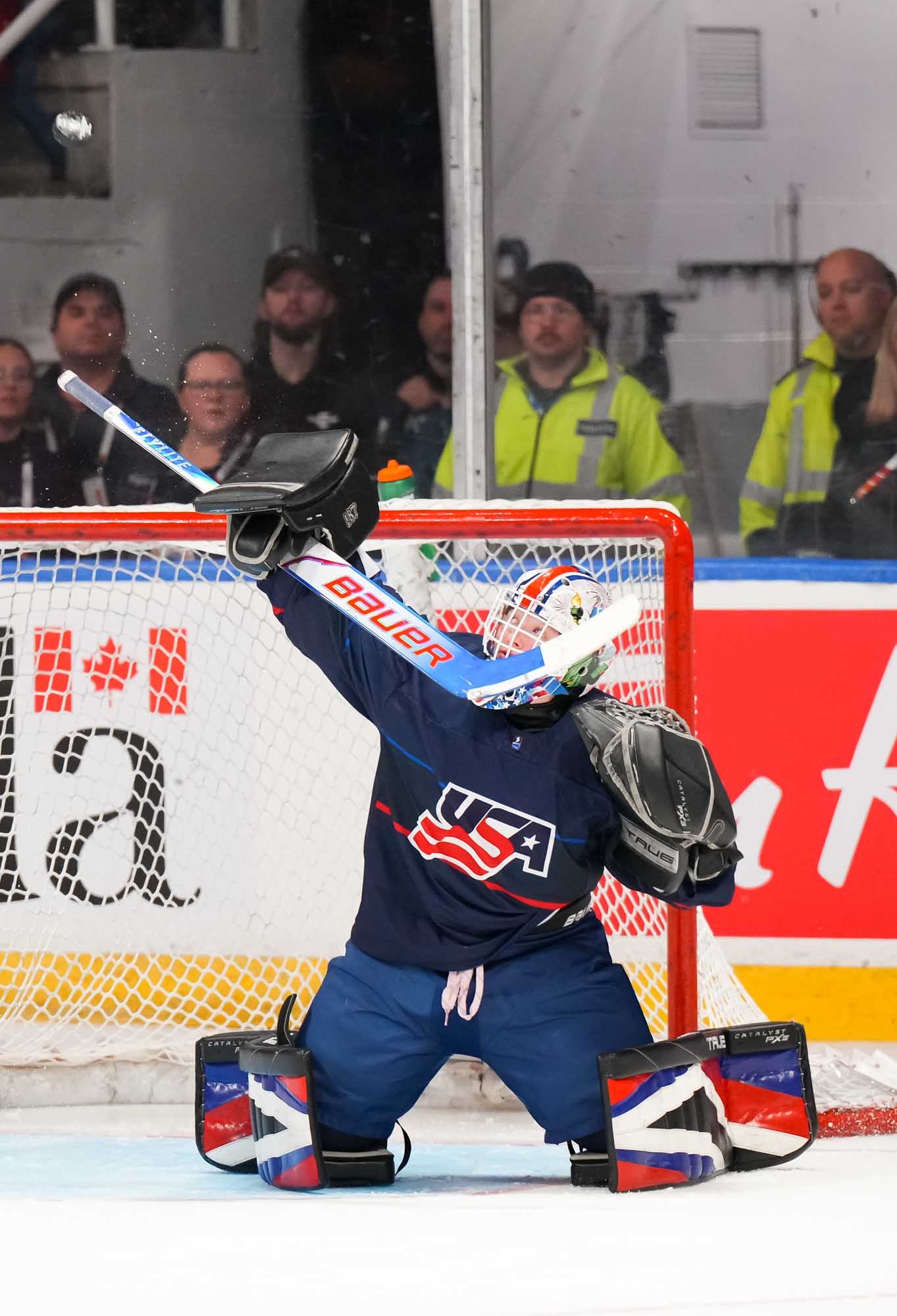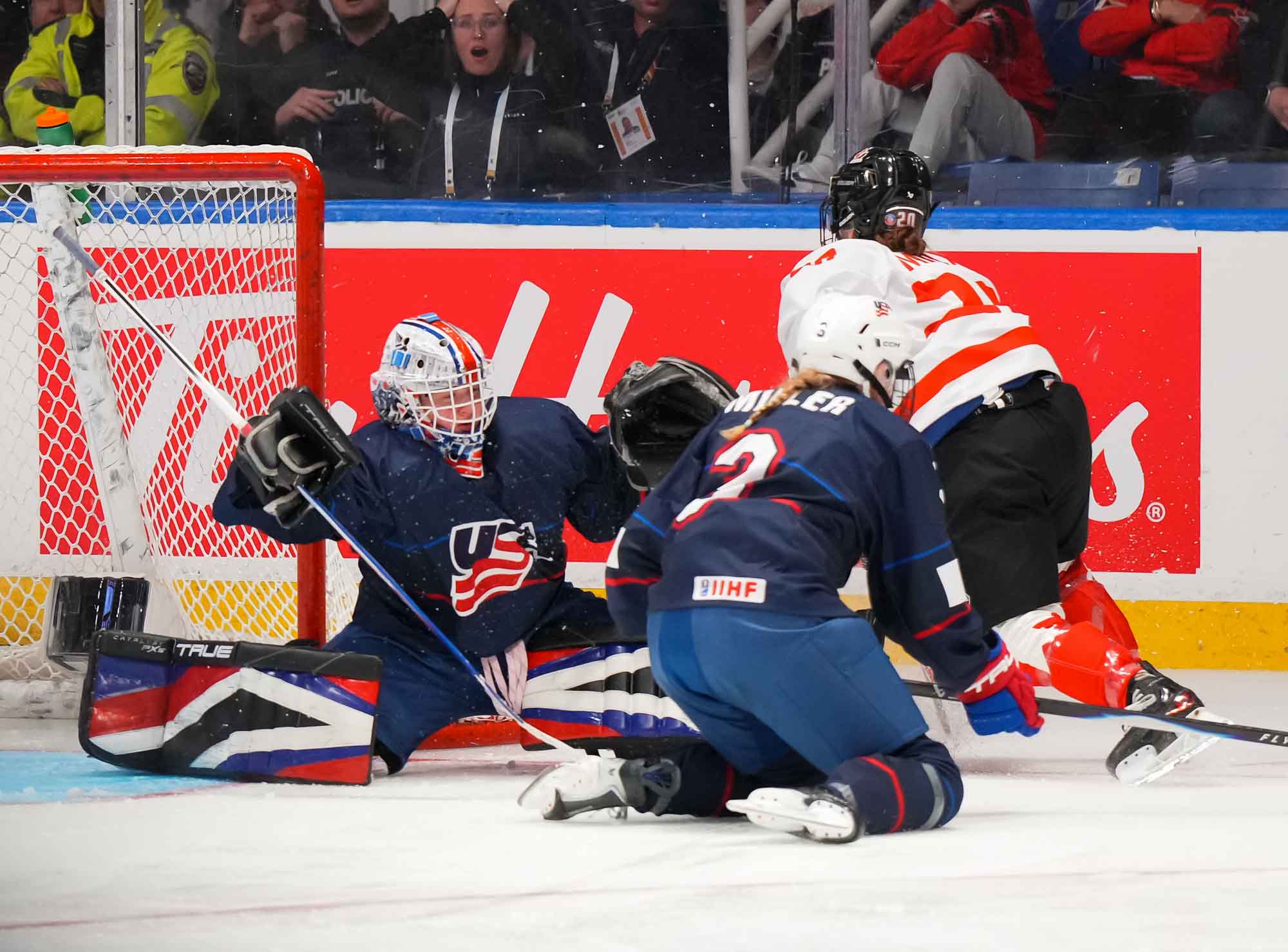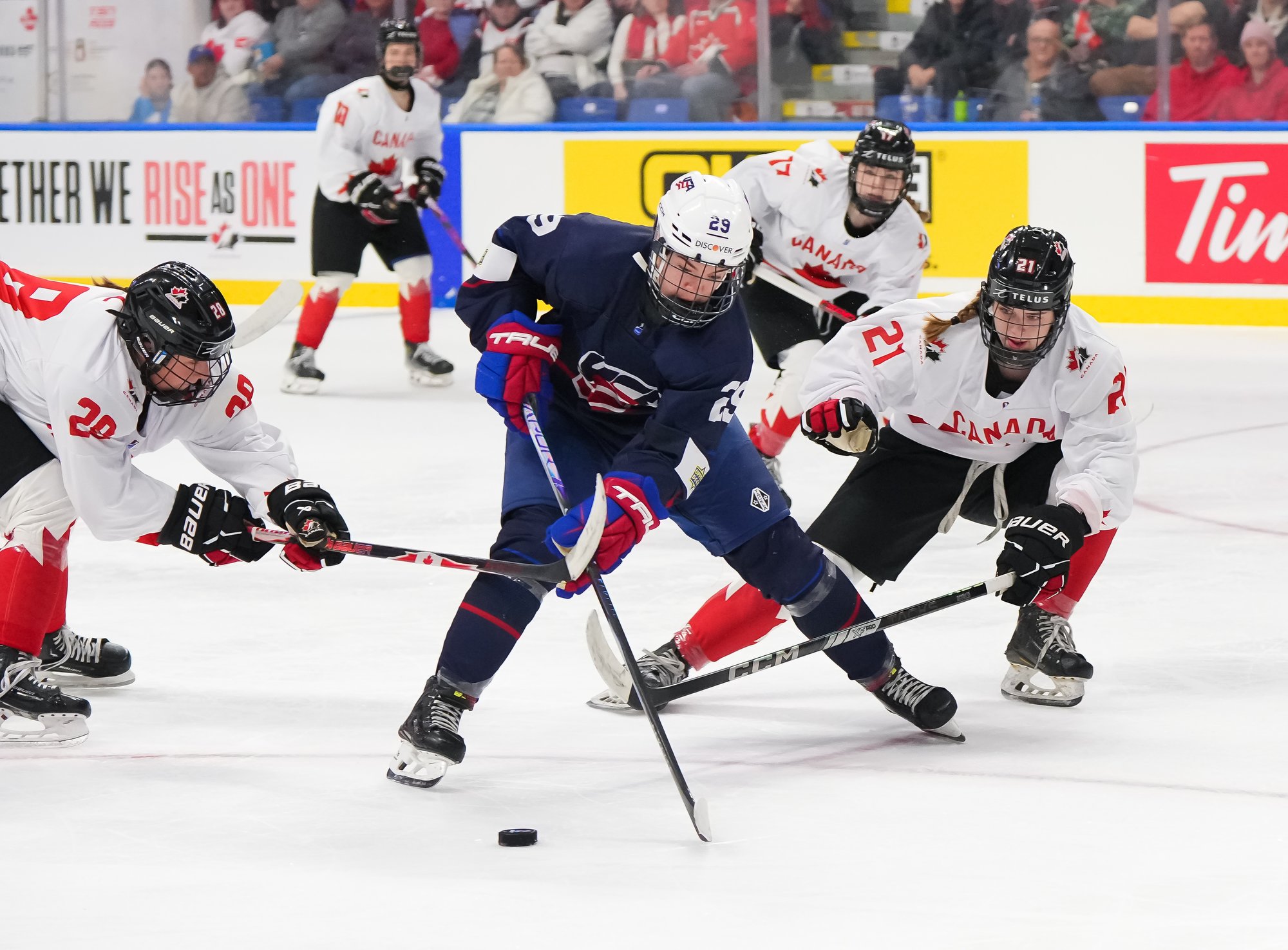 Try as they might, the Canadians were denied time and again by the determined U.S. defence. Birrittieri made her best save in the third. Milani was in the slot to knock a loose puck into the empty net, but the goalie dove and poked the puck away just in time.