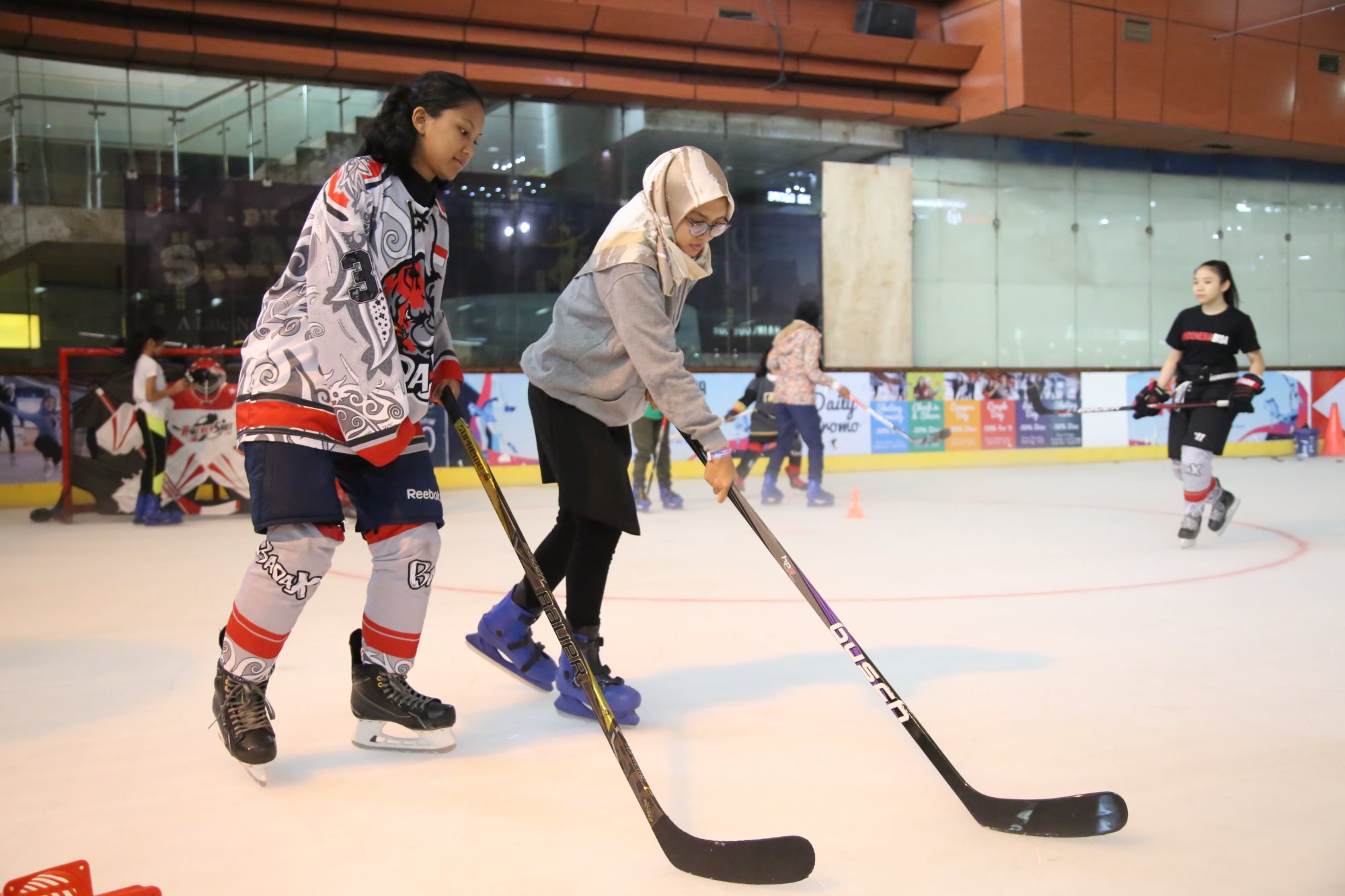 Ice Tigers: Current players give new girls a taste of ice hockey in Malaysia during the 2018 World Girls’ Ice Hockey Weekend.