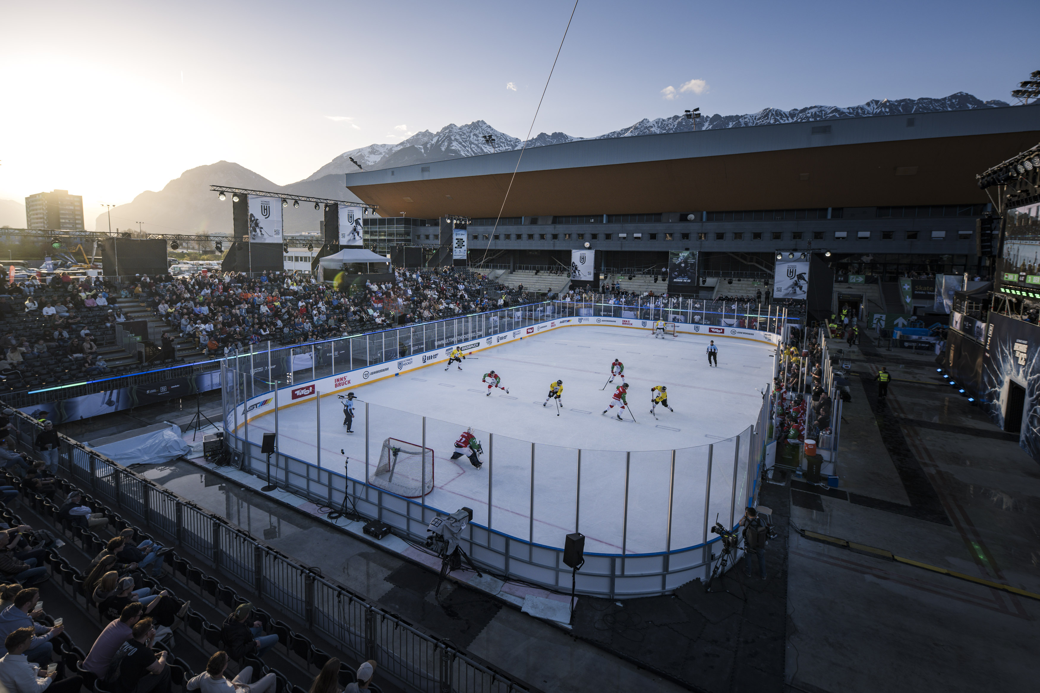 The game concluded an exciting three-day weekend of outdoor 3-on-3 hockey at the Olympiaworld in Innsbruck, Austria, with the majestic Alps providing a spectacular backdrop.